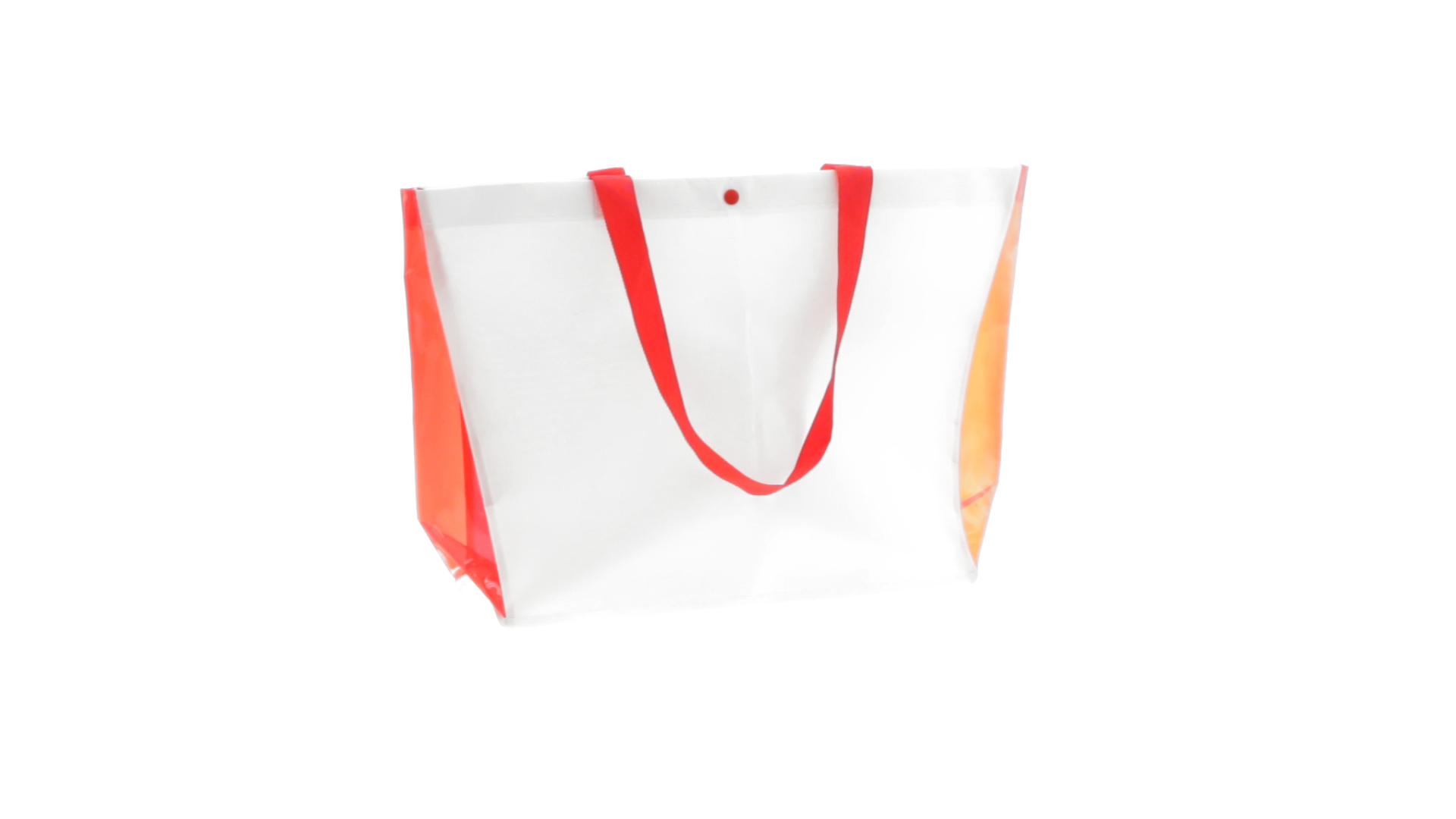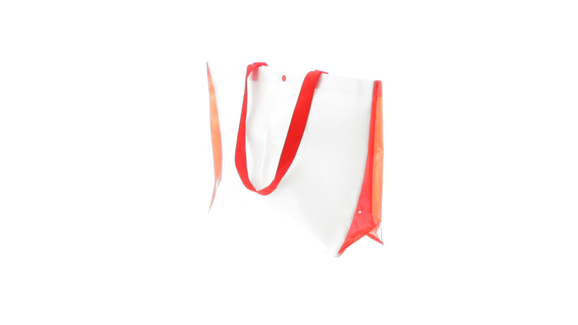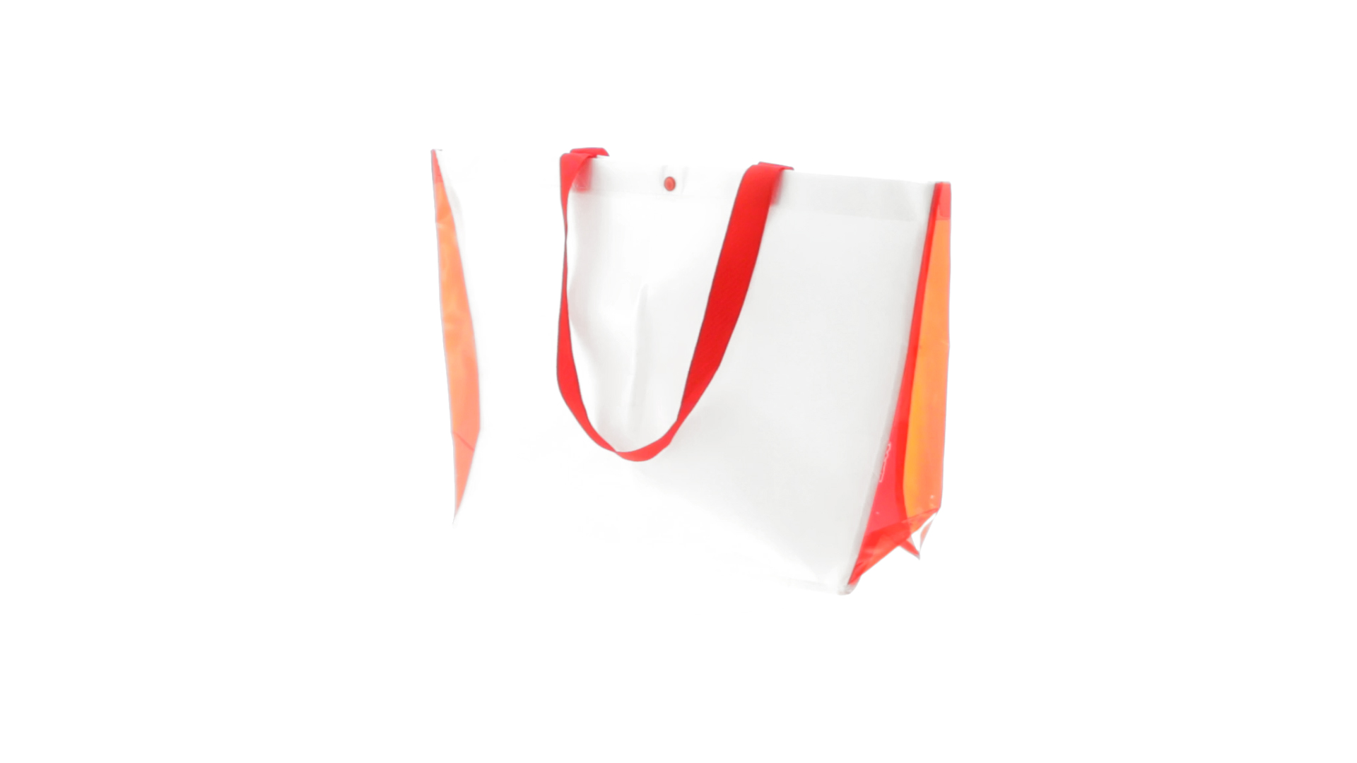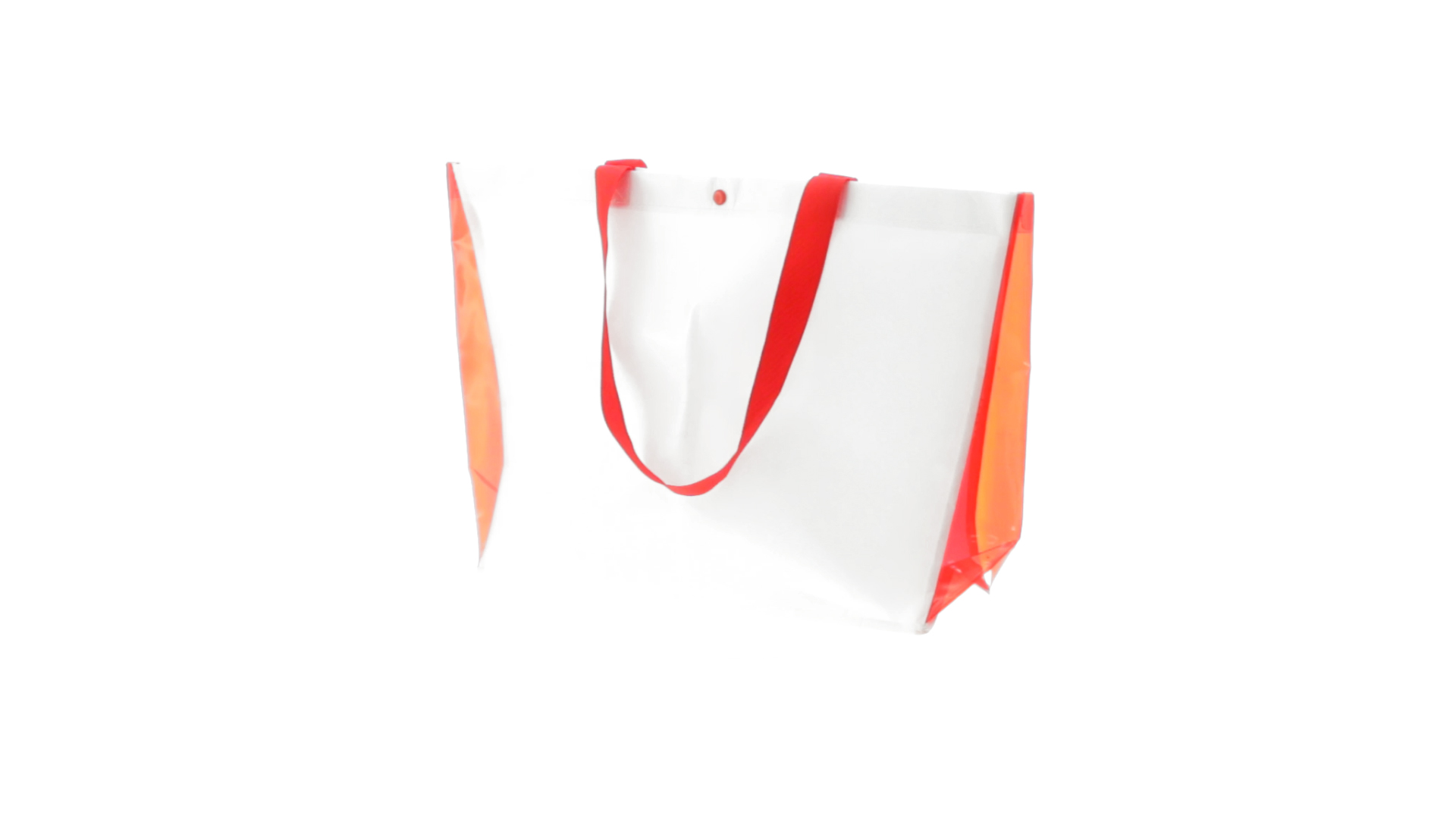 Hochwertige Non-Woven-Tasche aus laminiertem Faservlies (150 g/m2) in Metallic-Ausführung. In Weiss mit Henkeln und Zwickel in verschiedenen lebendigen Farben. Mit 58 cm langen, verstärkten Henkeln, verstärktem PVC-Zwickel mit Paspel und Steppnähten. Belastbar mit bis zu 12 kg.