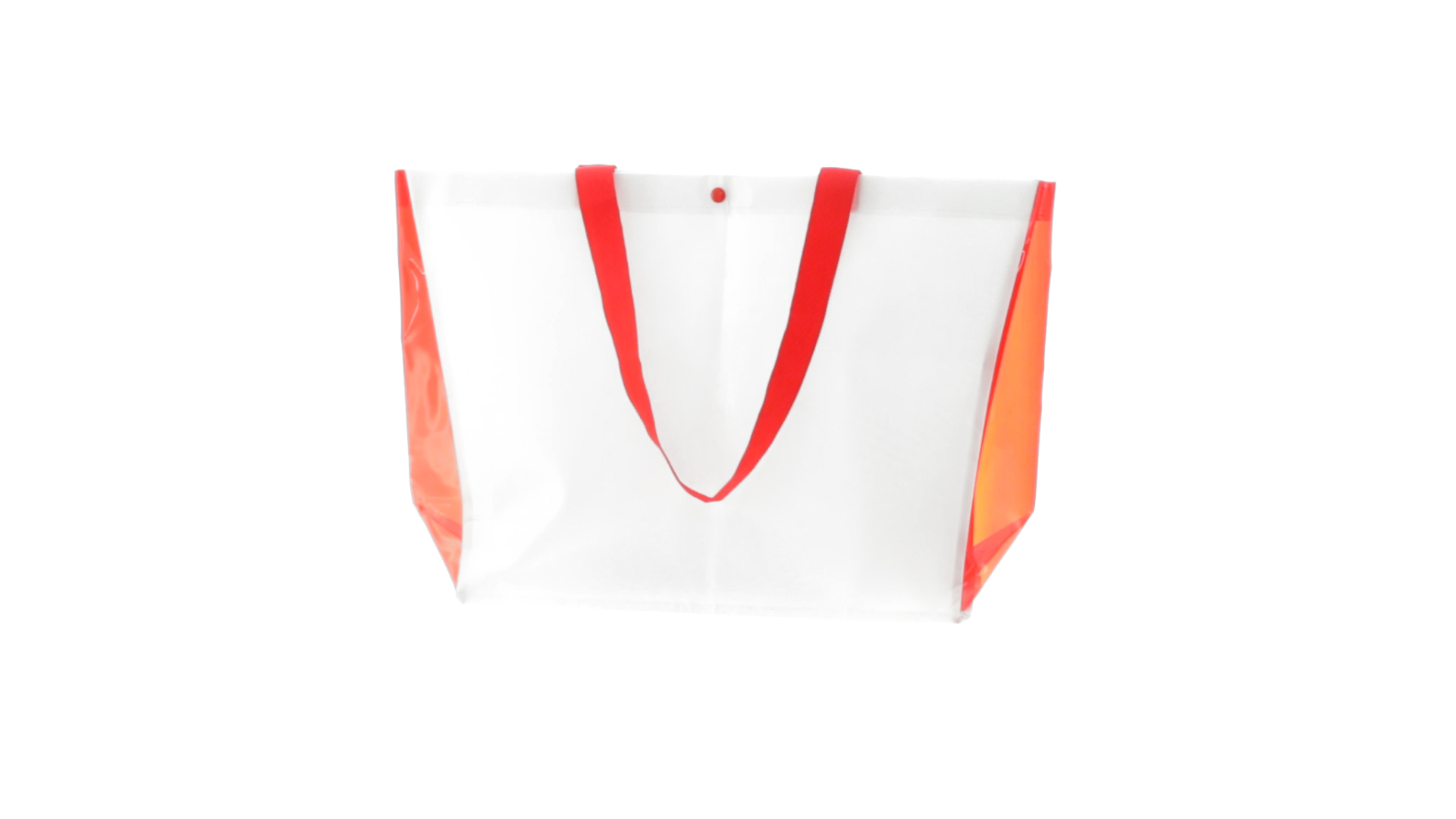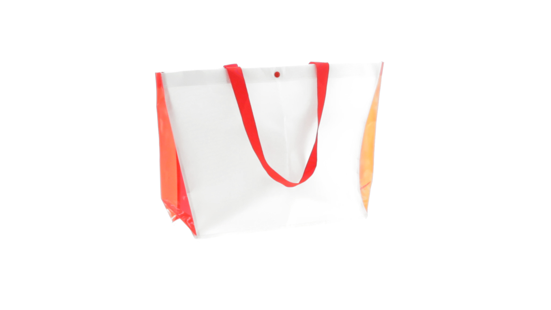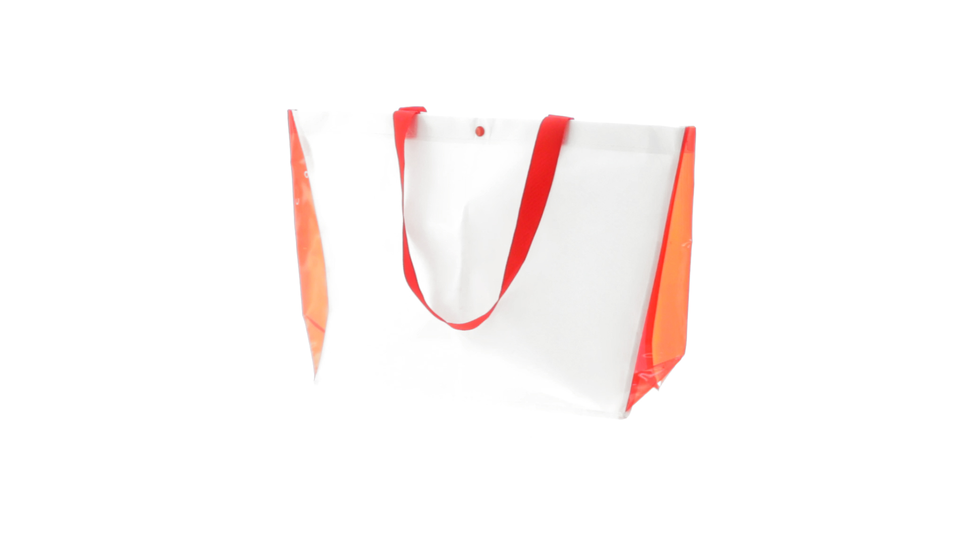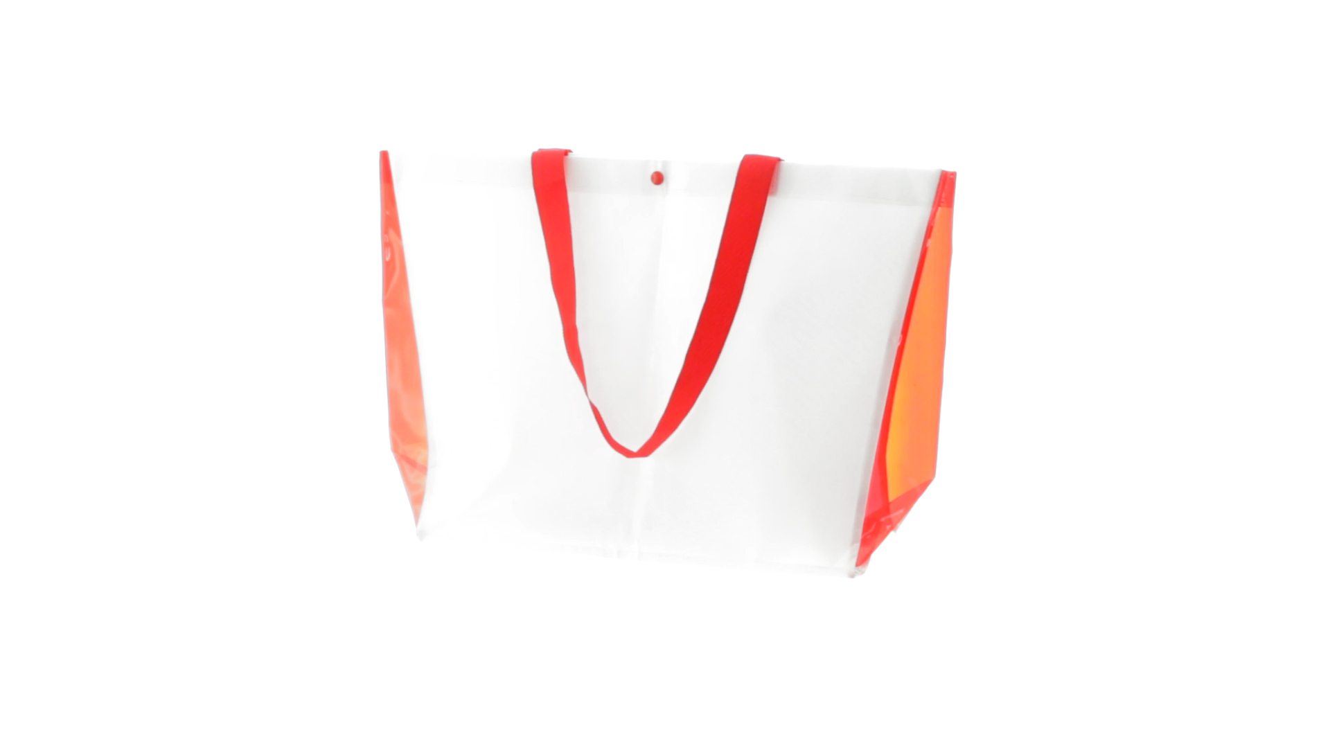 Hochwertige Non-Woven-Tasche aus laminiertem Faservlies (150 g/m2) in Metallic-Ausführung. In Weiss mit Henkeln und Zwickel in verschiedenen lebendigen Farben. Mit 58 cm langen, verstärkten Henkeln, verstärktem PVC-Zwickel mit Paspel und Steppnähten. Belastbar mit bis zu 12 kg.
