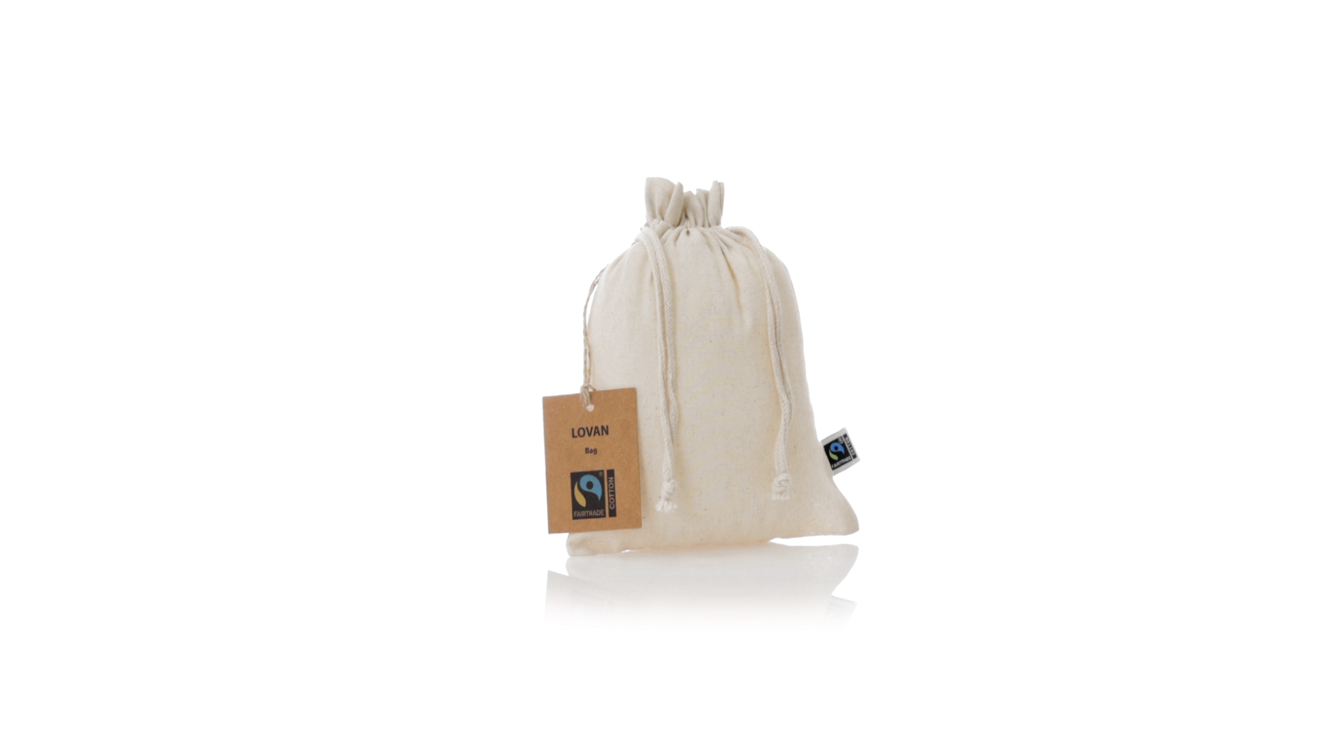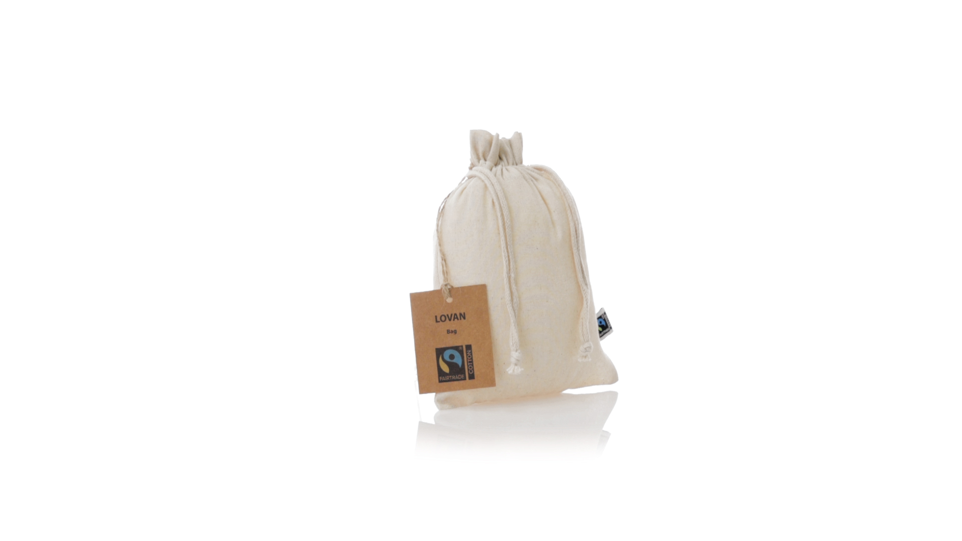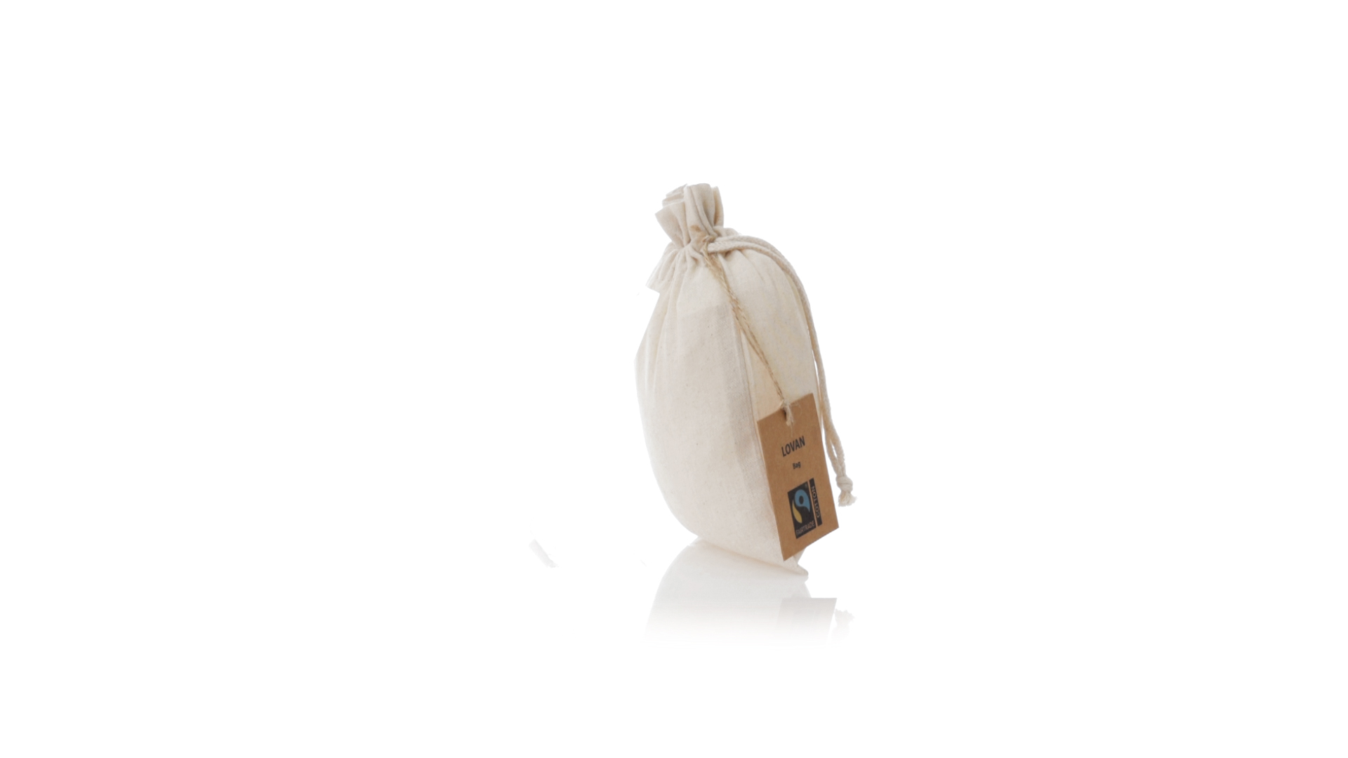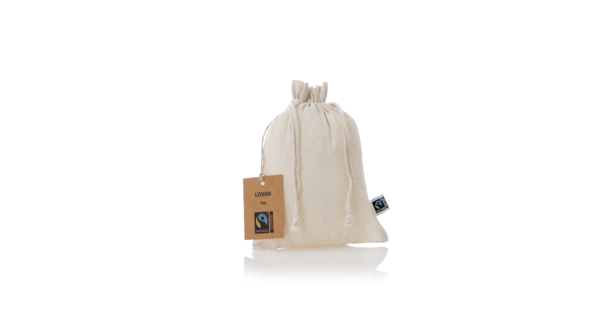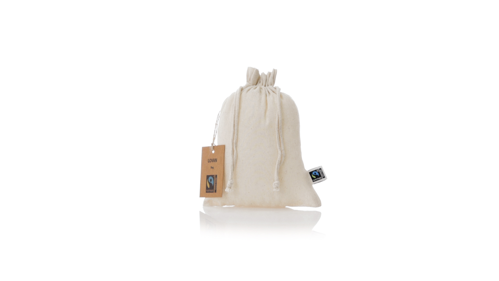 Natur Linie Tasche, hergestellt aus Baumwolle 105g/m2 in natürlicher Farbe. Mit der Fairtrade-Zertifizierung (Fair Trade) ein solidarisches und alternatives Handelssystem, das die Entwicklung der Völker und die Bekämpfung der Armut zum Ziel hat. Genäht, mit selbstschliessender Schnur. Einschliesslich Fairtrade-Label und unverwechselbarem Hangtag aus recyceltem Karton.