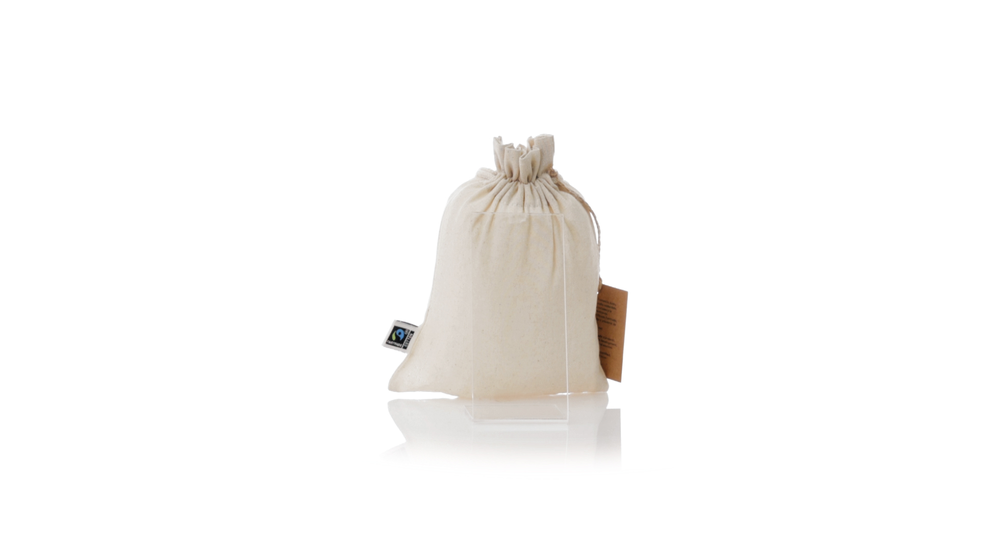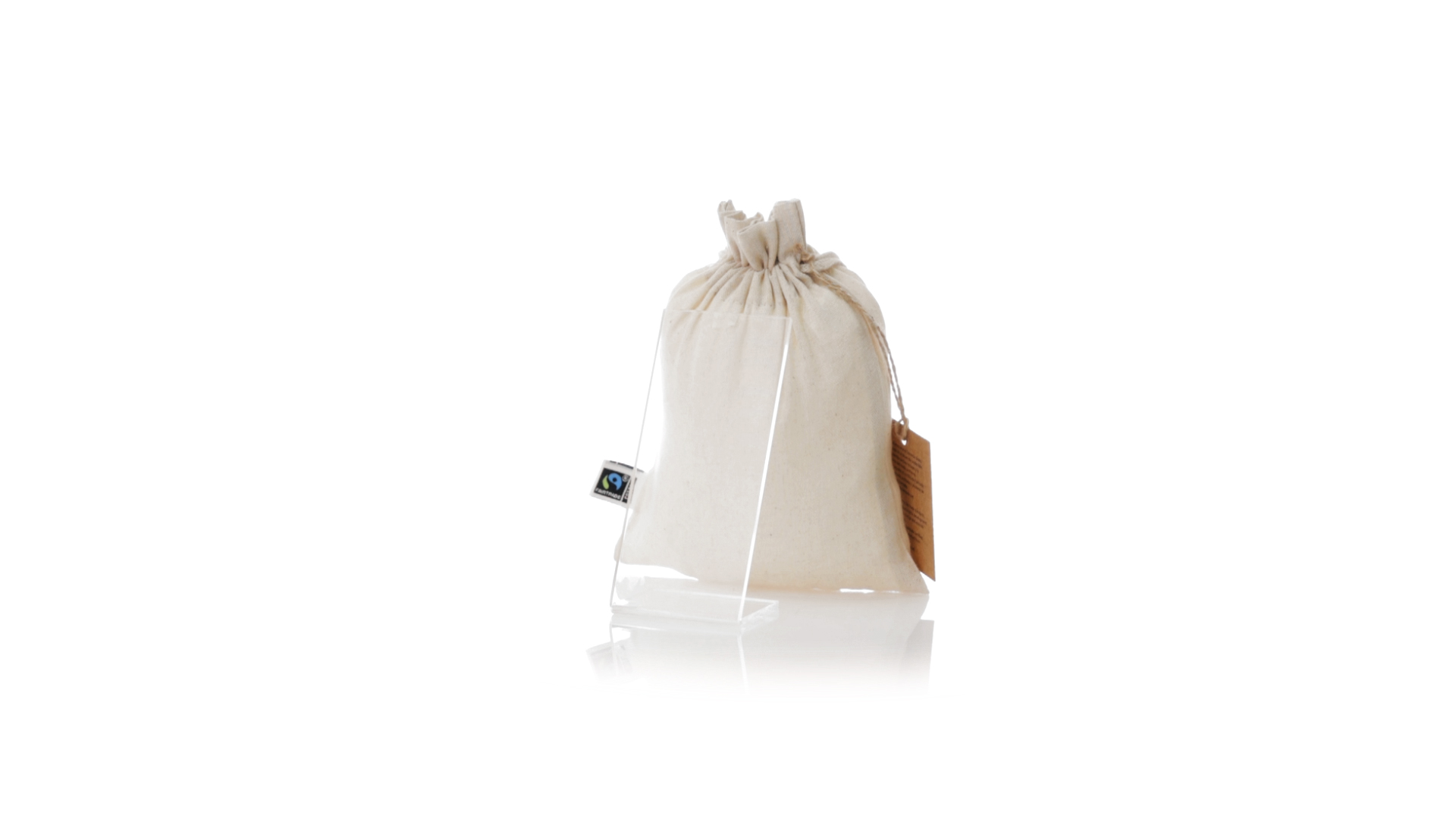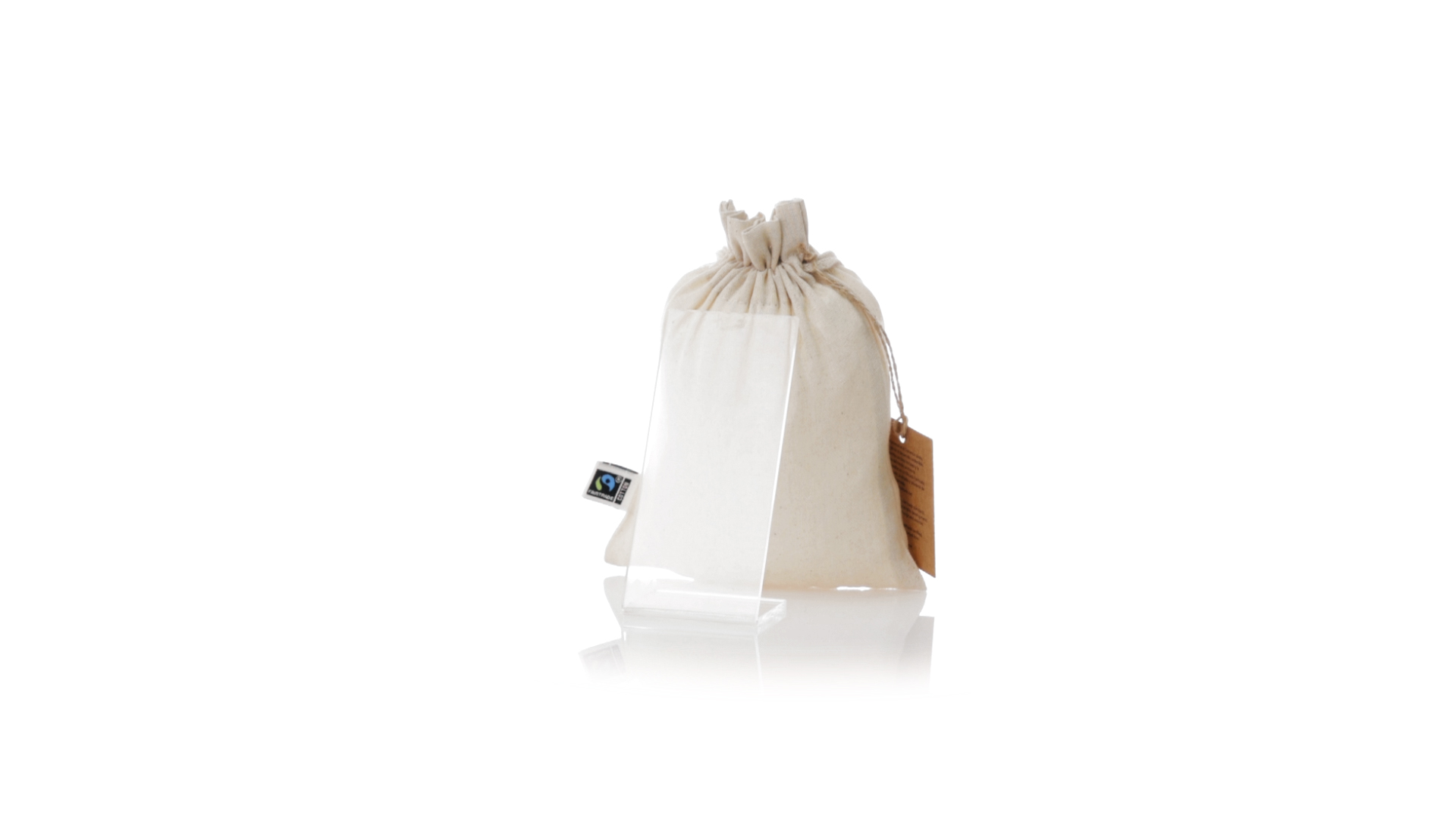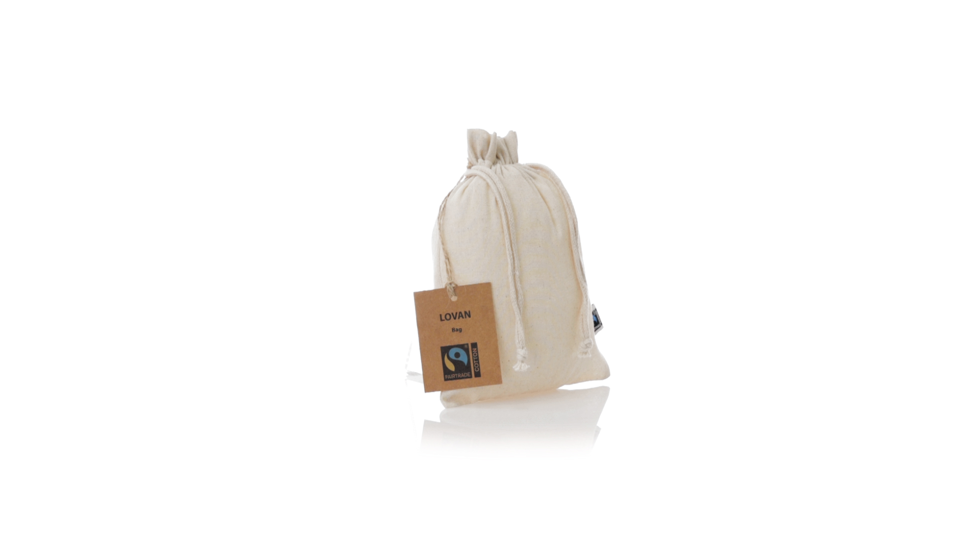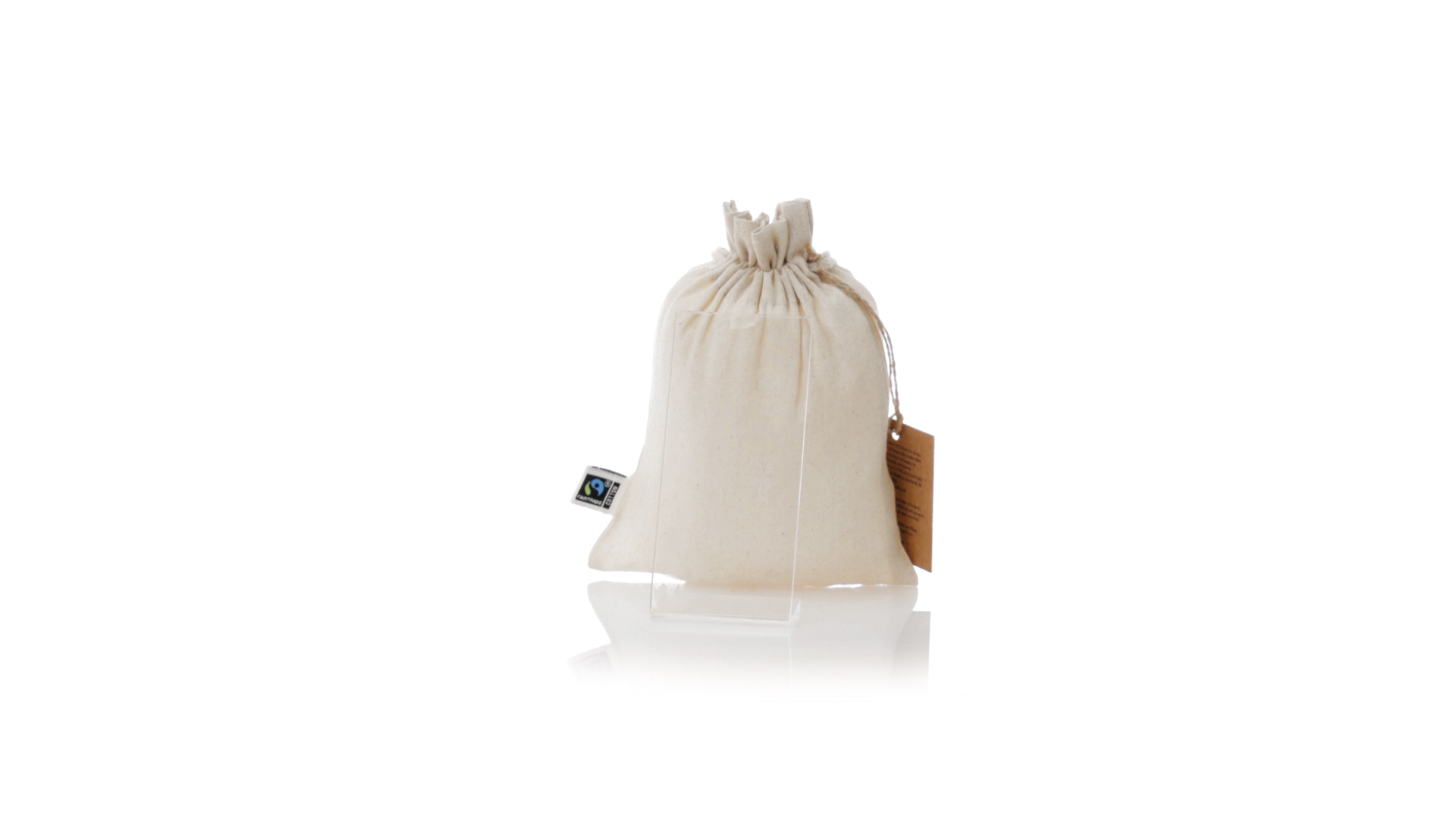 Natur Linie Tasche, hergestellt aus Baumwolle 105g/m2 in natürlicher Farbe. Mit der Fairtrade-Zertifizierung (Fair Trade) ein solidarisches und alternatives Handelssystem, das die Entwicklung der Völker und die Bekämpfung der Armut zum Ziel hat. Genäht, mit selbstschliessender Schnur. Einschliesslich Fairtrade-Label und unverwechselbarem Hangtag aus recyceltem Karton.
