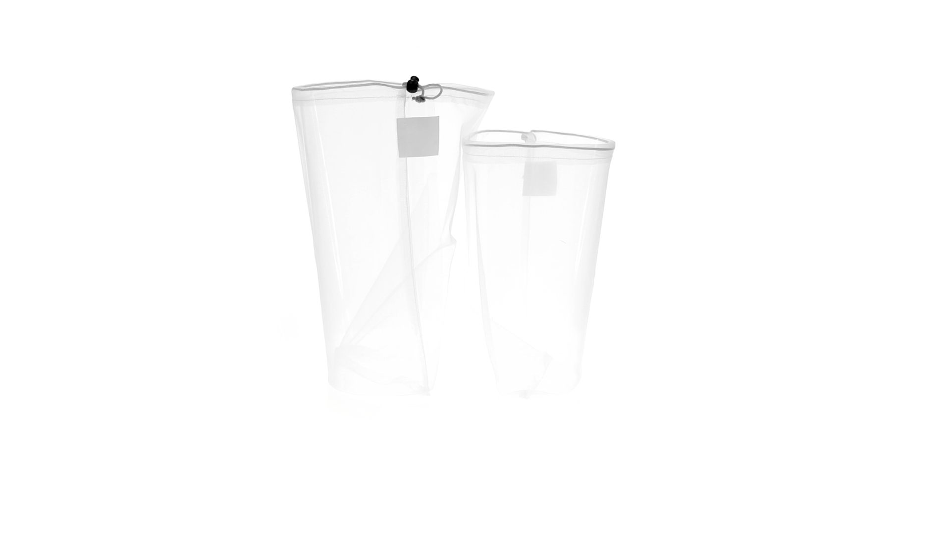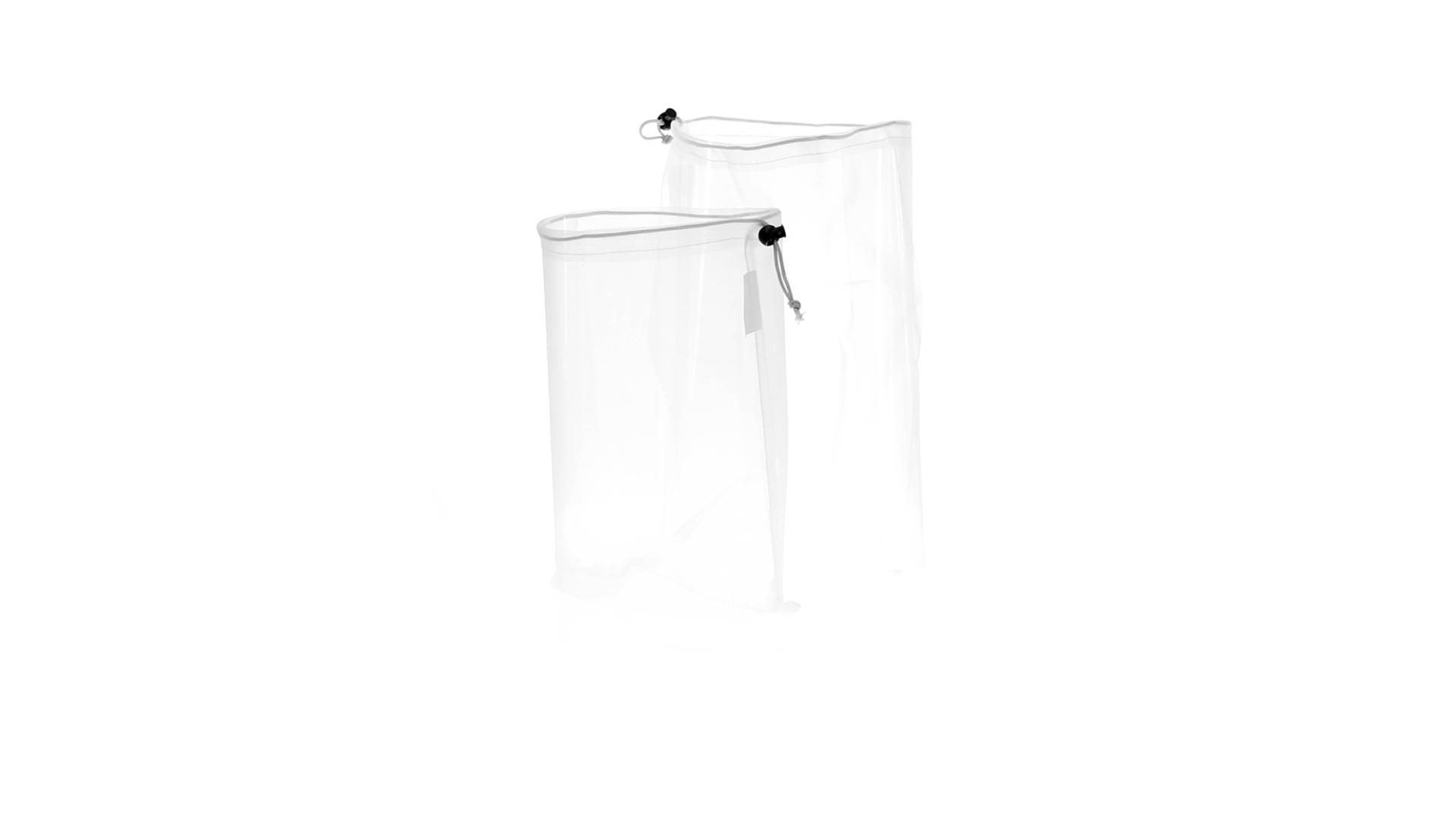 Satz wiederverwendbarer Taschen aus der Naturlinie. Hergestellt aus Mesh-Polyester, mit Schnurverschluss und Einstellzubehör. Einschliesslich 2 Beutel (1 Beutel 30x35 cm, 1 Beutel 25x30 cm) mit anpassbarem Seitenetikett.