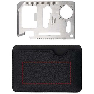Werkzeug mit 15 Funktionen in Scheckkartenformat mit Lederimitatetui. Funktionen: Dosenöffner, Messerklinge, Schraubendreher, Lineal, Flaschenöffner, mehrere Schraubenschlüsselgrössen für unterschiedliche Muttern- und Schraubenköpfe, Butterfly-Schlüssel, Sägeblatt, Richtungsanzeige sowie eine Öse für Lanyard bzw. Schlüsselring.