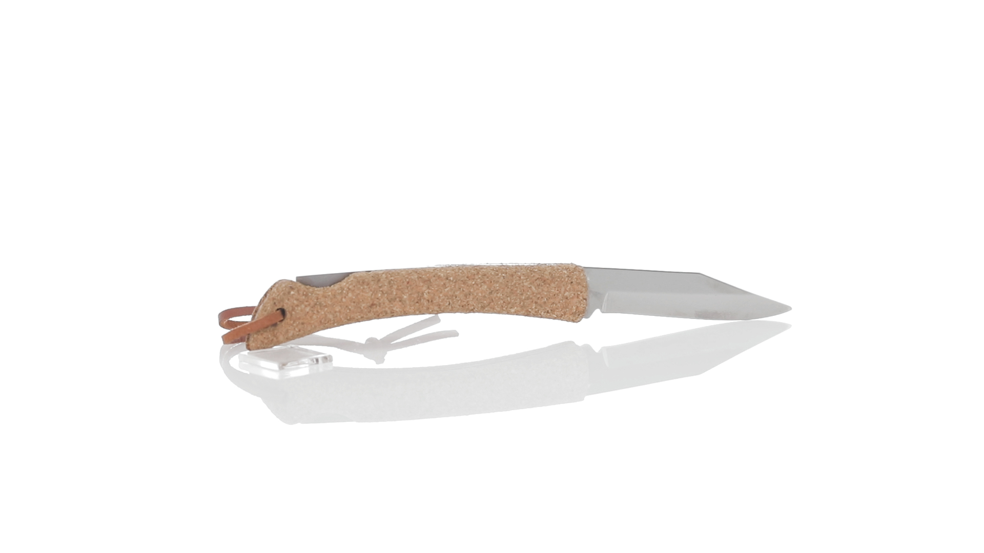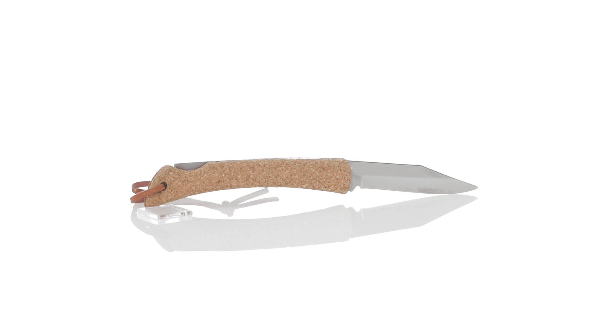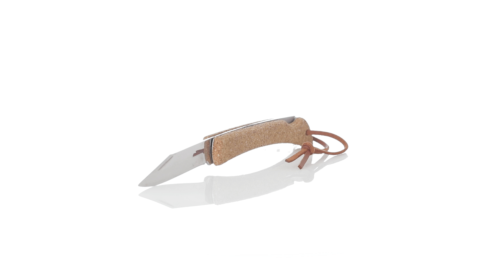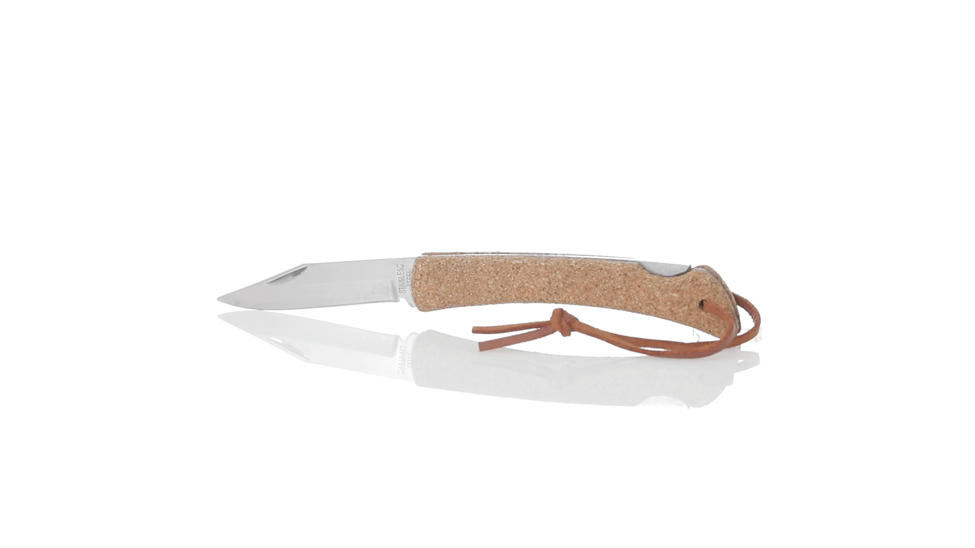 Messer der Nature-Linie mit Klinge aus rostfreiem Stahl und Griff aus Naturkork. Mit Arretierung und Kerbe an der Klinge zum einfachen Öffnen. Passendes PU-Lederarmband und präsentiert in einer individuellen Box mit Kraft-Design.