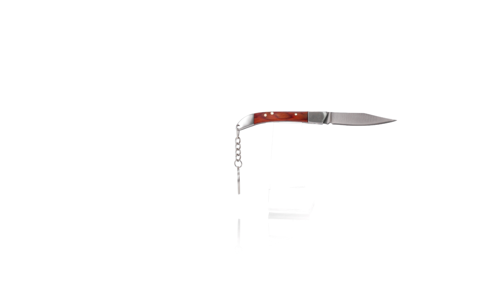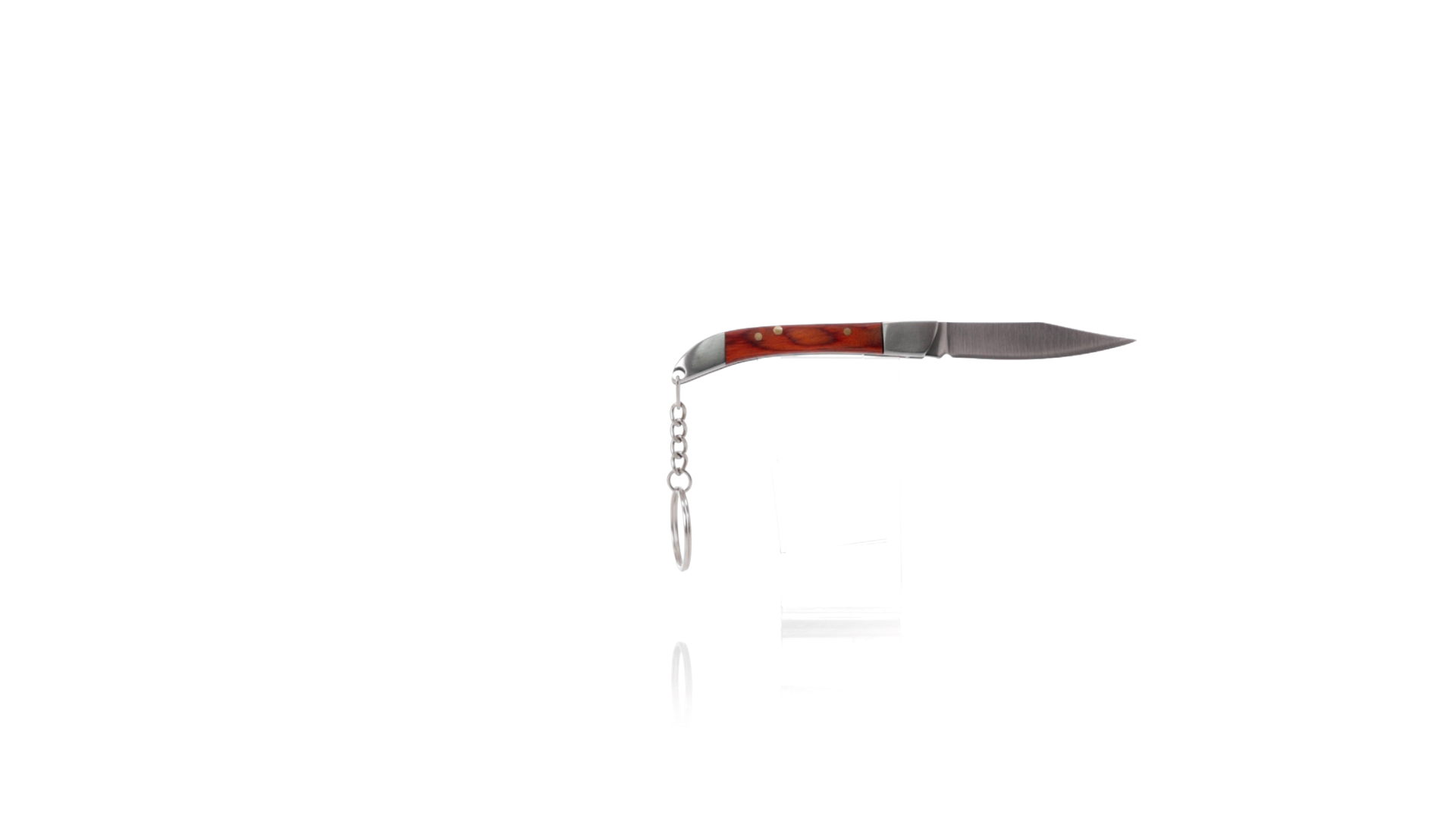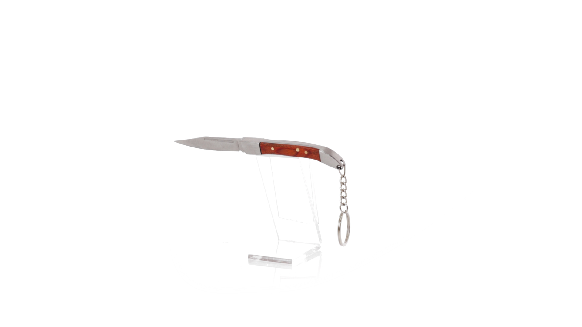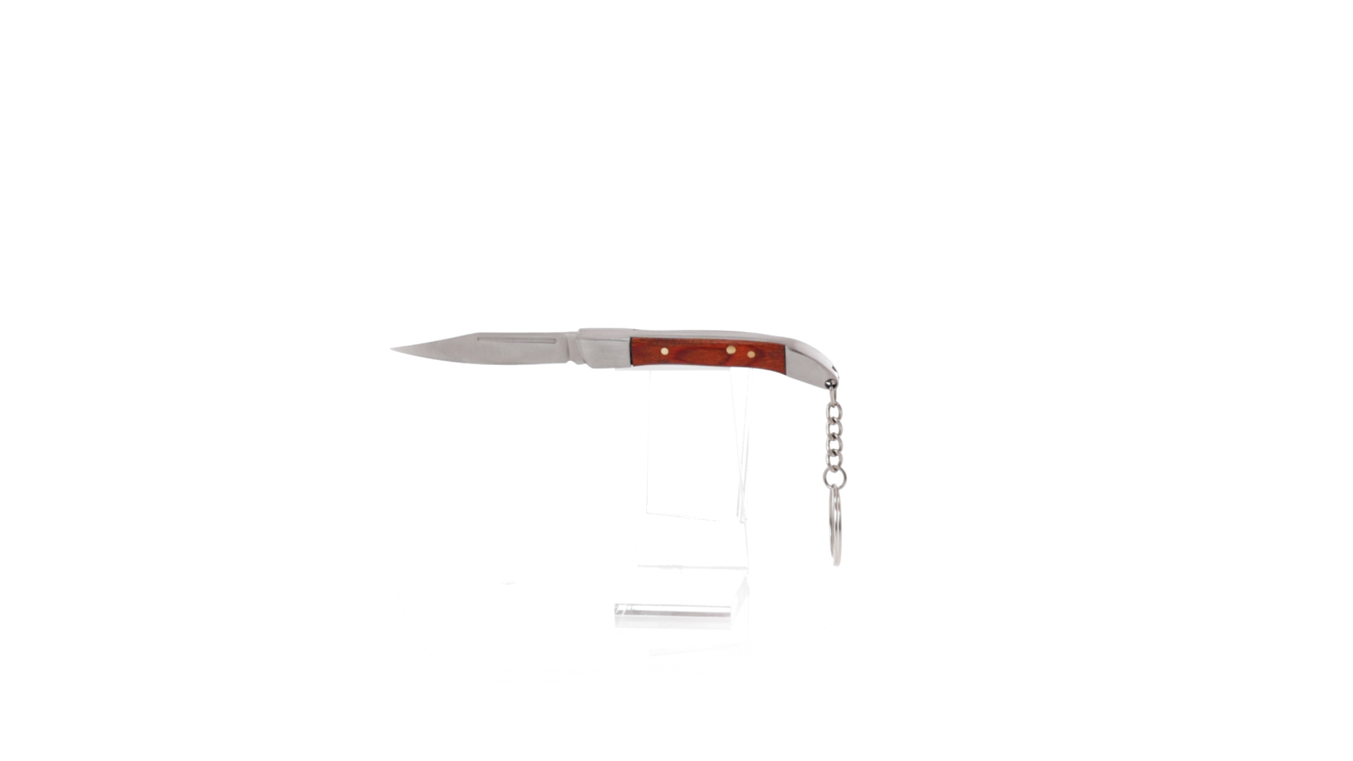 Praktischer Messerschlüsselanhänger mit Edelstahlklinge und widerstandsfähigem Metallgriff mit Details aus Naturholz. Präsentiert in einer individuellen Kraft-Designbox.