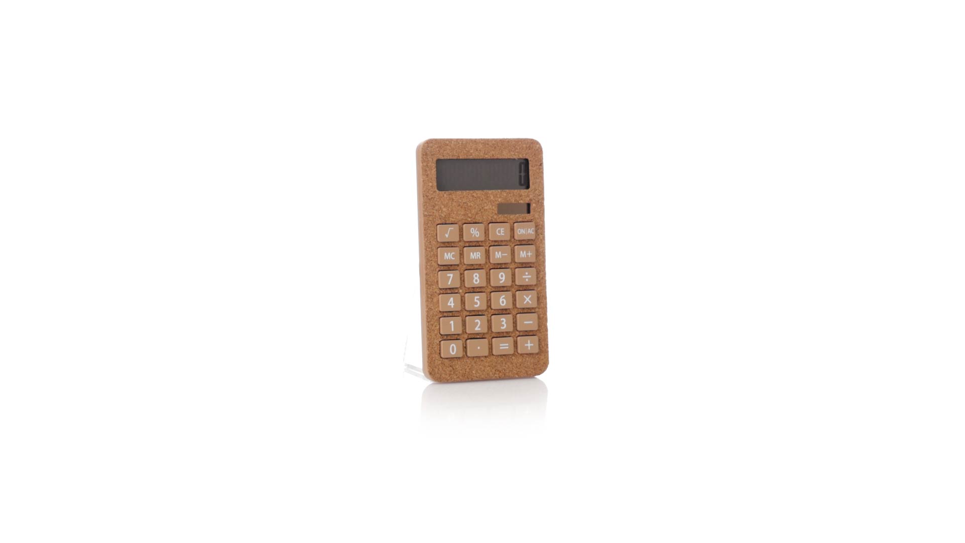 10-stelliger Taschenrechner aus Kork. Mit Abschaltautomatik und Softkeys. Solarbetrieben, mit Hilfsstromversorgung durch 1 Knopfzellenbatterie (im Lieferumfang enthalten). Präsentiert in einer attraktiven Kraftpapier-Designbox, mit Bedienungsanleitung in Englisch und Spanisch.