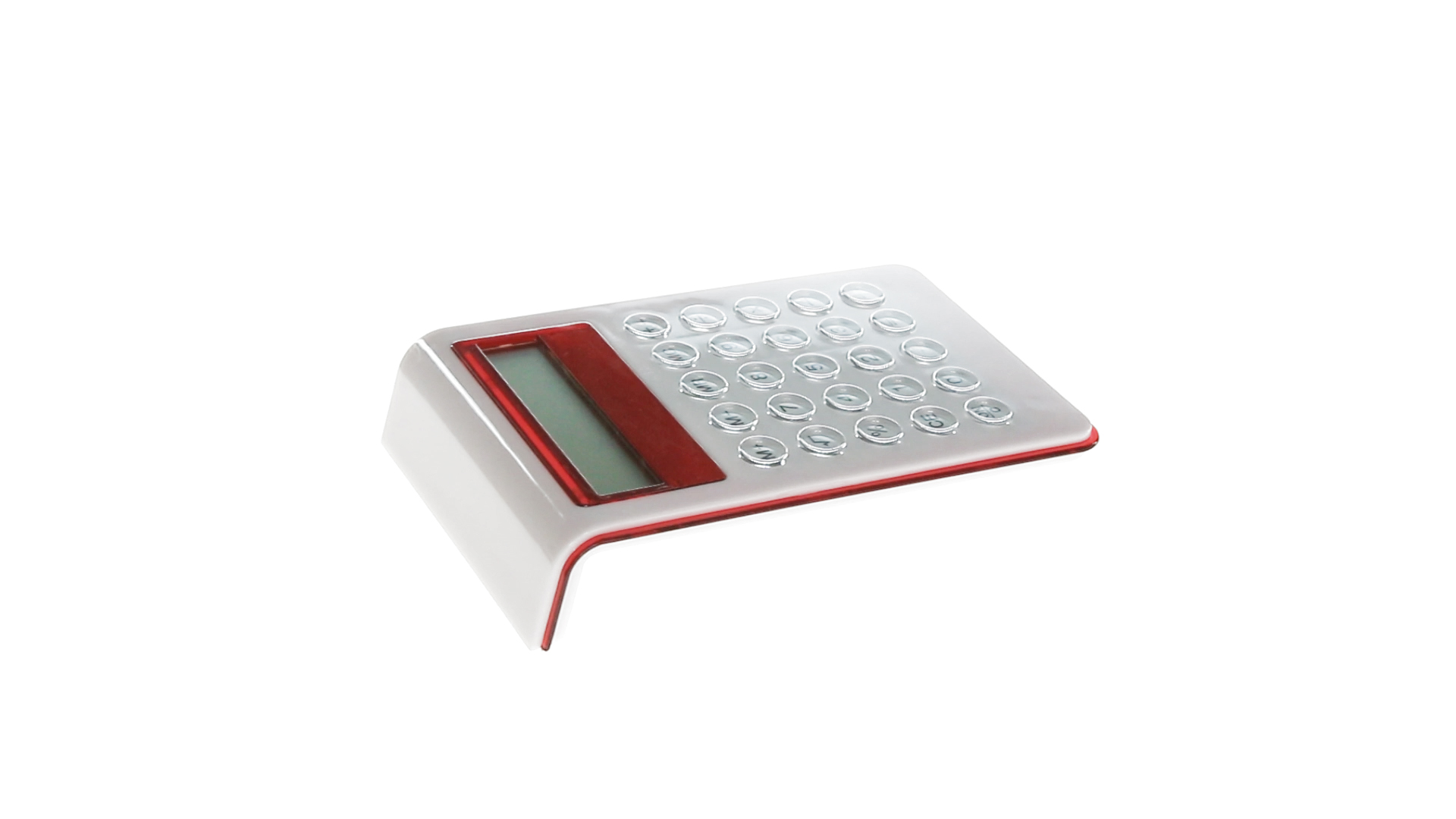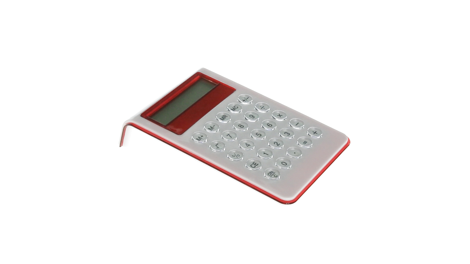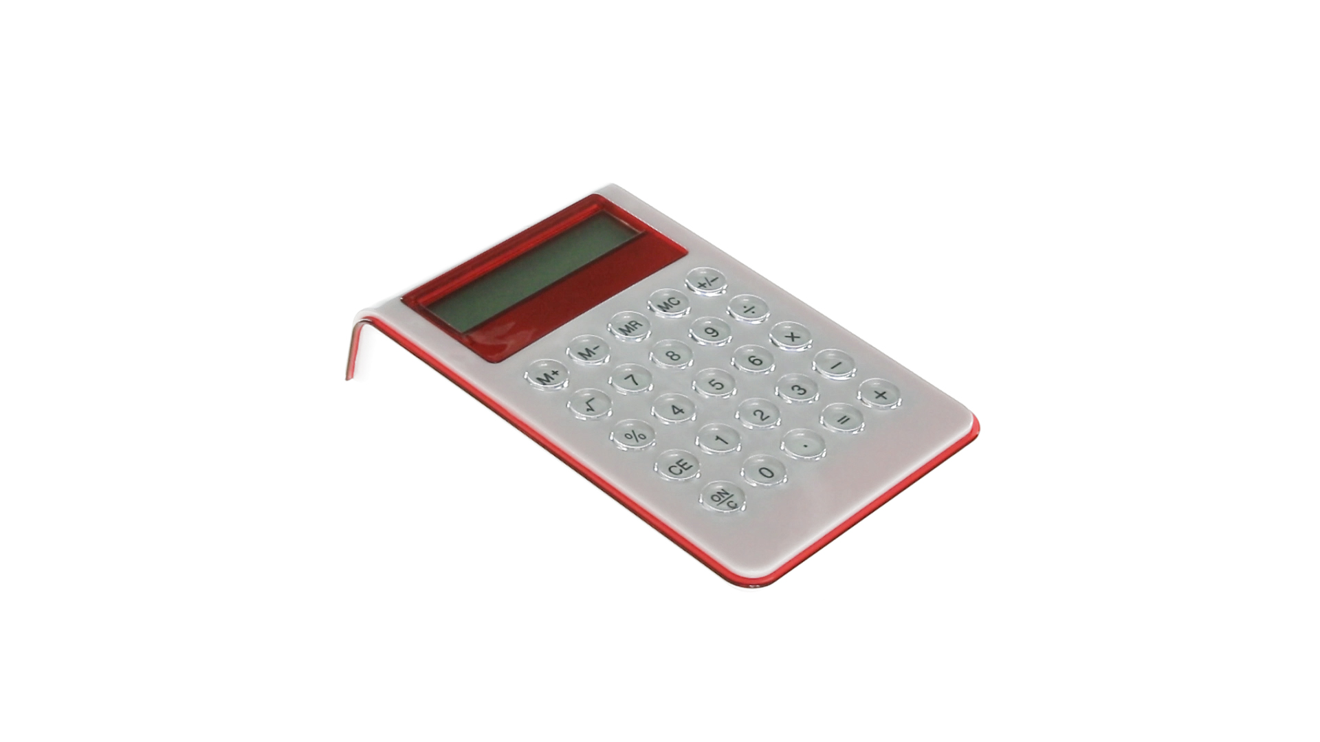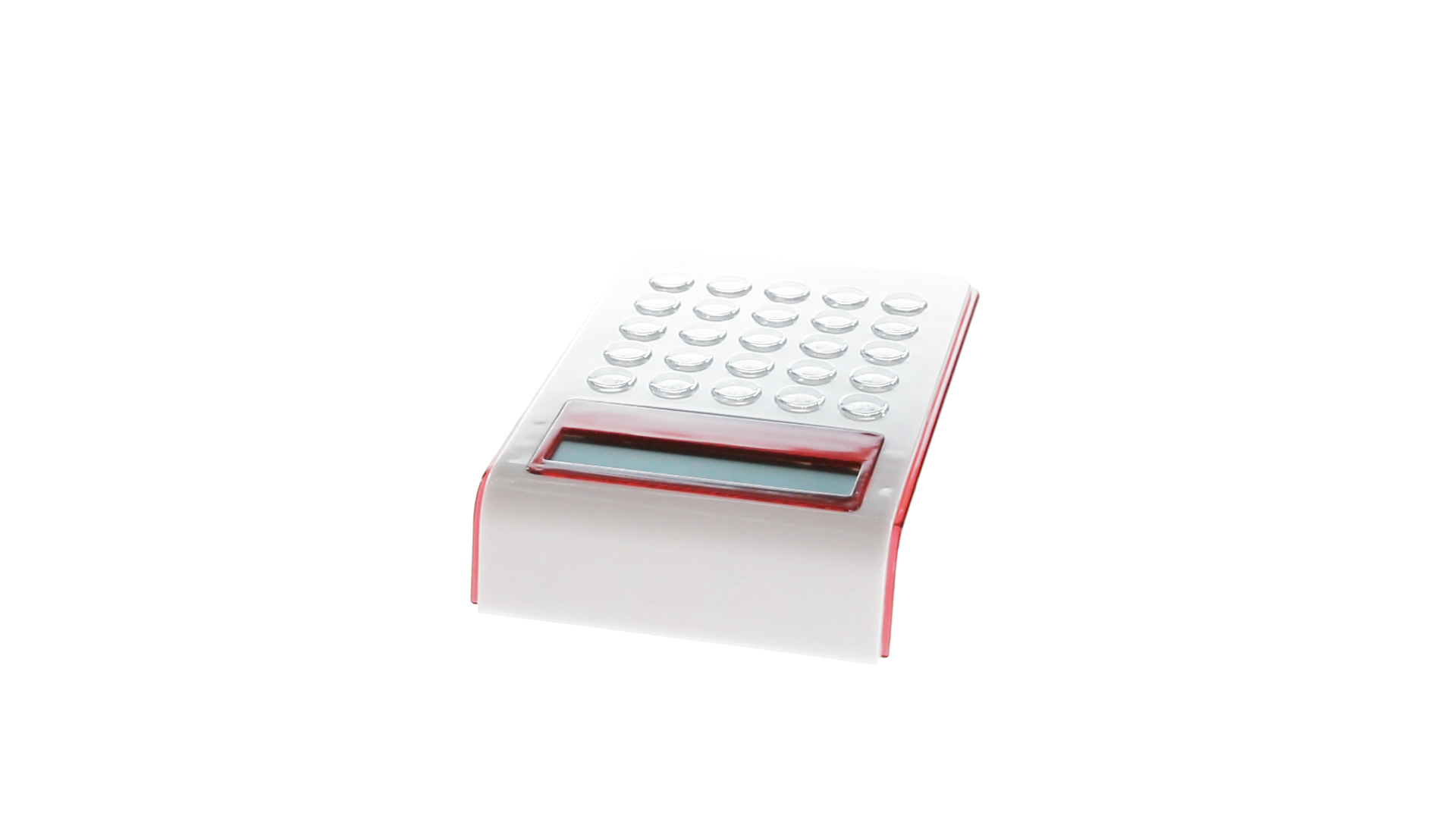 8-stelliger Taschenrechner mit originellem, zweifarbigem Design in lebendigen Farben und weichen, transparenten Tasten. Knopfzelle mit Schutzfolie inklusive. Präsentiert in einer individuellen Box.