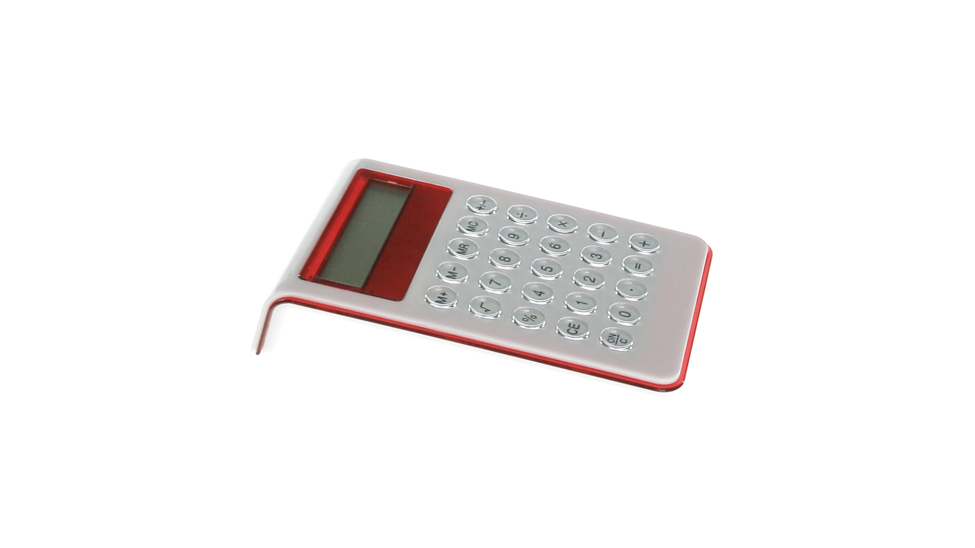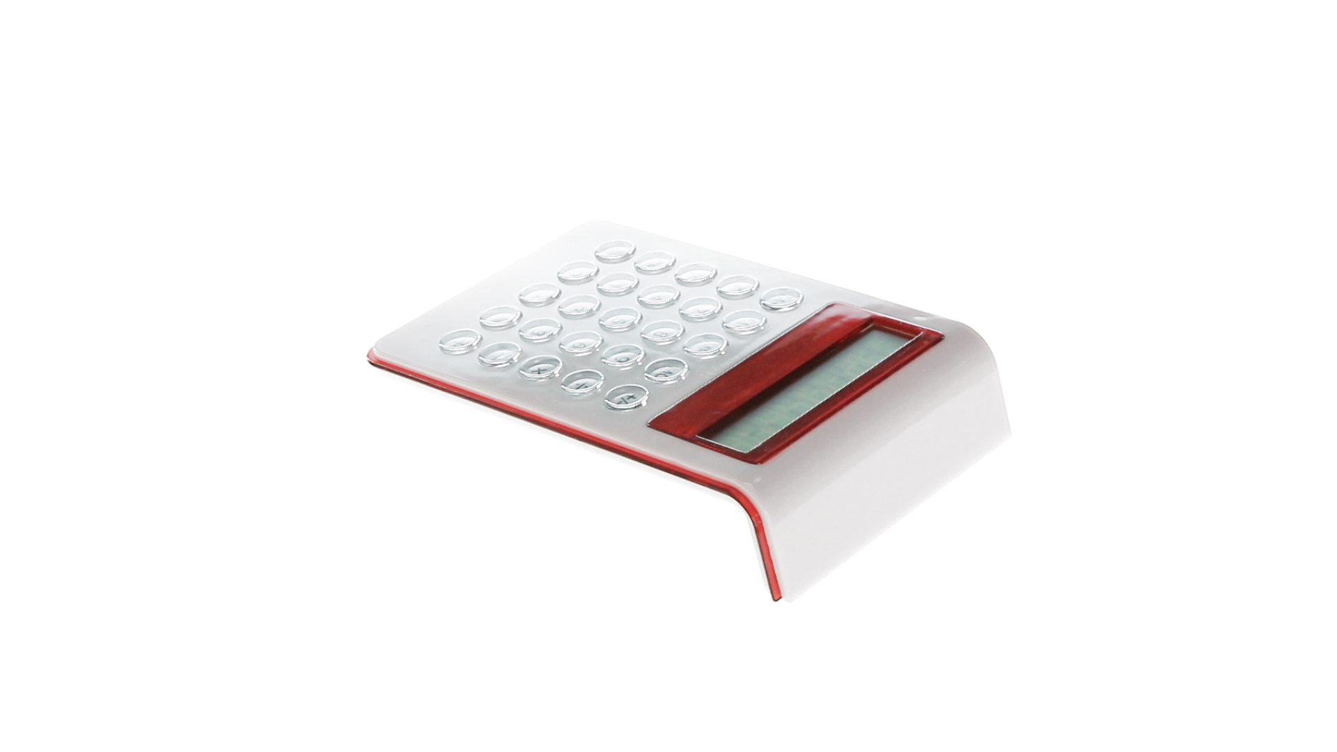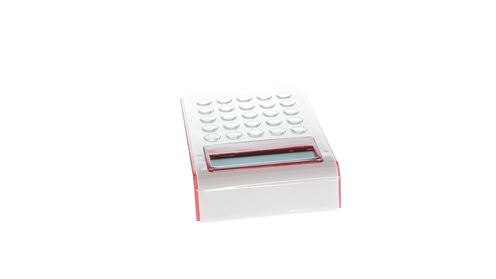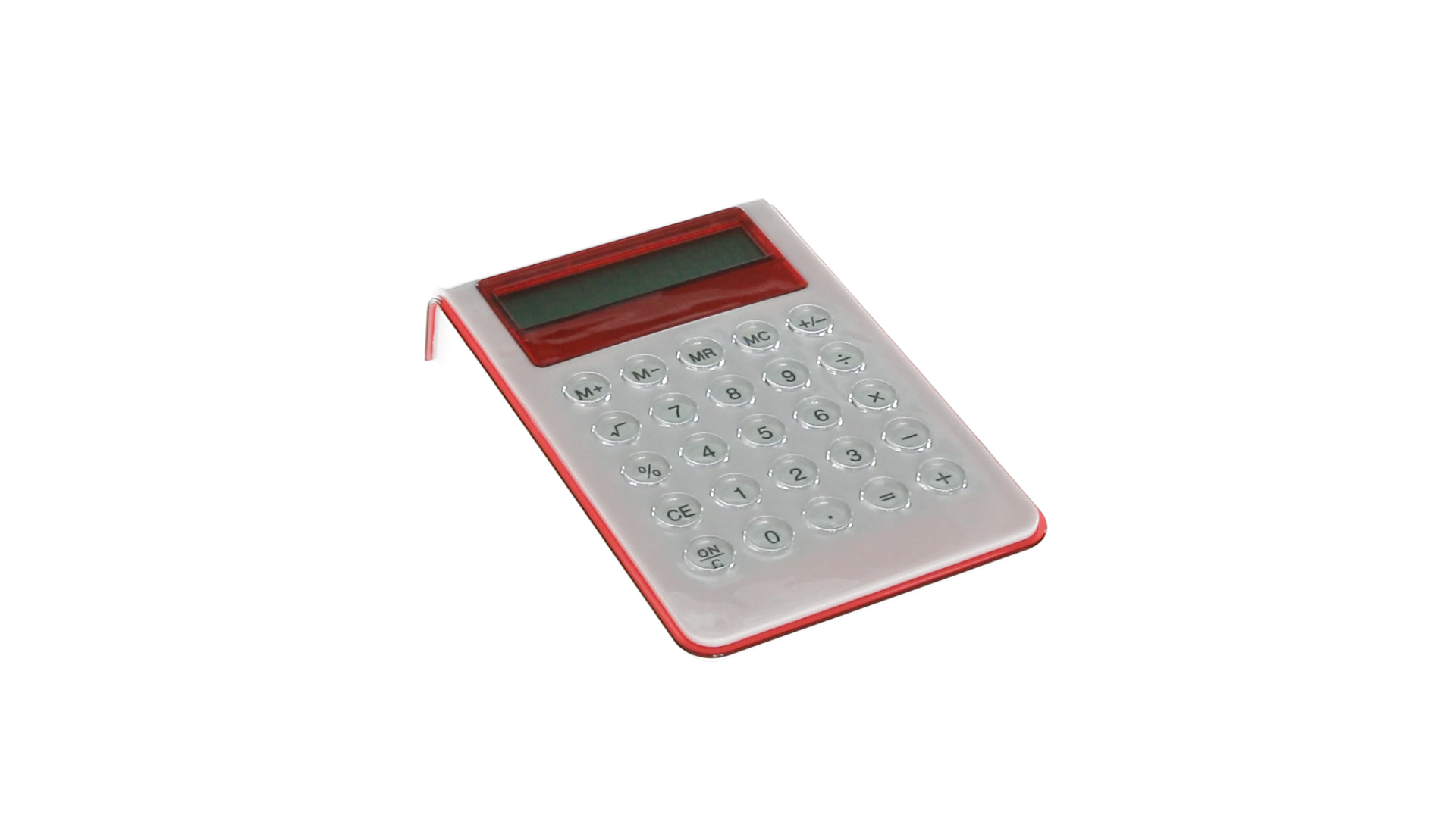 8-stelliger Taschenrechner mit originellem, zweifarbigem Design in lebendigen Farben und weichen, transparenten Tasten. Knopfzelle mit Schutzfolie inklusive. Präsentiert in einer individuellen Box.