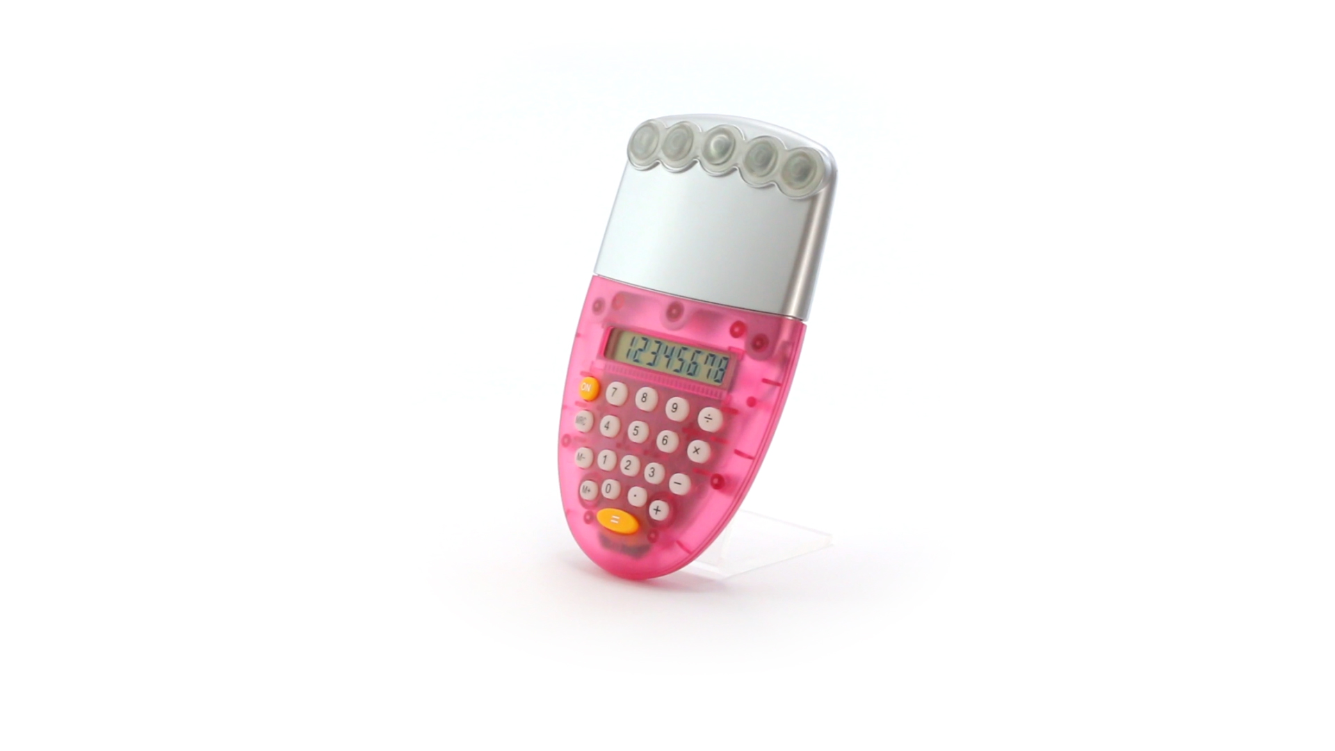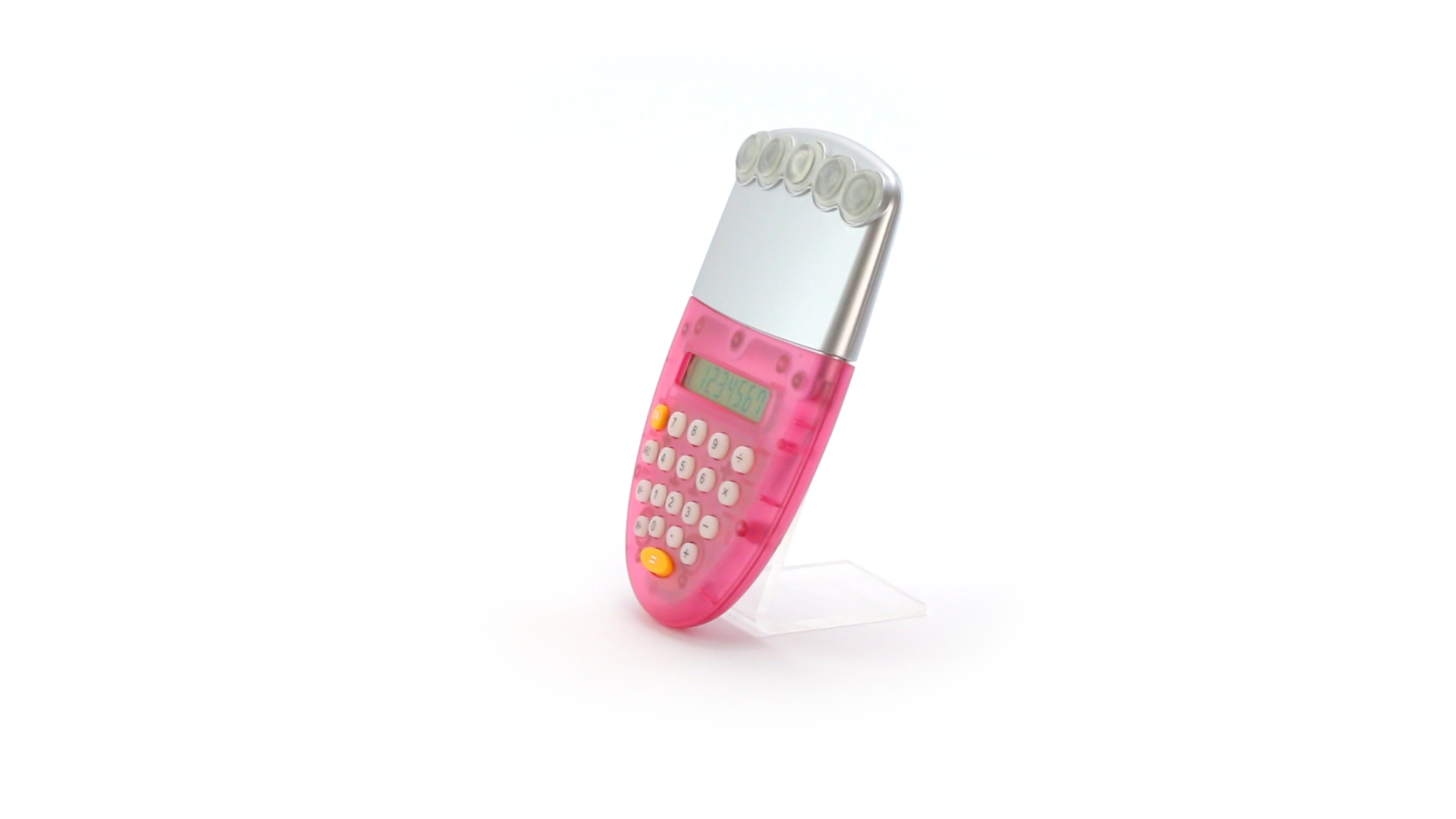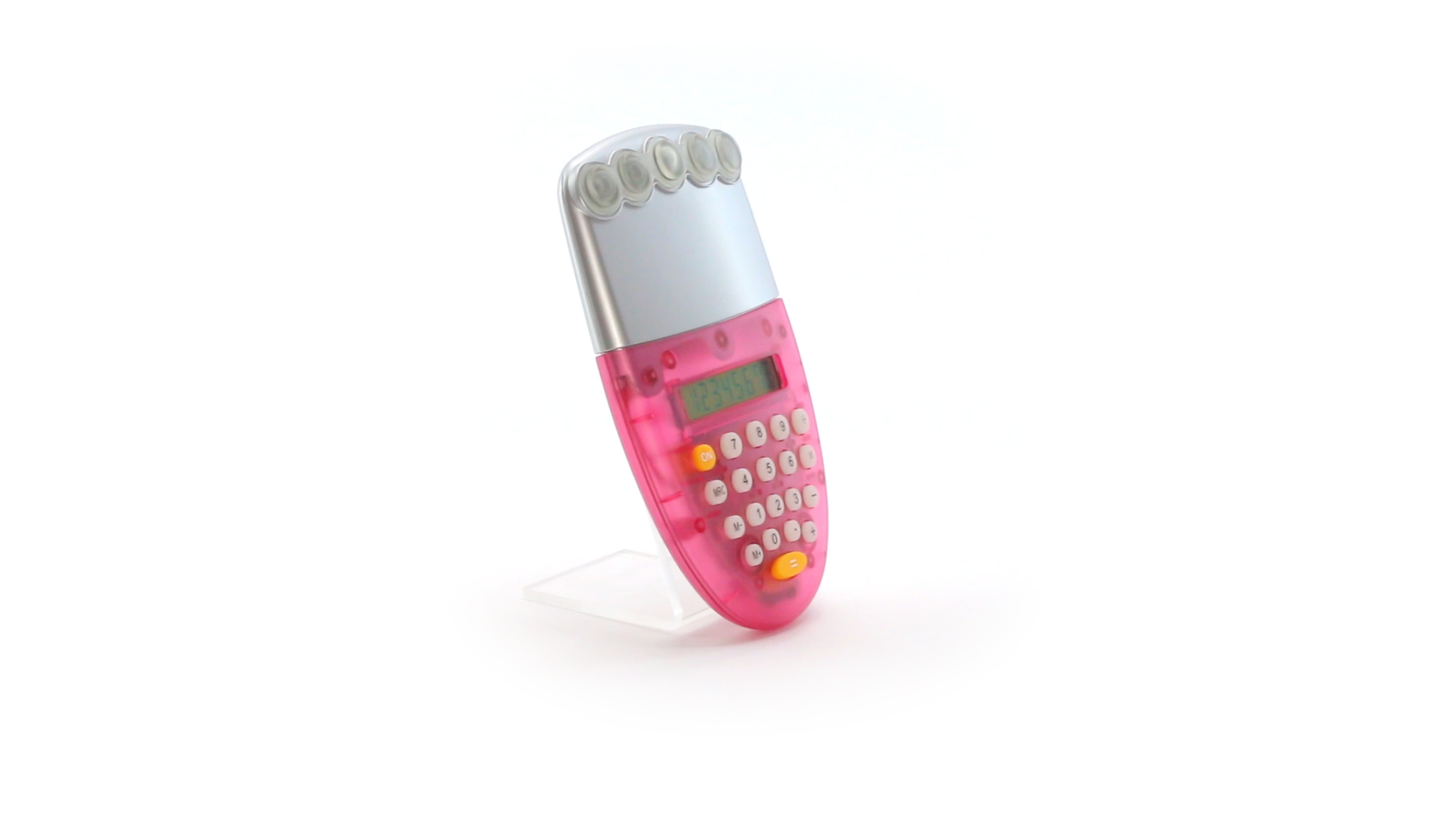 Ökologischer 8-stelliger Taschenrechner in origineller, zweifarbiger Ausführung mit weichen Tasten und Befüllhilfe. Wasserbetrieben. Präsentiert in einer individuellen Box.