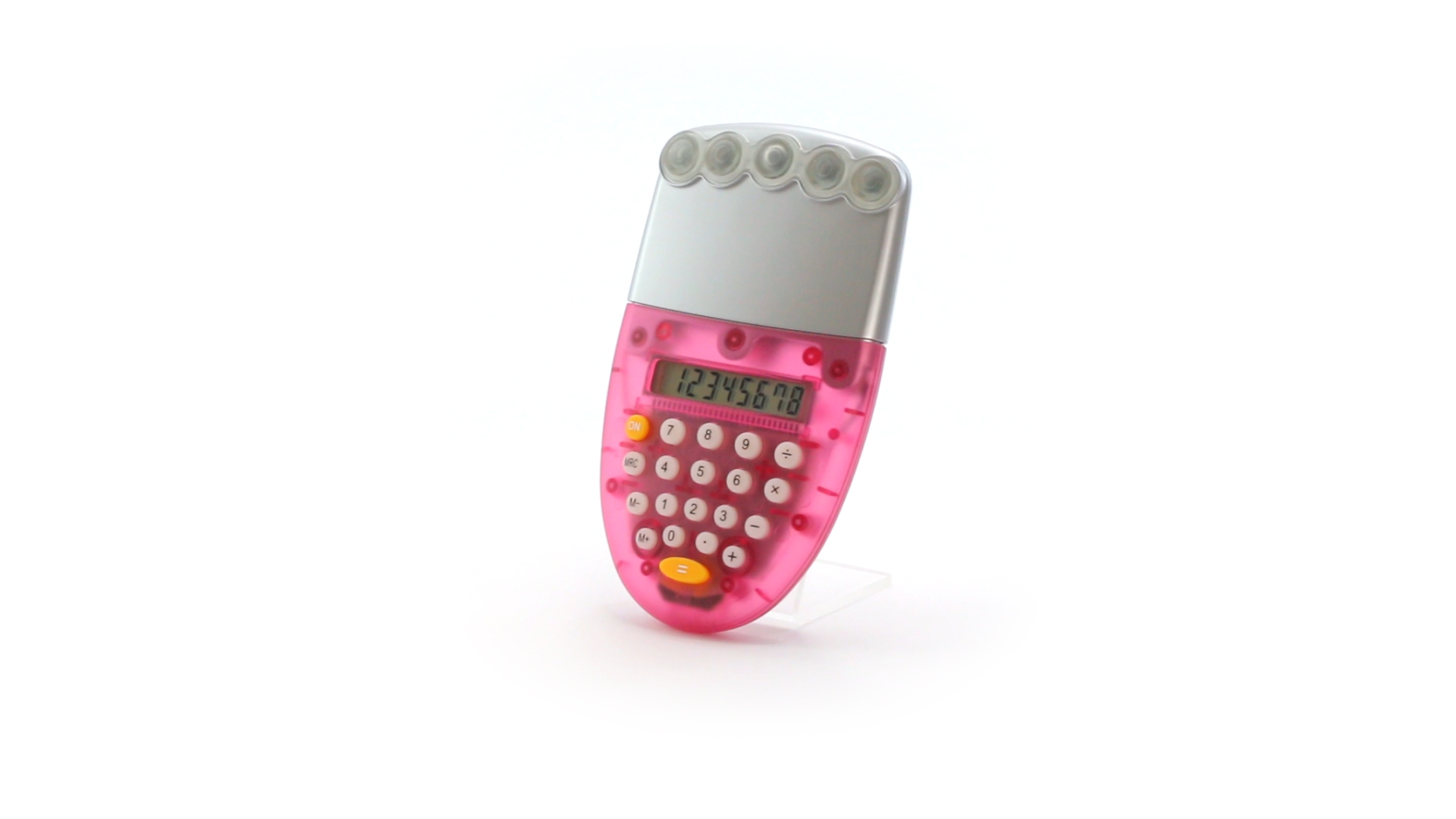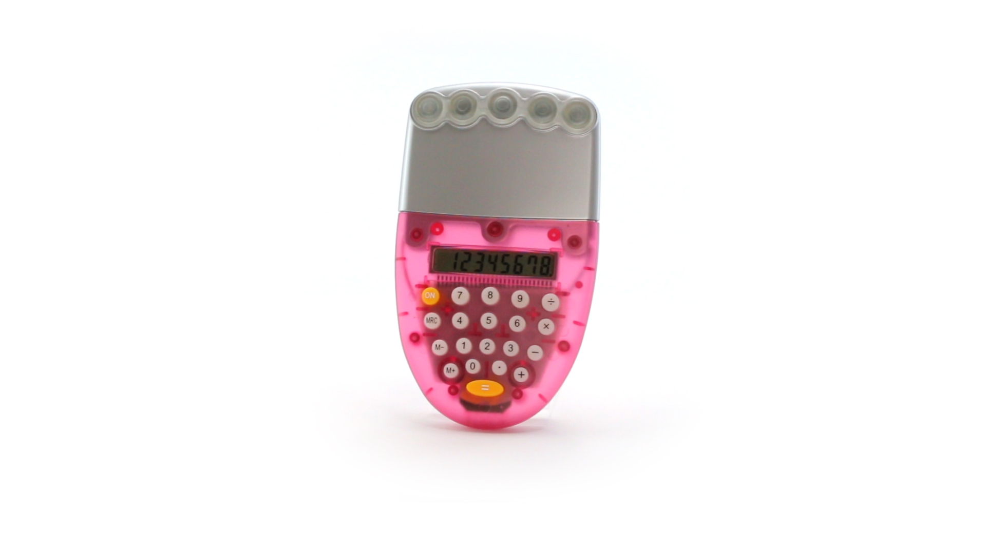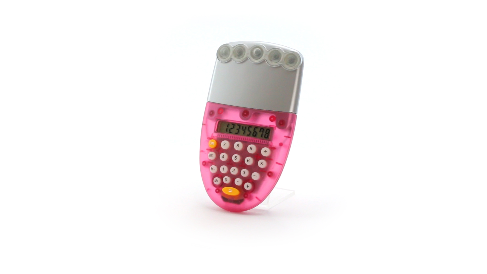 Ökologischer 8-stelliger Taschenrechner in origineller, zweifarbiger Ausführung mit weichen Tasten und Befüllhilfe. Wasserbetrieben. Präsentiert in einer individuellen Box.