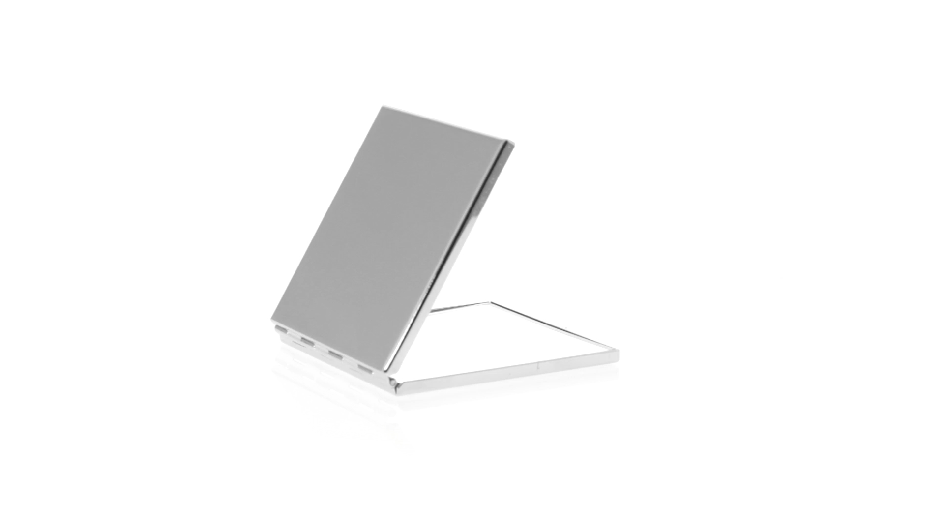 Klappspiegel in eleganter Chrome-Ausführung. Mit zwei Innenspiegeln mit 1x und 2x Vergrösserung.