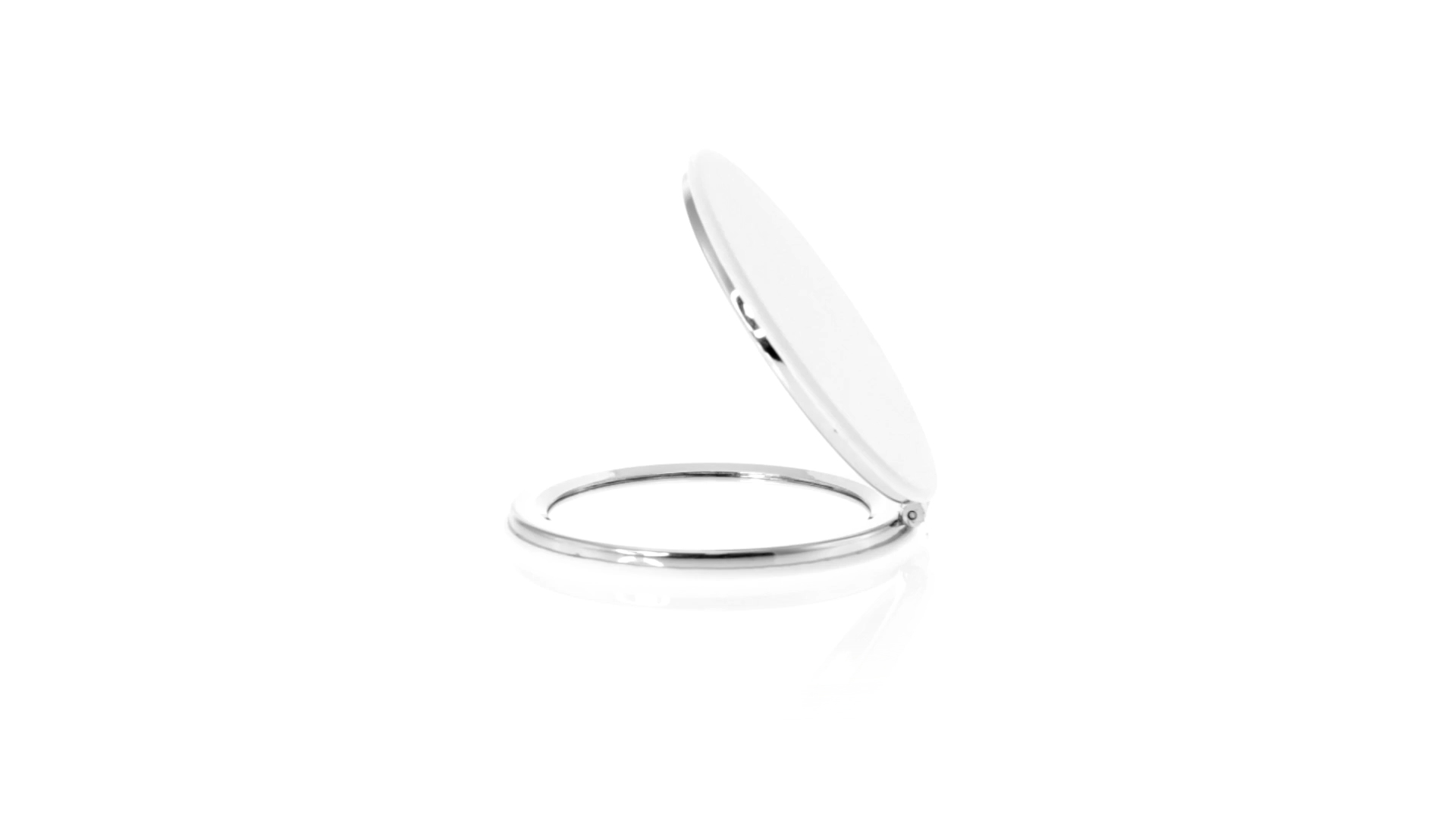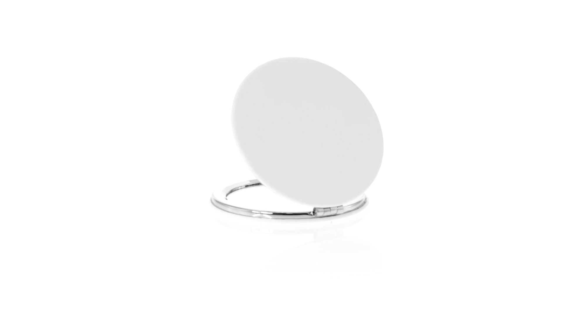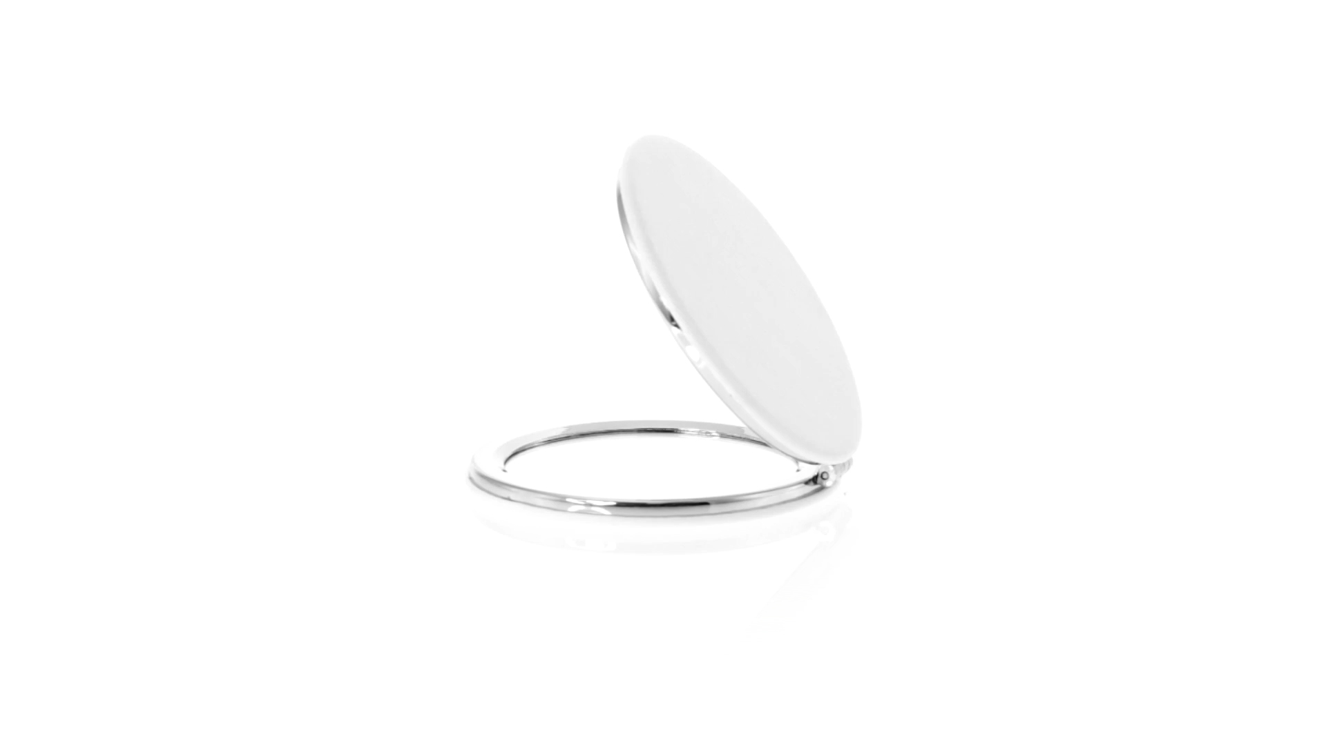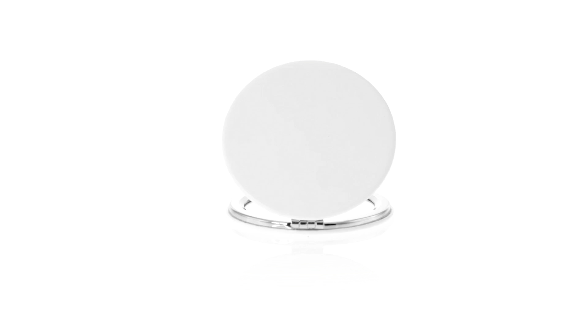 Klappspiegel in eleganter Kunstleder-Ausführung in Weiss. Mit zwei Innenspiegeln mit 1x und 2x Vergrösserung.