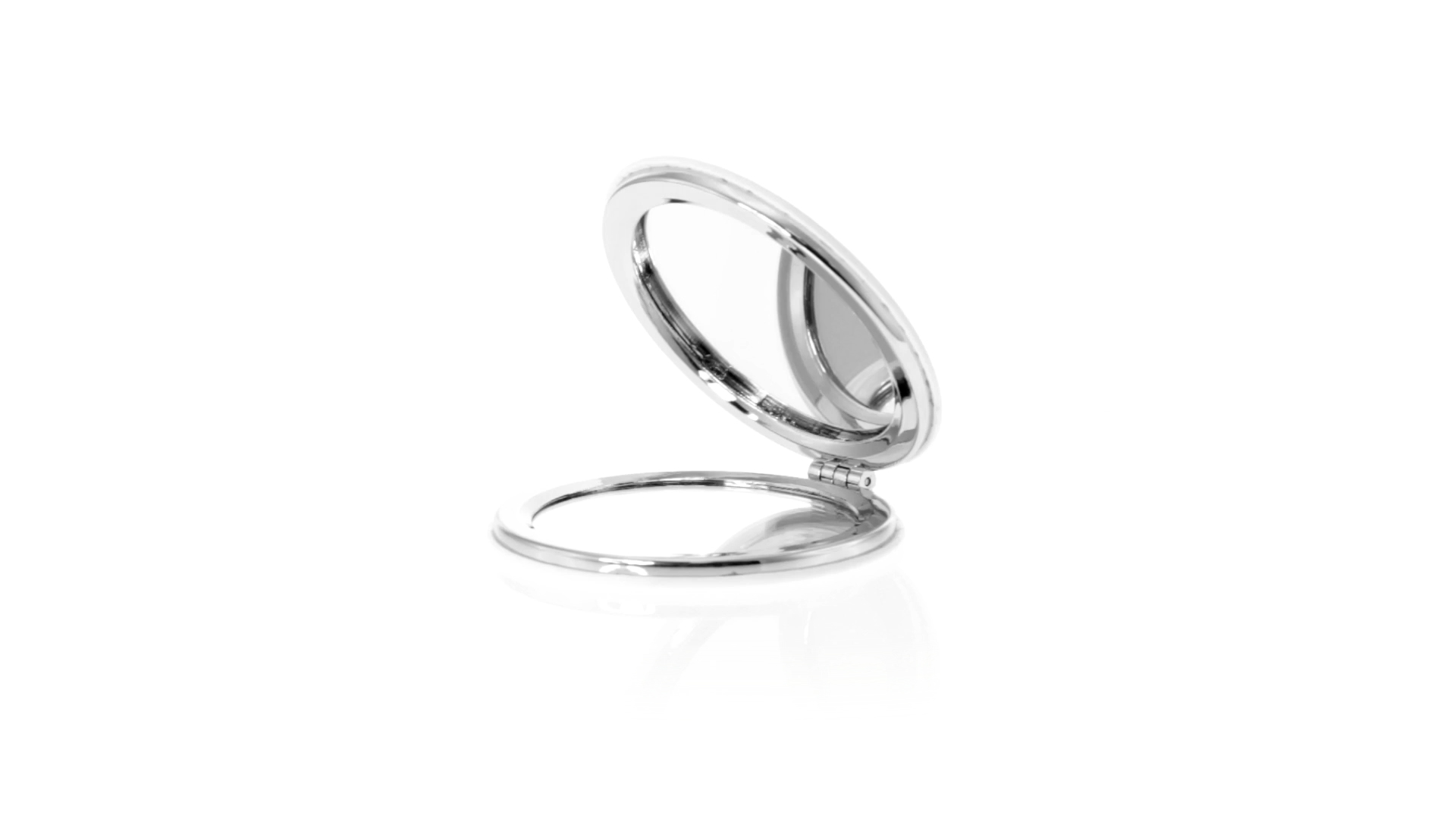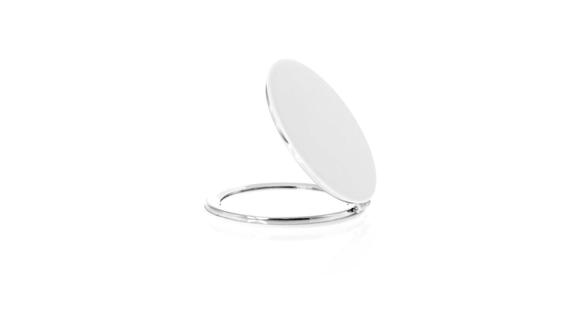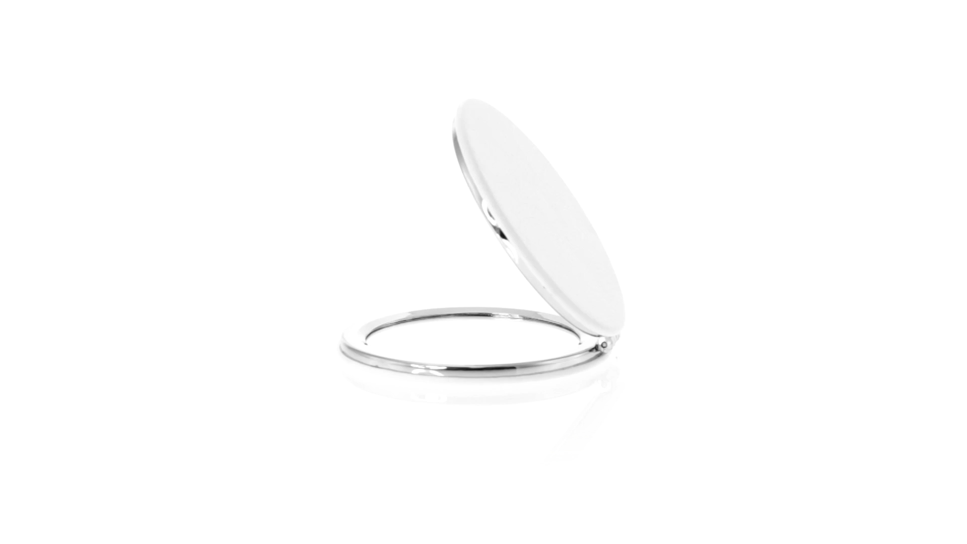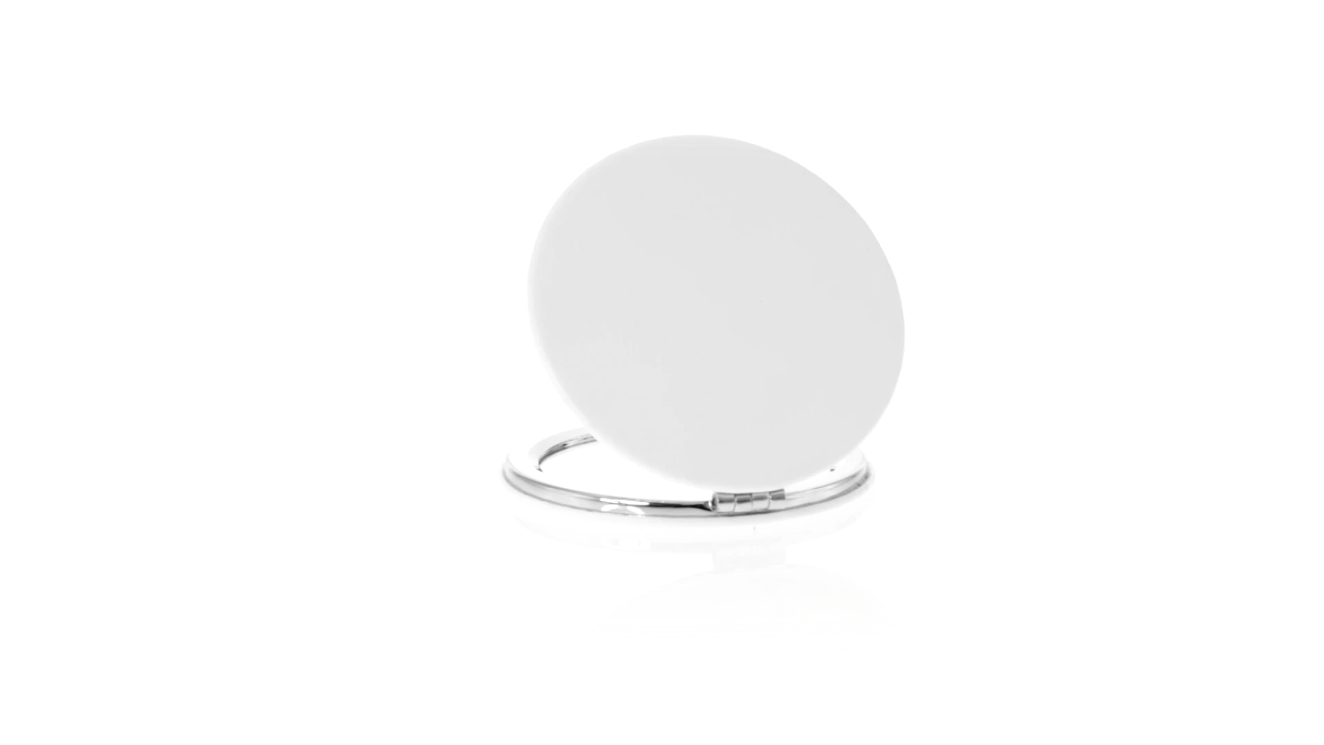 Klappspiegel in eleganter Kunstleder-Ausführung in Weiss. Mit zwei Innenspiegeln mit 1x und 2x Vergrösserung.