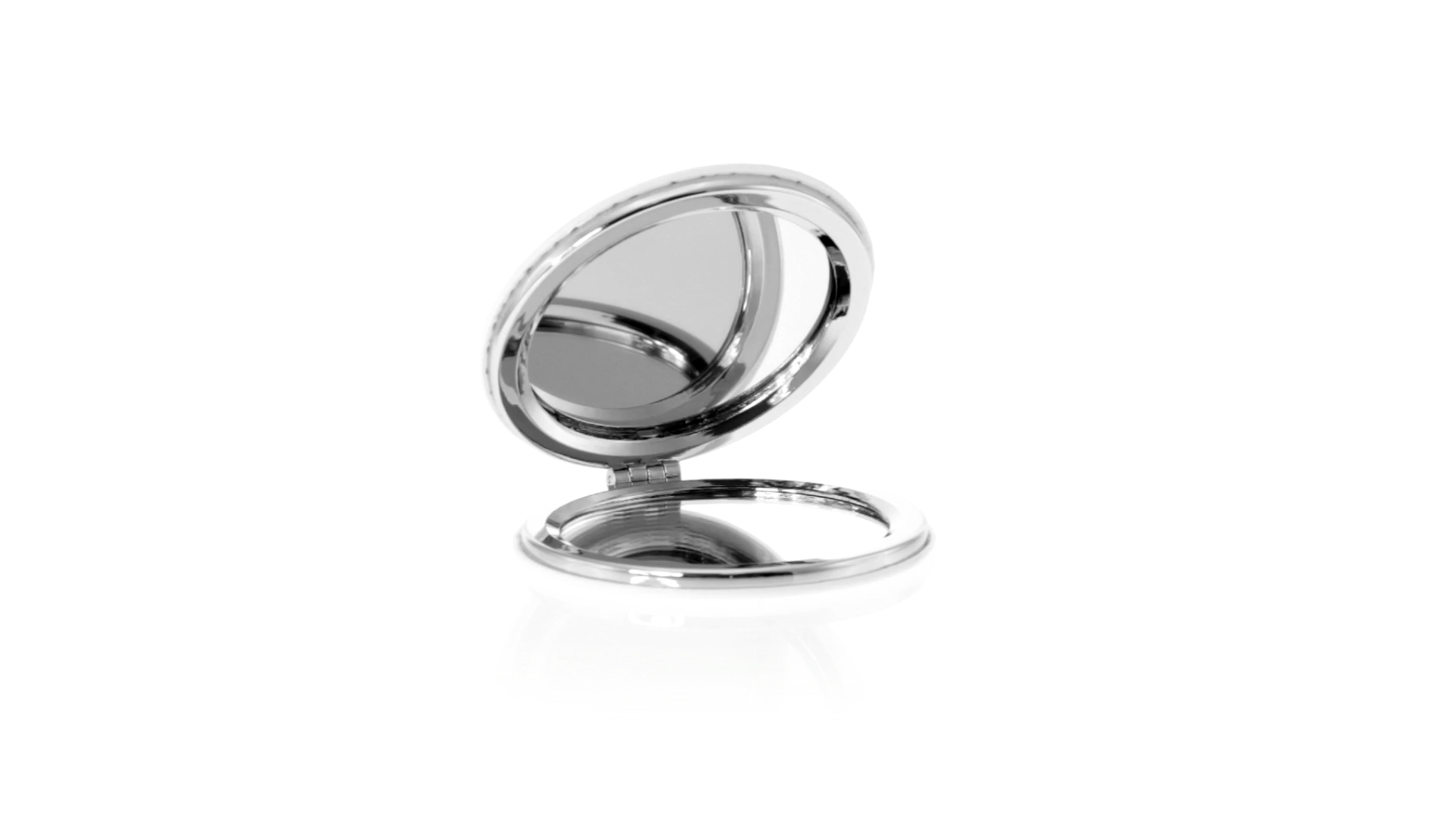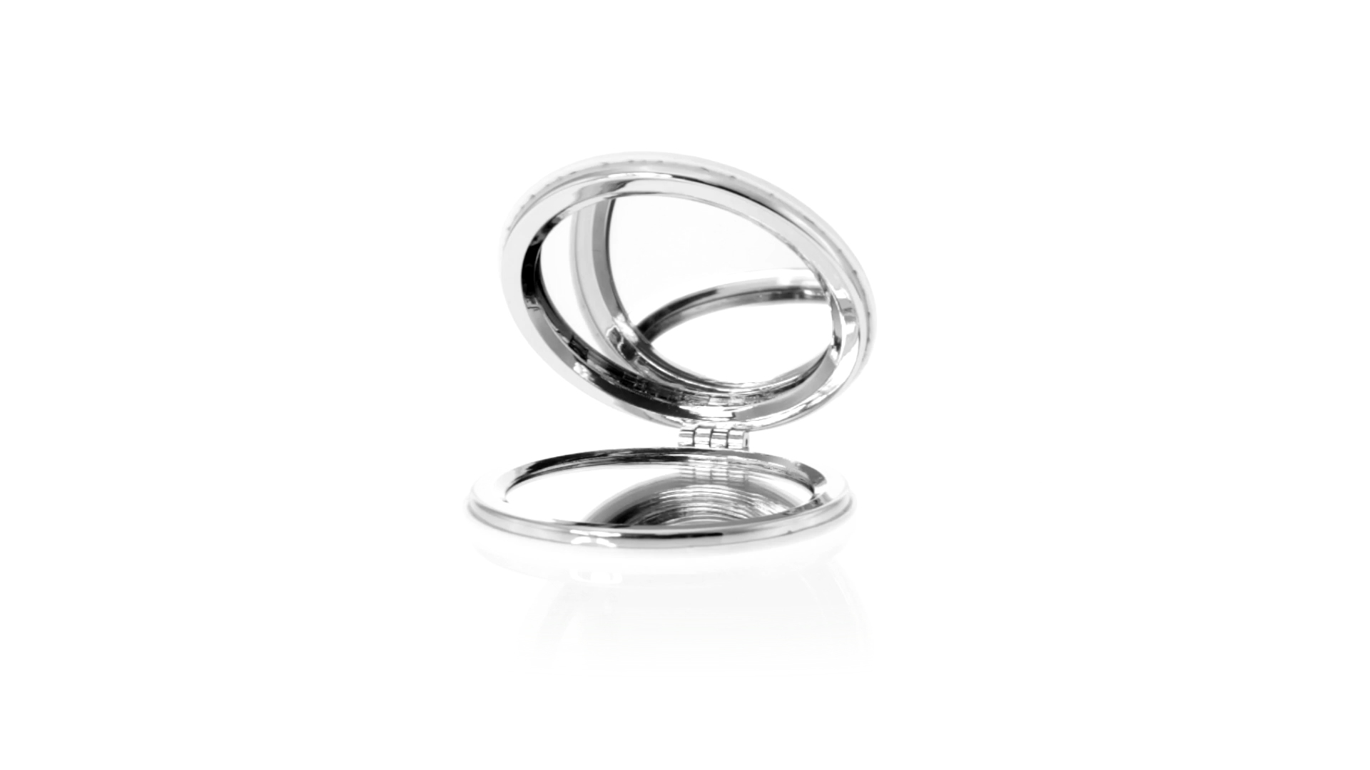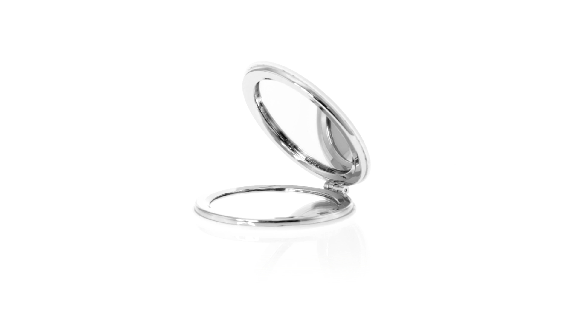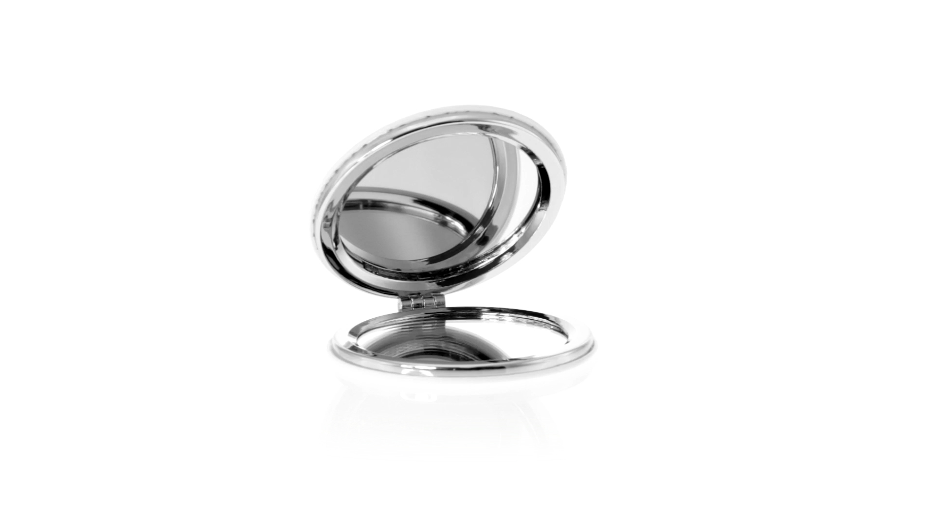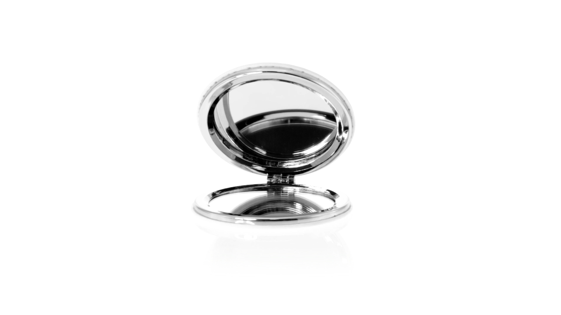Klappspiegel in eleganter Kunstleder-Ausführung in Weiss. Mit zwei Innenspiegeln mit 1x und 2x Vergrösserung.