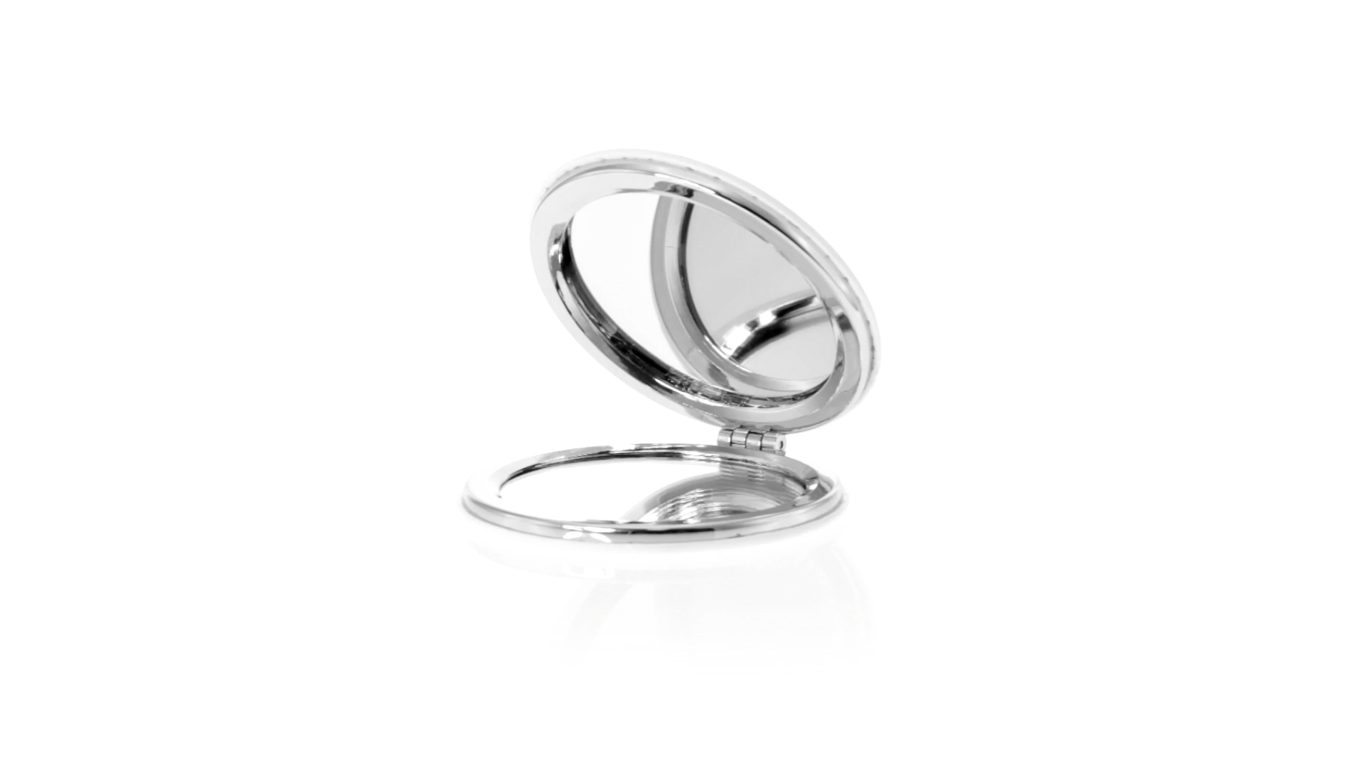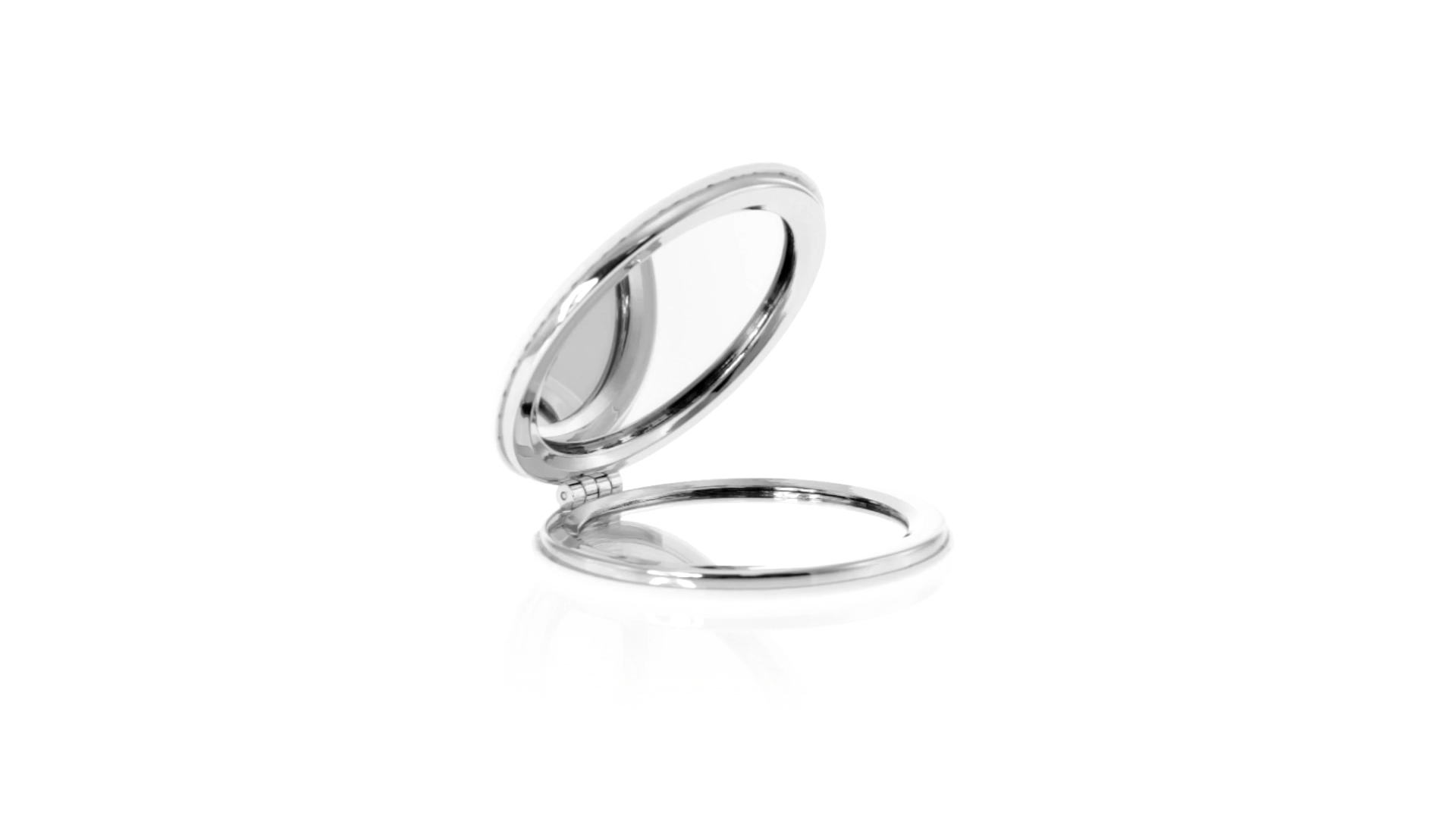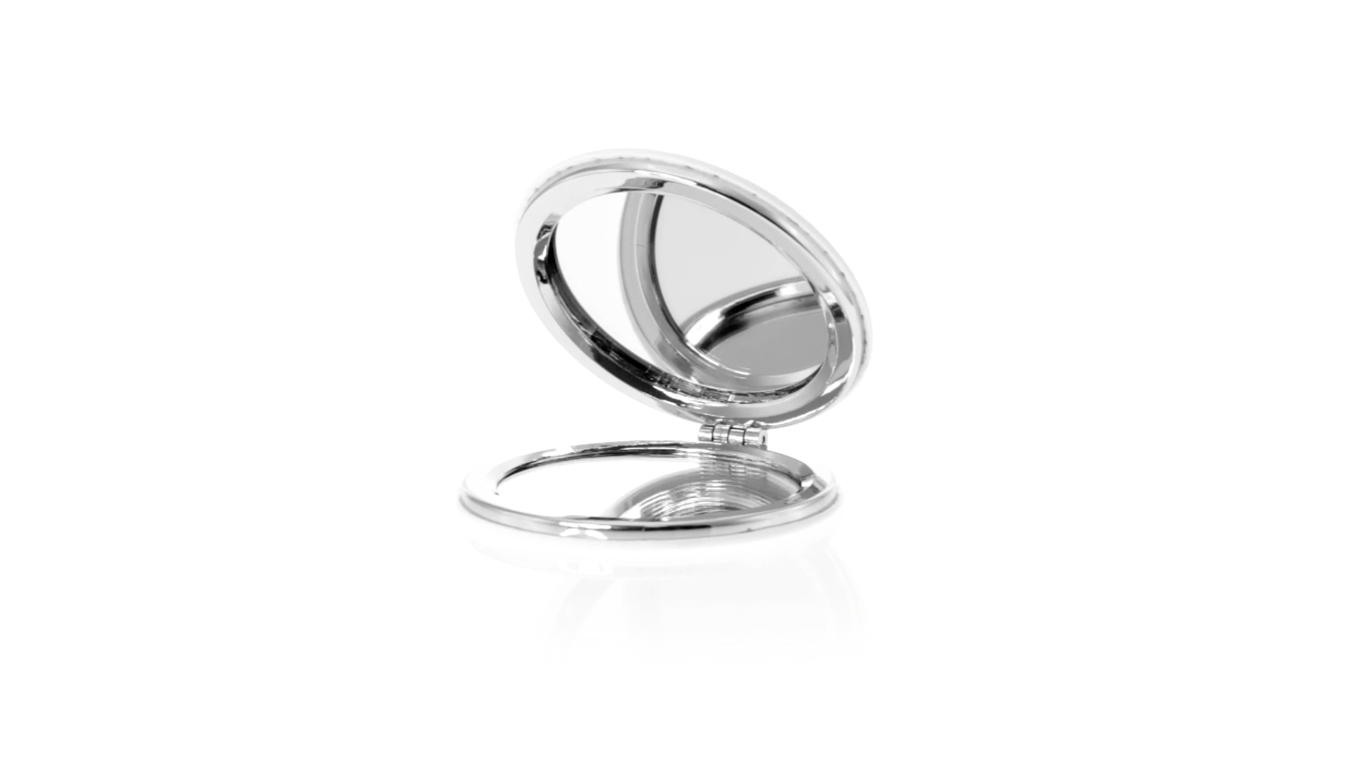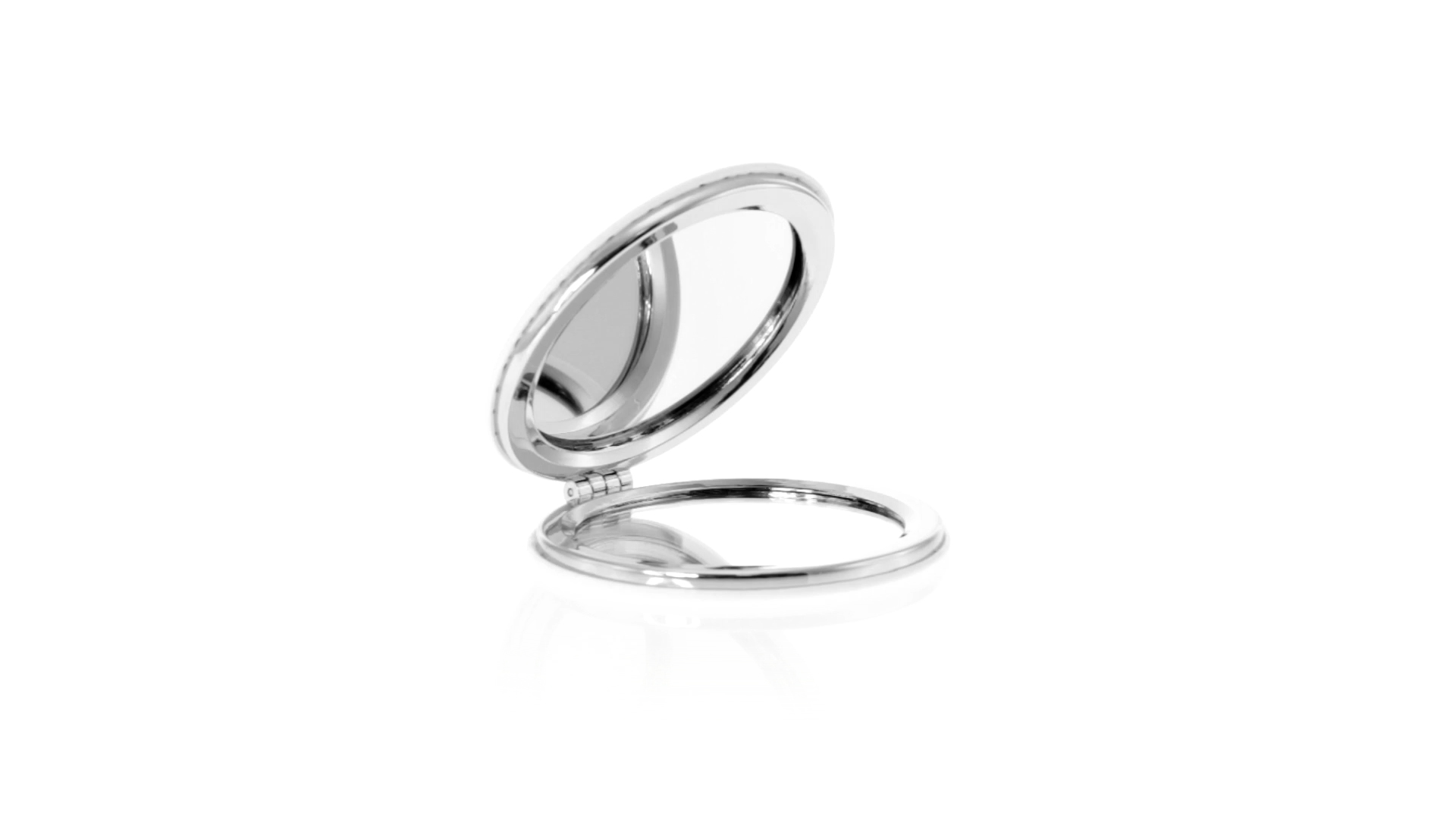 Klappspiegel in eleganter Kunstleder-Ausführung in Weiss. Mit zwei Innenspiegeln mit 1x und 2x Vergrösserung.