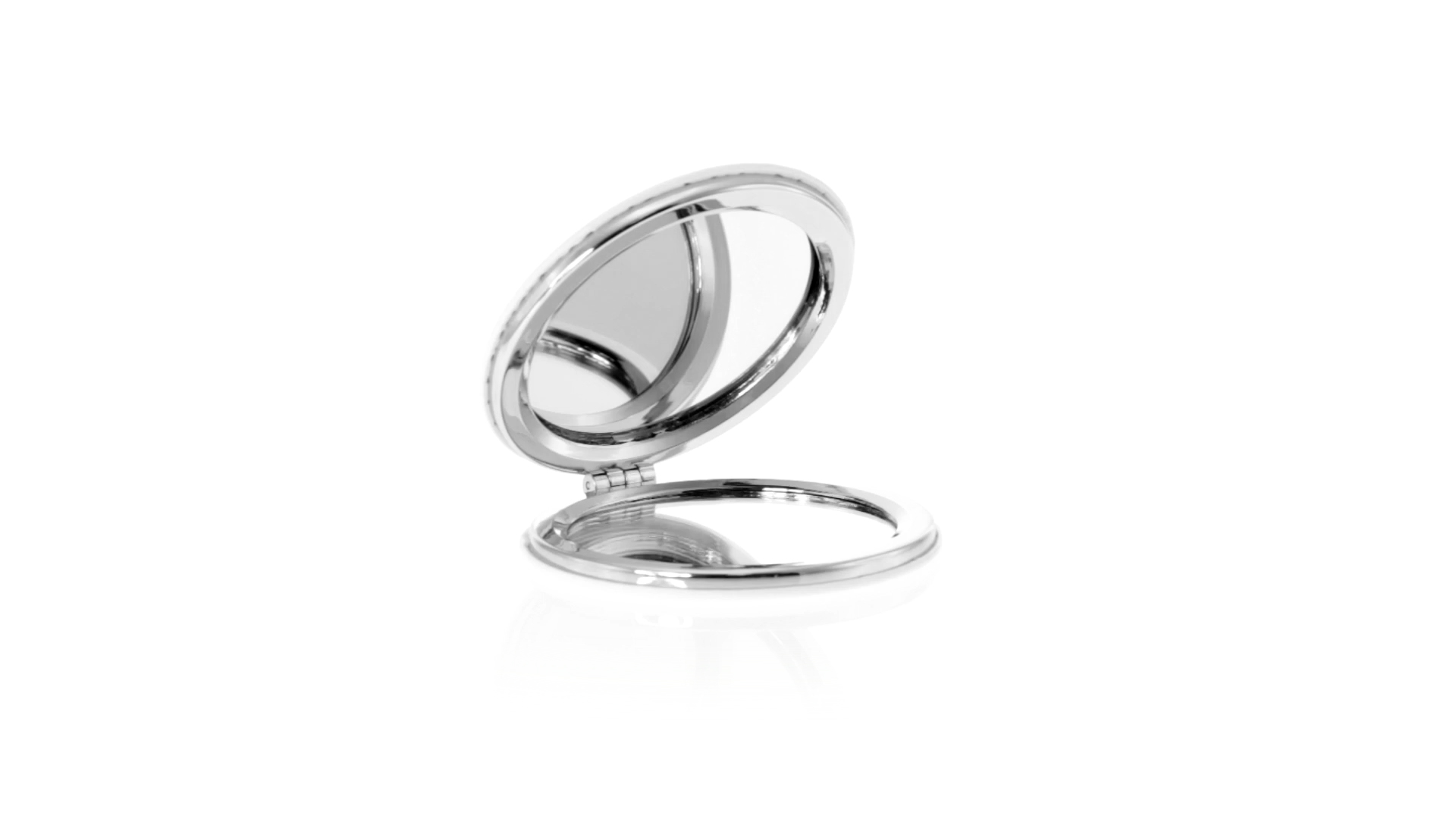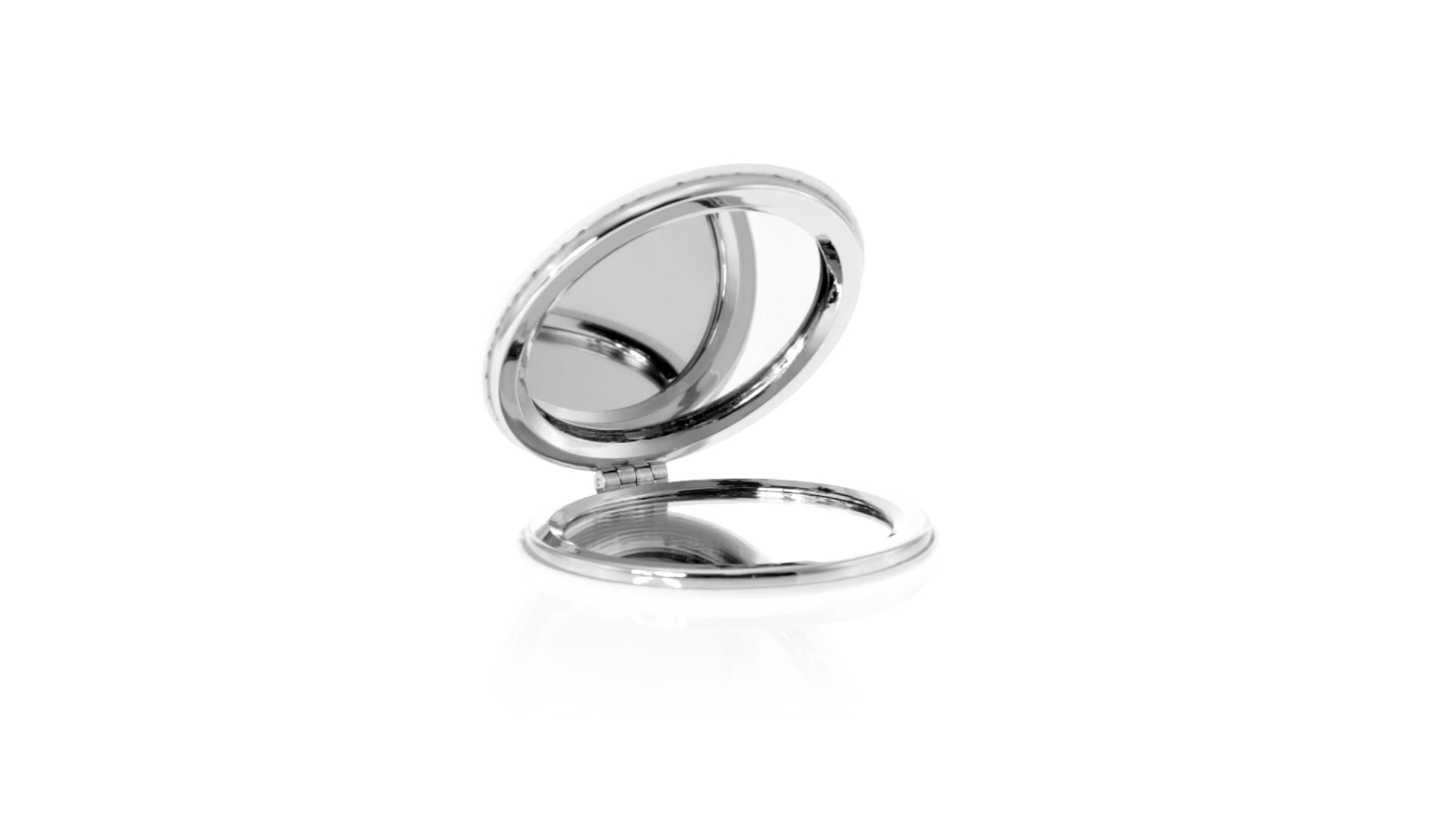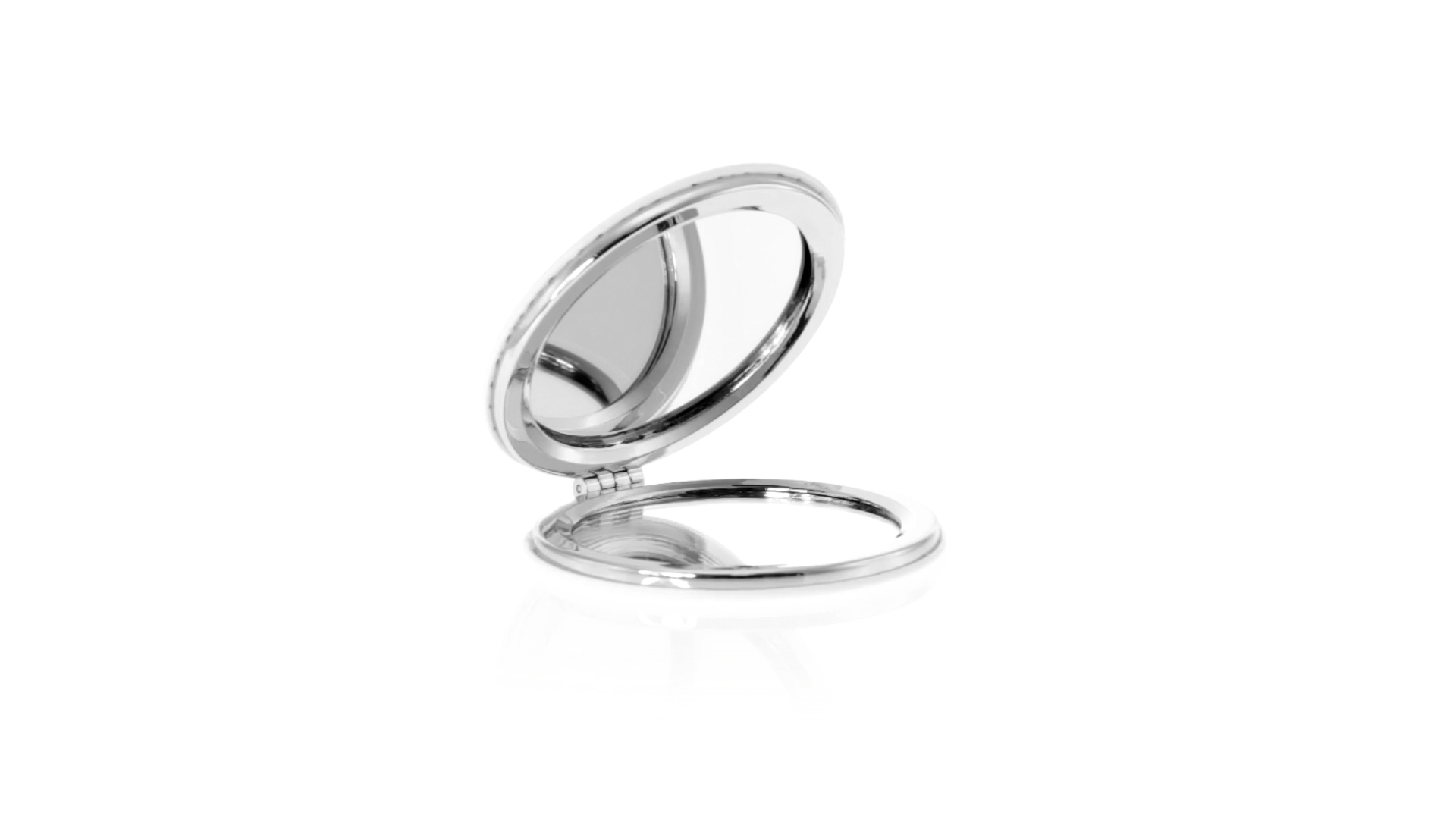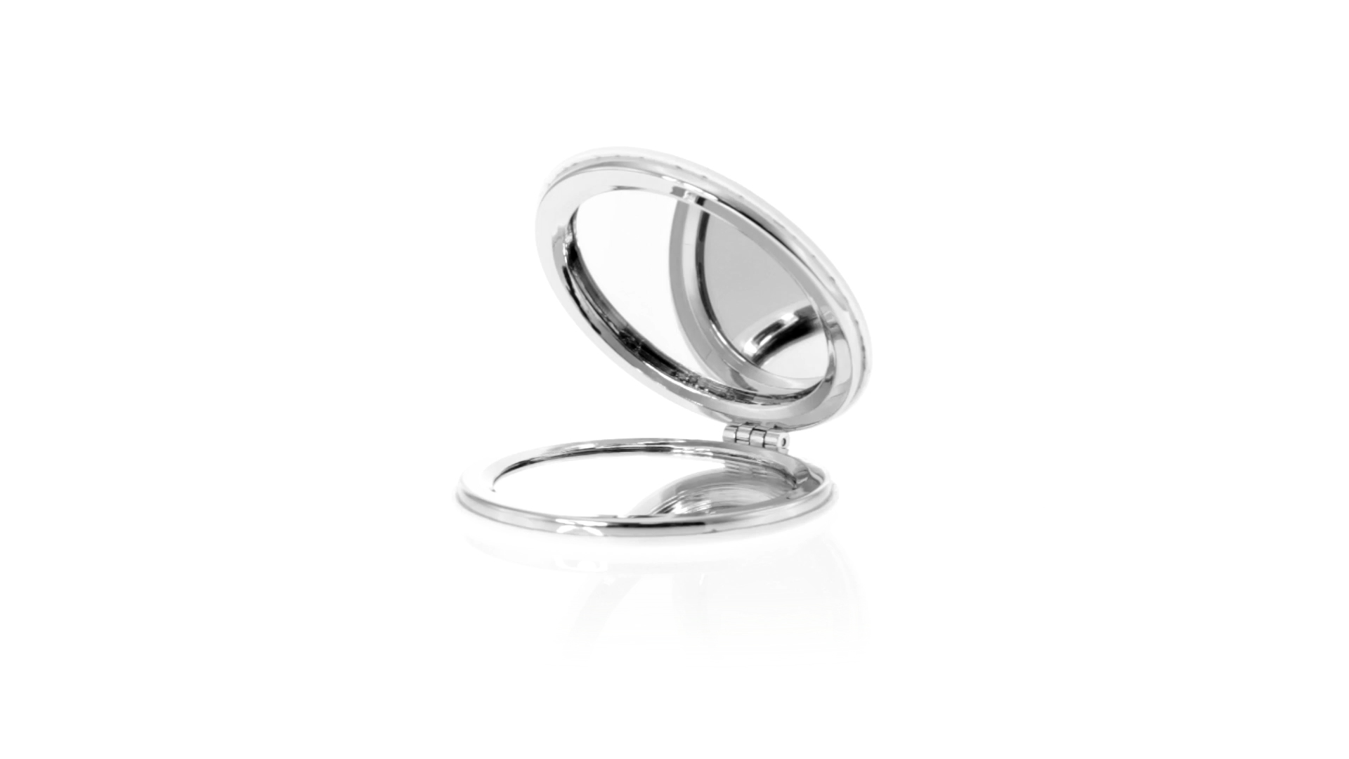 Klappspiegel in eleganter Kunstleder-Ausführung in Weiss. Mit zwei Innenspiegeln mit 1x und 2x Vergrösserung.