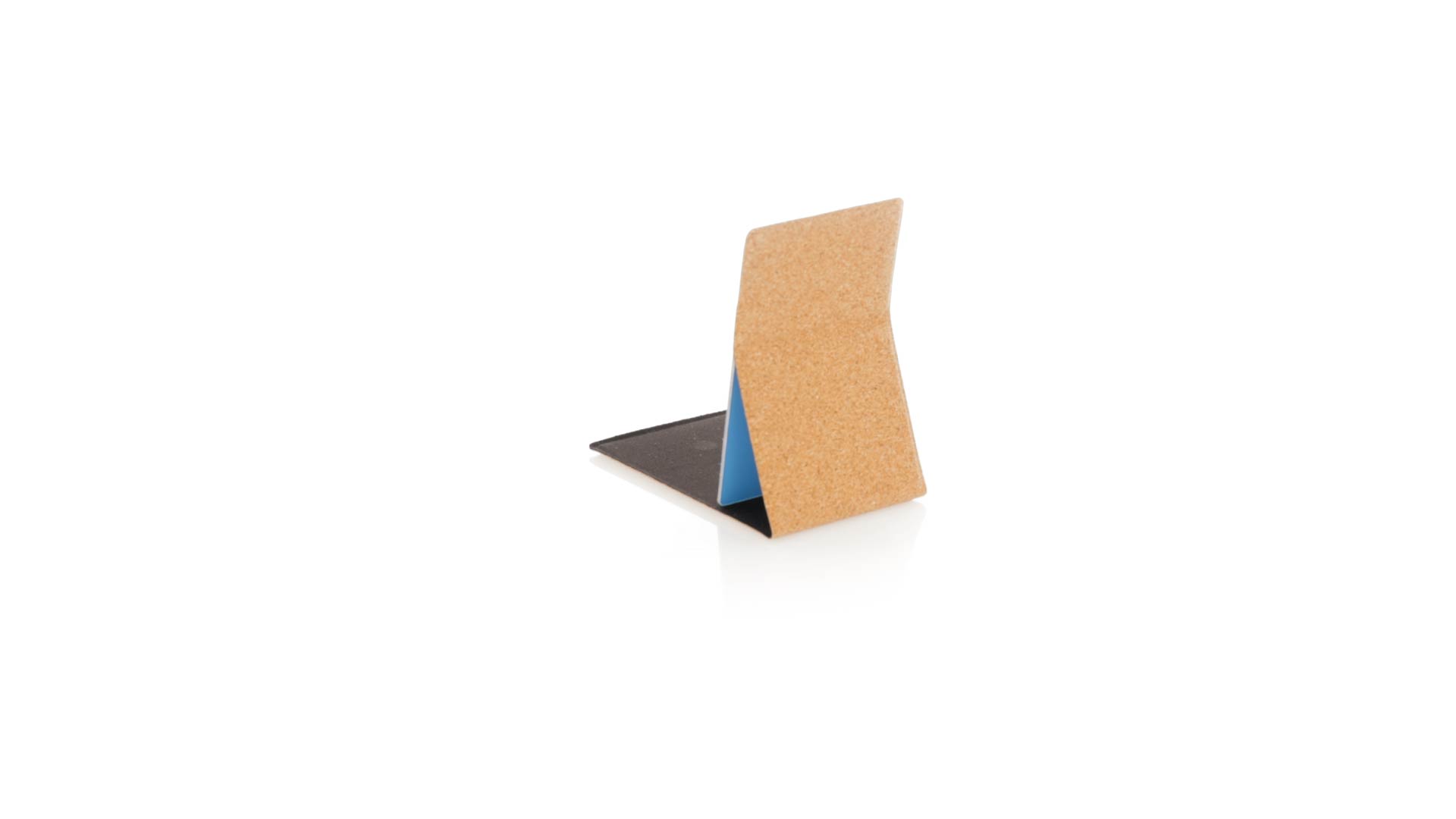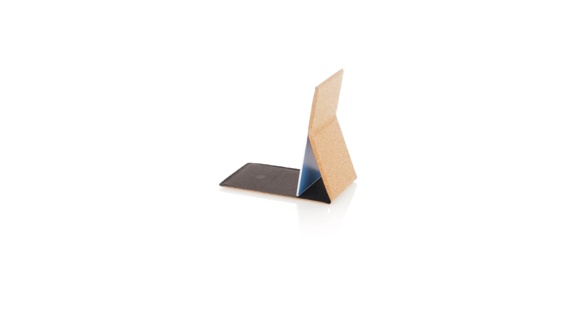 1X Klappspiegel aus Kork. Praktisch und tragbar, mit Schutzklappe für das Glas und Halterung für eine komfortable Nutzung. Präsentiert in einer individuellen Kraft-Designbox.