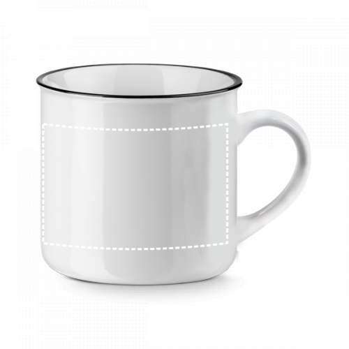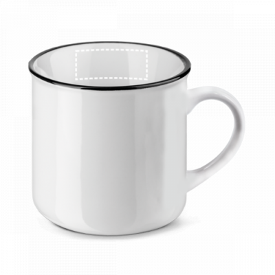Tasse aus Keramik (340 mL). Geliefert in einer Schachtel. Die Tasse ist Spülmaschinengeeignet und hält mindestens 125 Waschgänge (einschliesslich Bedruckung) gemäss EN12875-1 aus. ø88 x 84 mm | Schachtel: 112 x 94 x 91 mm