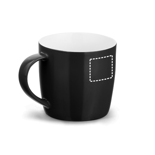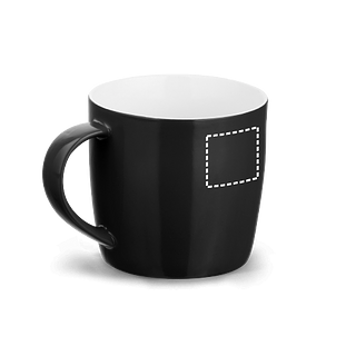 Tasse aus Keramik (370 mL). Geliefert in einer Schachtel. Die Tasse ist Spülmaschinengeeignet und hält mindestens 125 Waschgänge (einschliesslich Bedruckung) gemäss EN12875-1 aus. ø90 x 85 mm | Schachtel: 92 x 120 x 94 mm