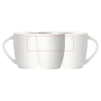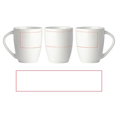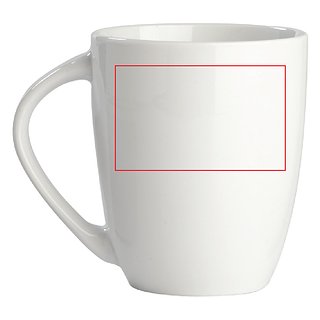 Weisser Porzellanbecher im bauchigem, konischen Design mit grossem Henkel. Ein Topseller unter den Bechern.