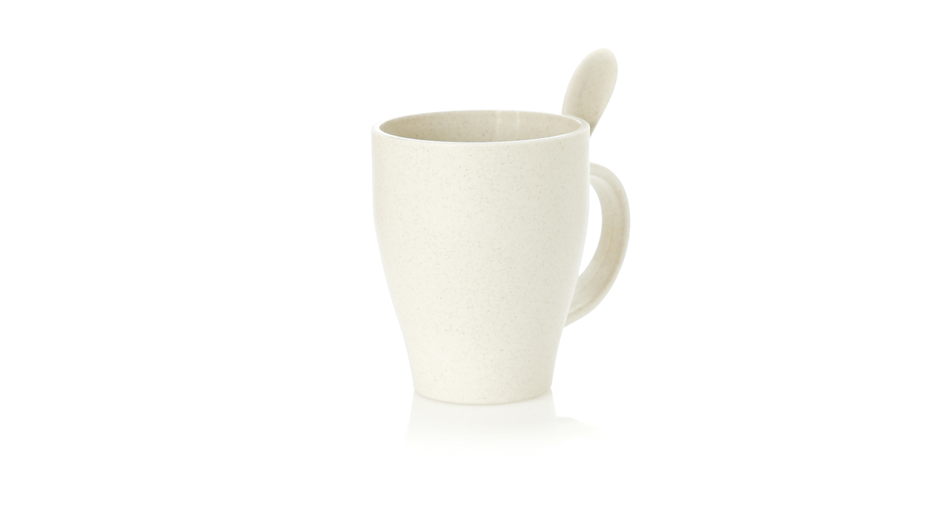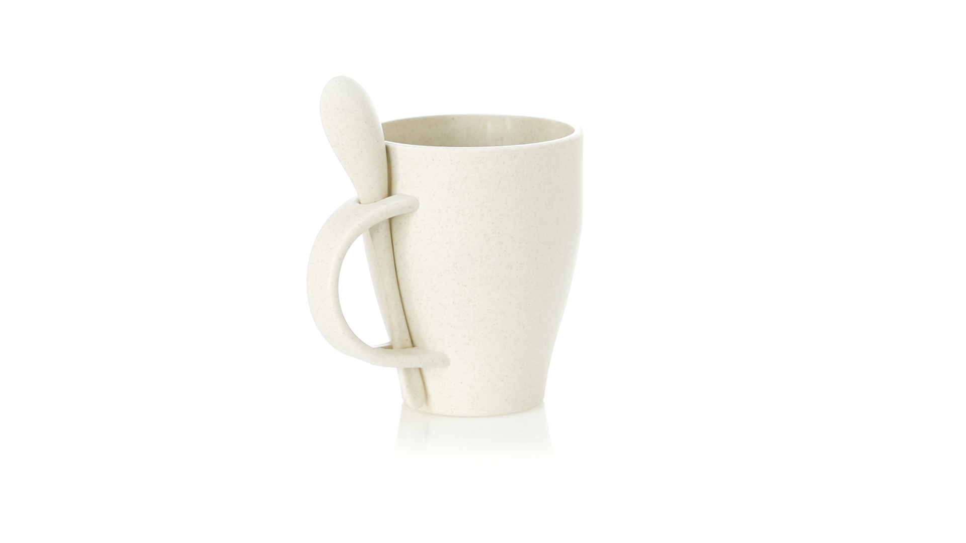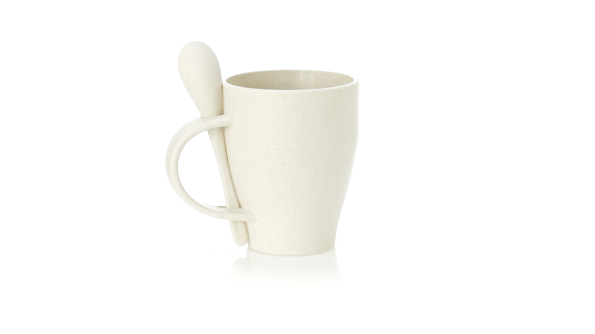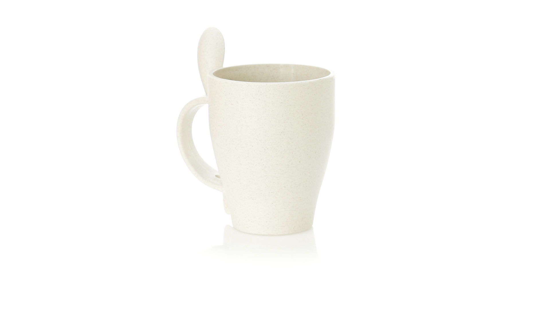 400 ml, Becher aus der Naturlinie. Aus Bambusfaser, mit passendem Löffel am Henkel integriert.