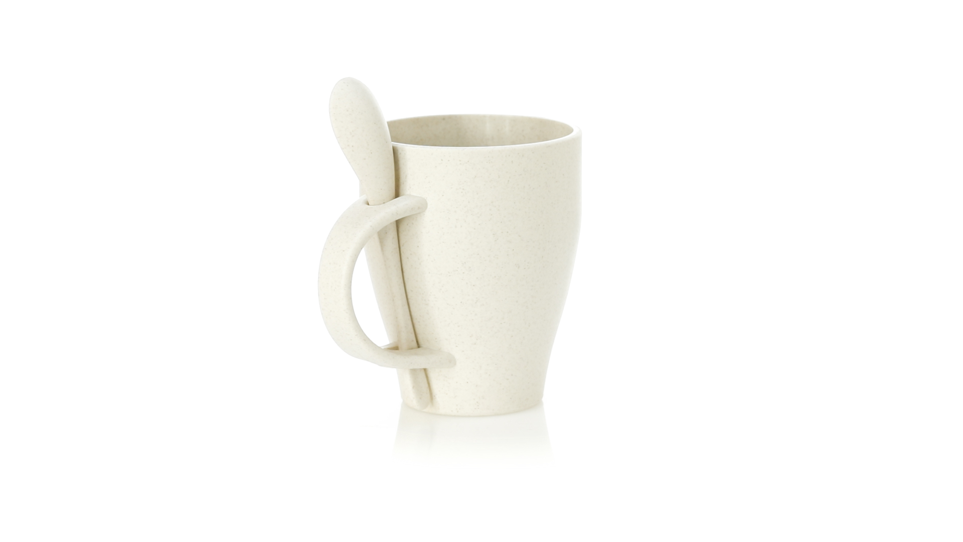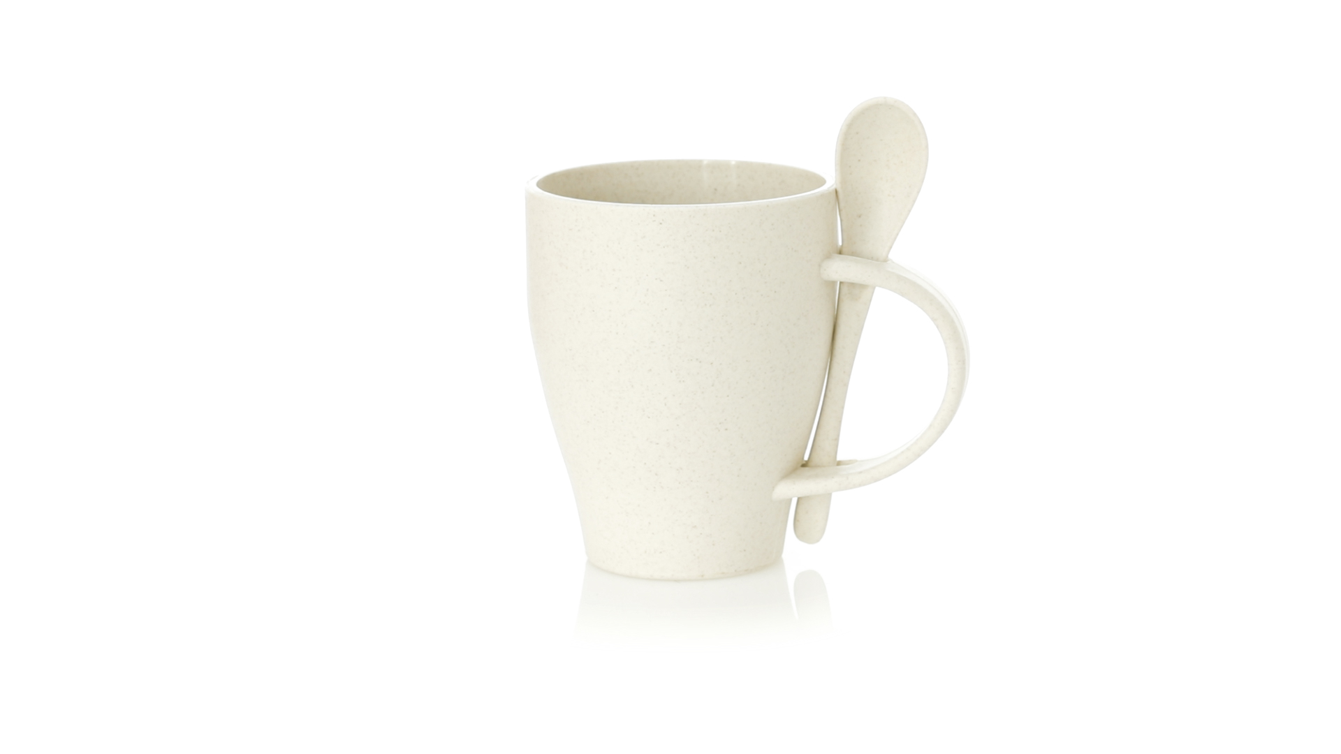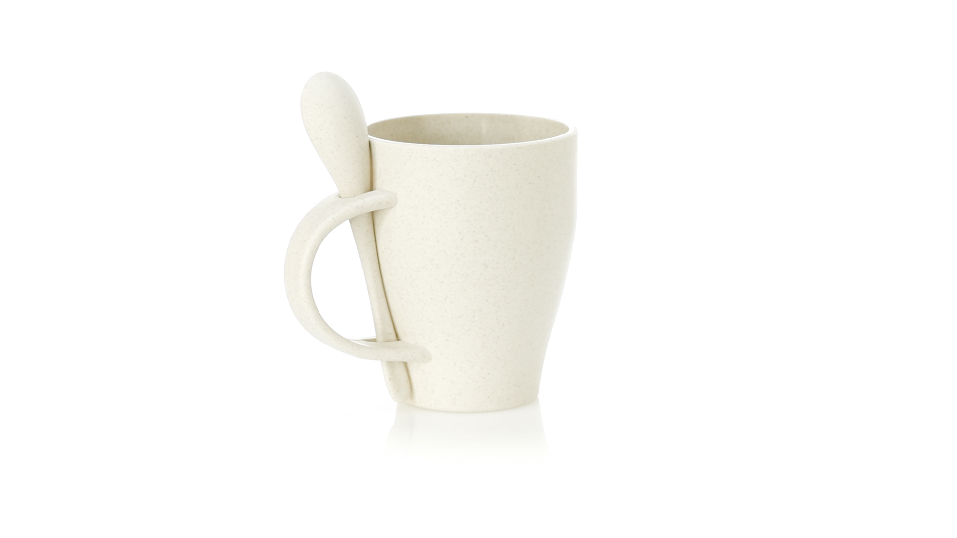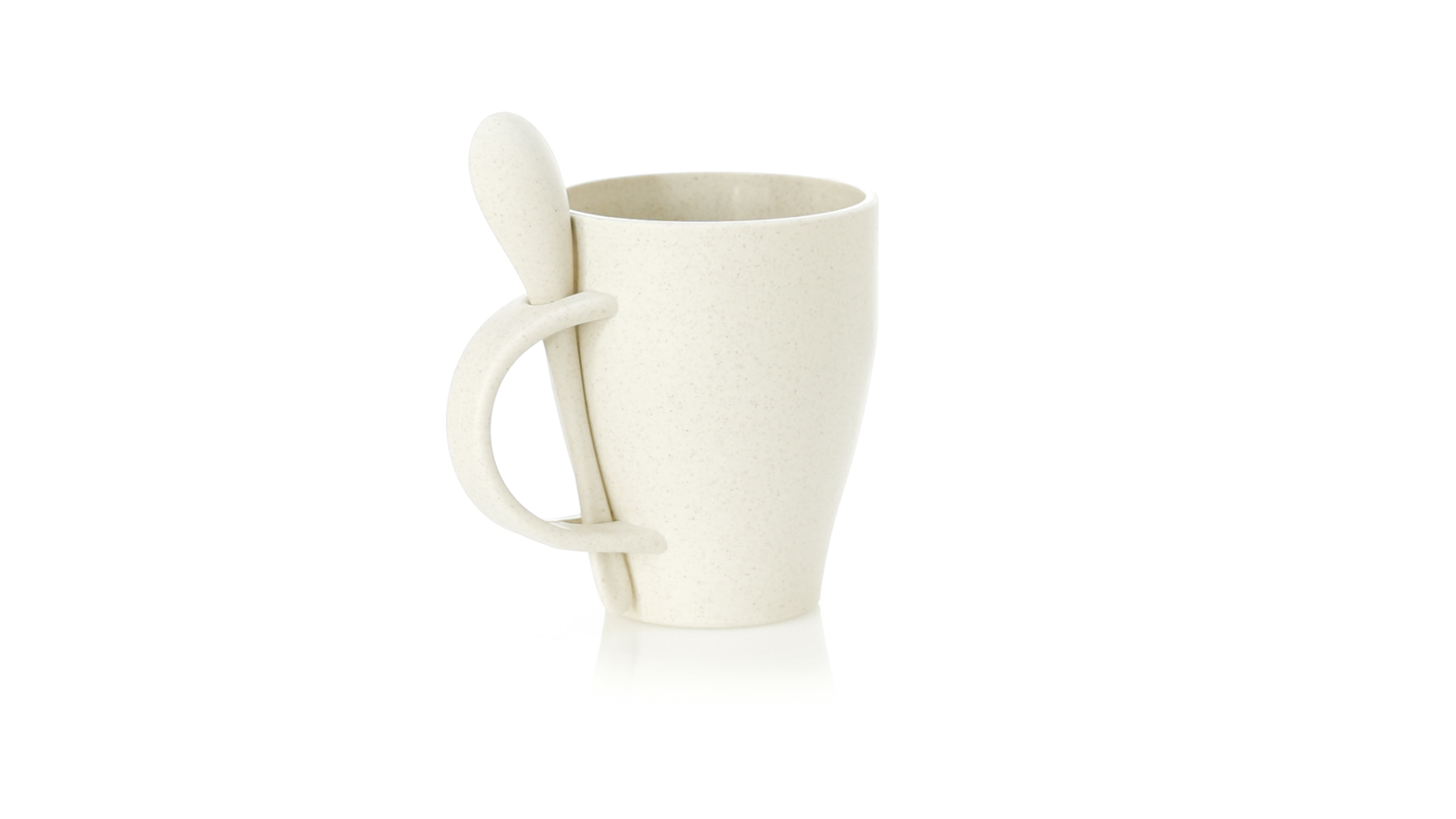 400 ml, Becher aus der Naturlinie. Aus Bambusfaser, mit passendem Löffel am Henkel integriert.