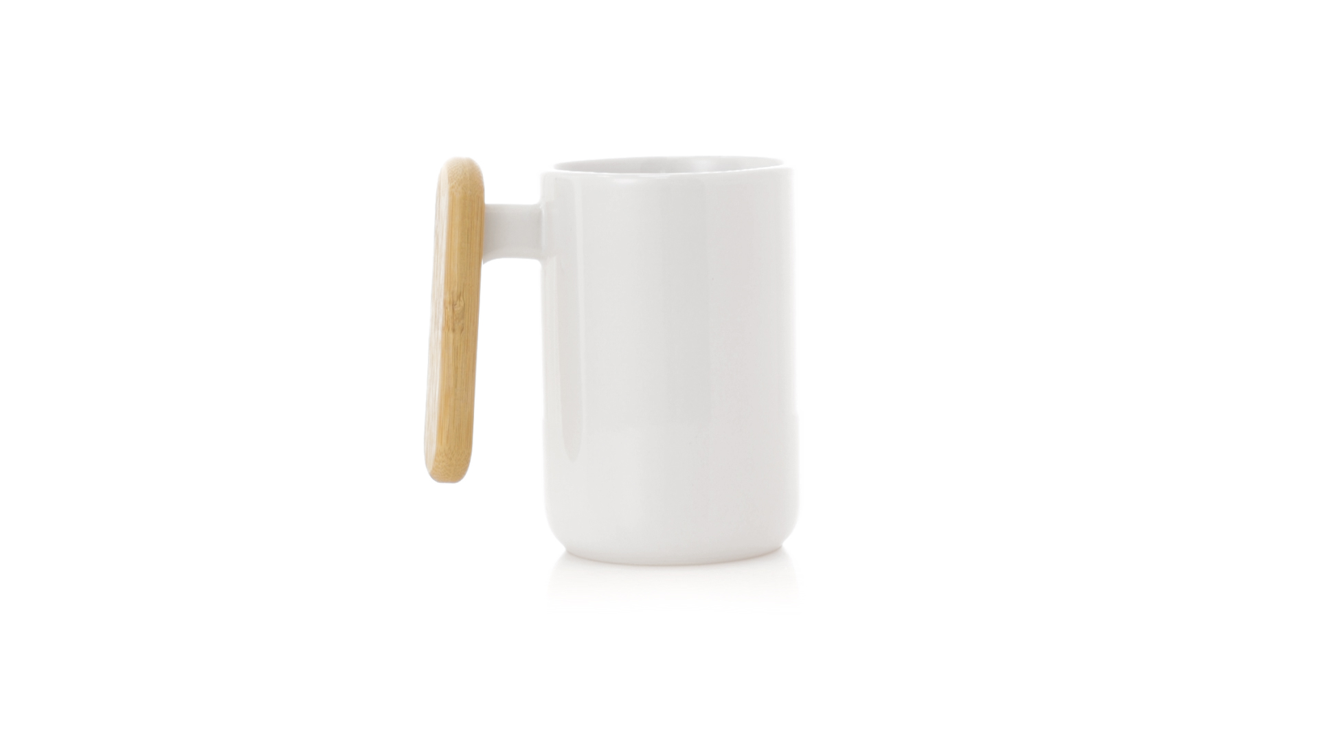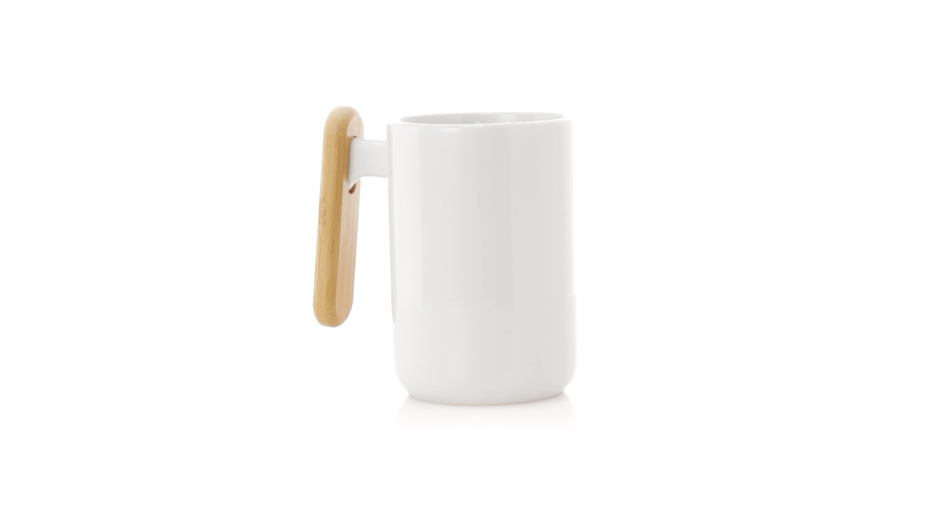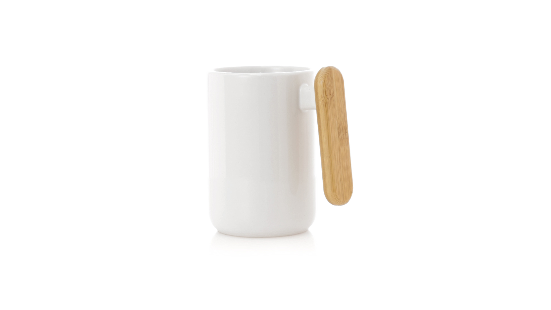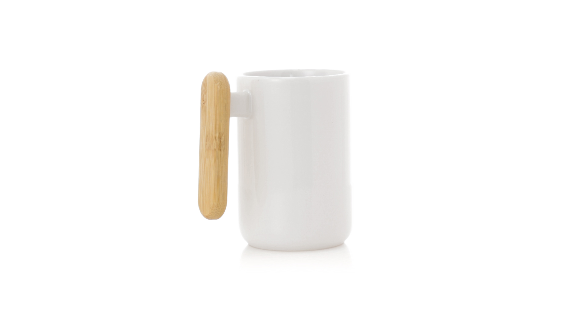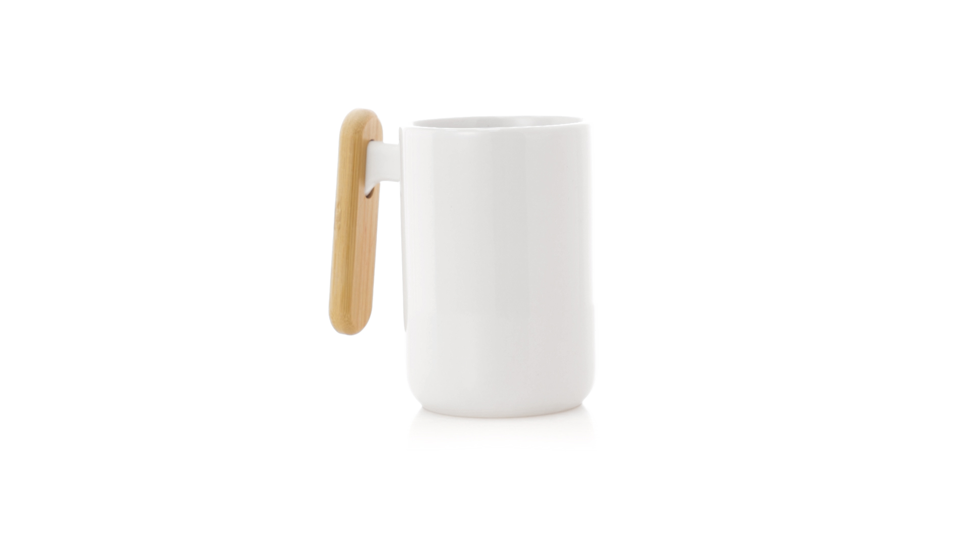 Keramikbecher mit 480 ml Fassungsvermögen, in elegantem Weiss. Ausgefallenes Design aus Keramik in Kombination mit einem Bambusgriff. Präsentiert in einer individuellen Kraftbox.Materialien wie Bambus fördern die Verwendung von natürlichen Rohstoffen und reduzieren die Schadstoffemissionen. Es handelt sich um eine sehr widerstandsfähige und vielseitige Pflanze, die schnell wächst und sich regeneriert und somit eine hervorragende Alternative zur Verwendung von traditionellem Holz darstellt.