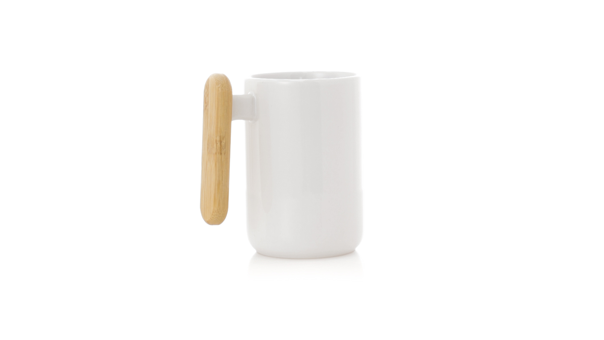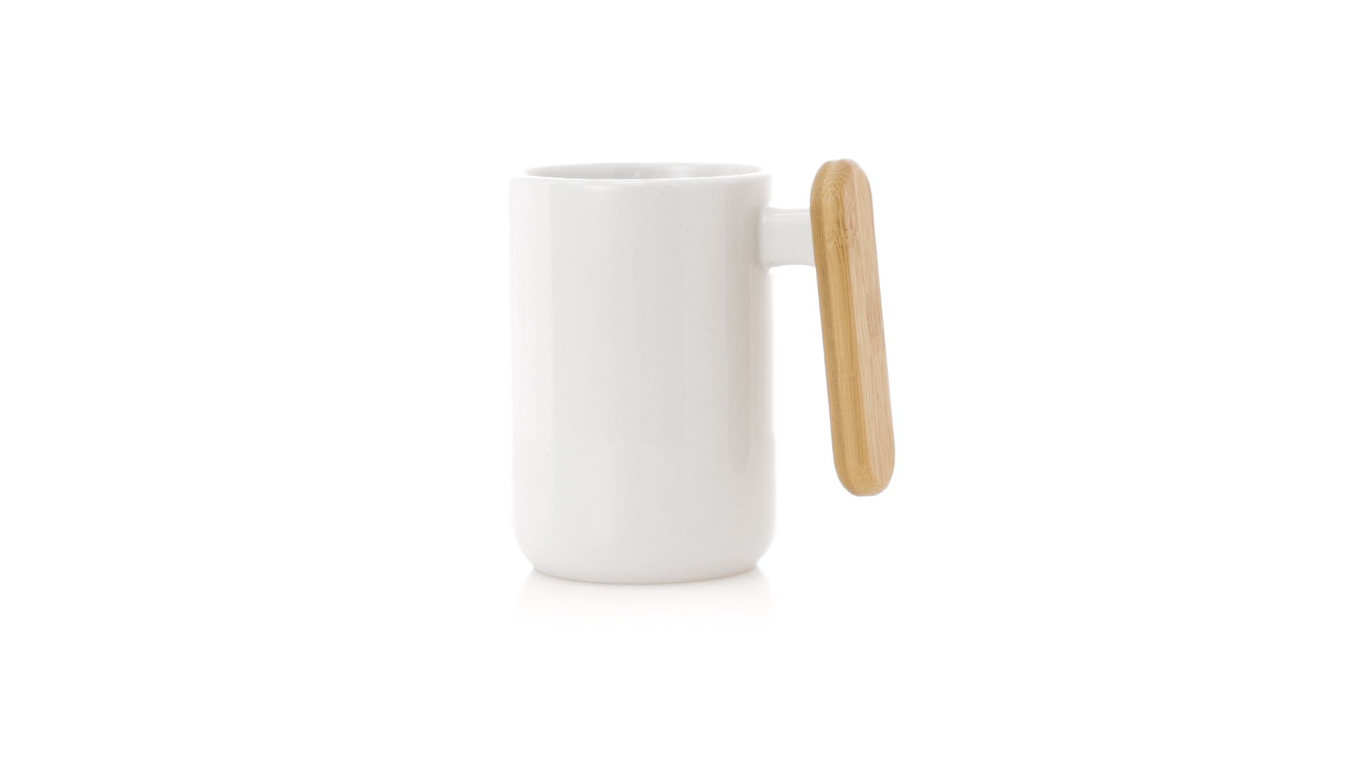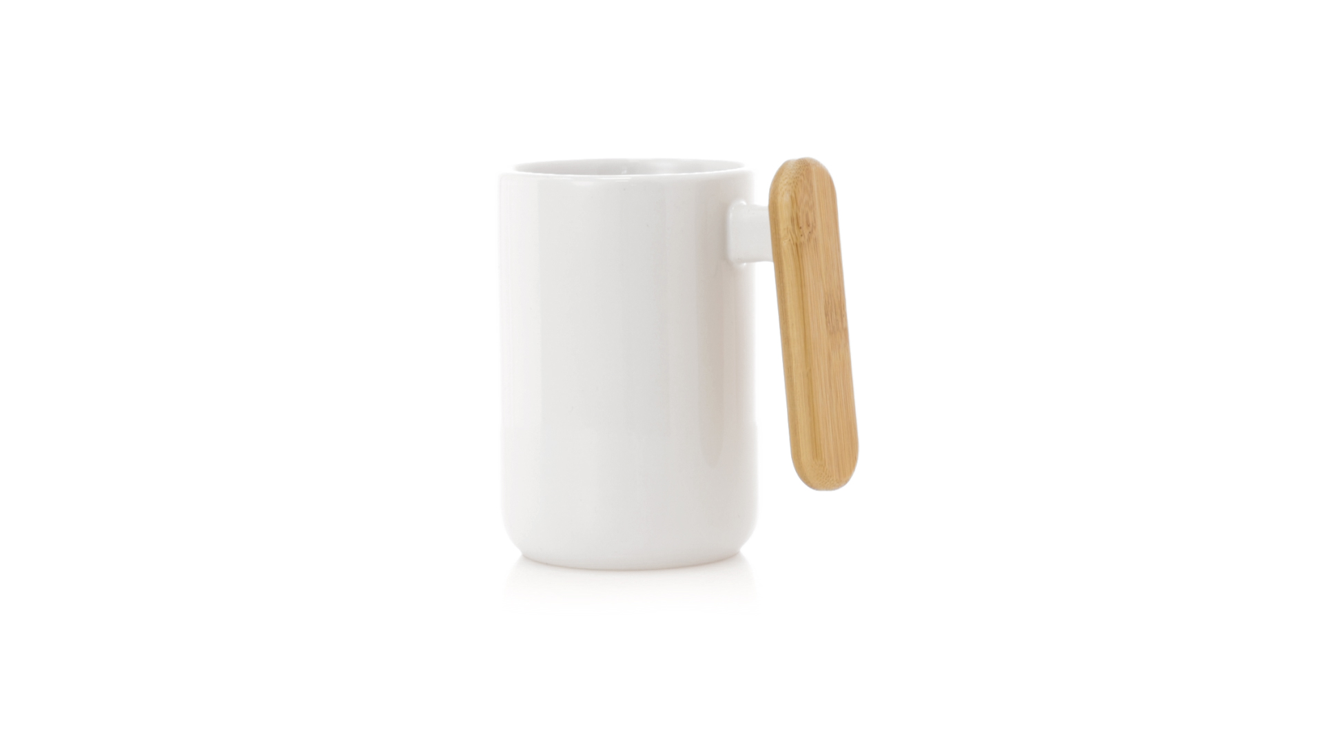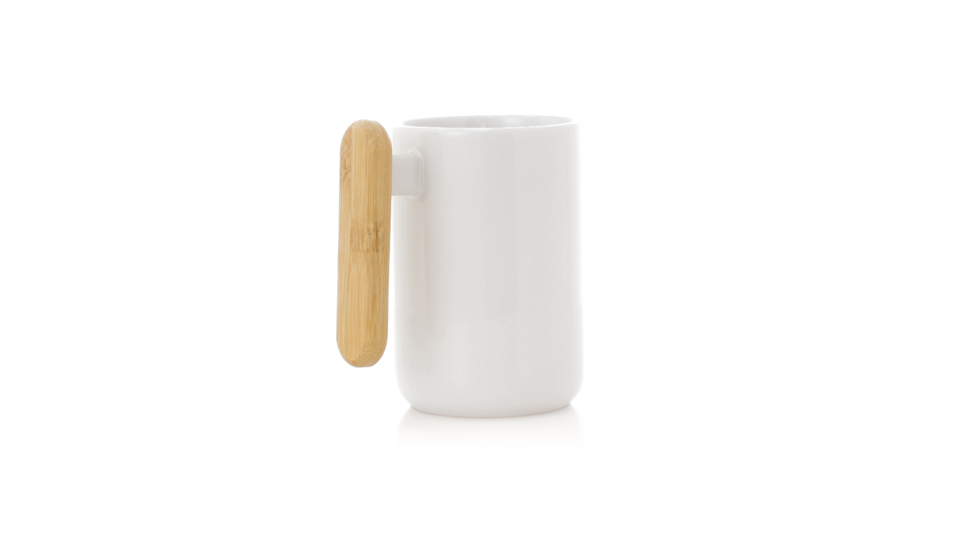 Keramikbecher mit 480 ml Fassungsvermögen, in elegantem Weiss. Ausgefallenes Design aus Keramik in Kombination mit einem Bambusgriff. Präsentiert in einer individuellen Kraftbox.Materialien wie Bambus fördern die Verwendung von natürlichen Rohstoffen und reduzieren die Schadstoffemissionen. Es handelt sich um eine sehr widerstandsfähige und vielseitige Pflanze, die schnell wächst und sich regeneriert und somit eine hervorragende Alternative zur Verwendung von traditionellem Holz darstellt.