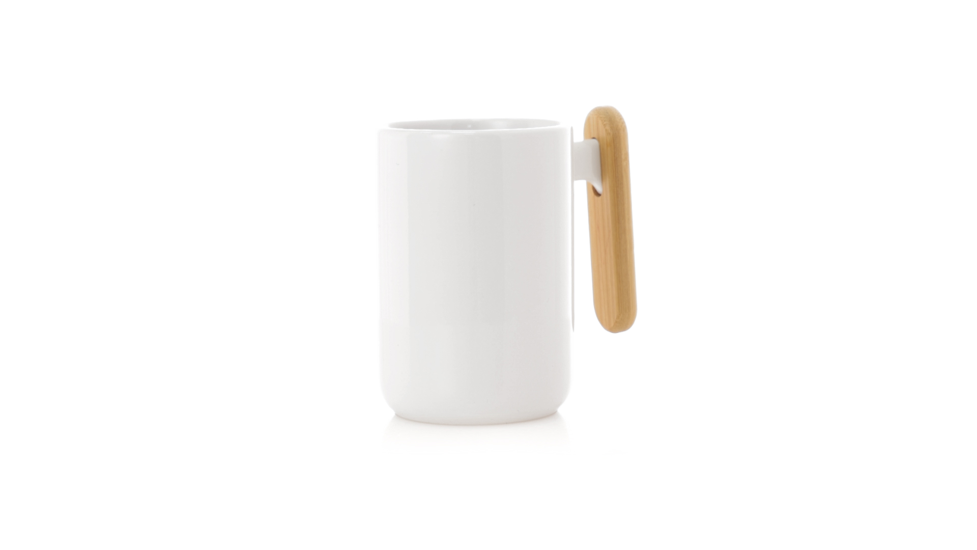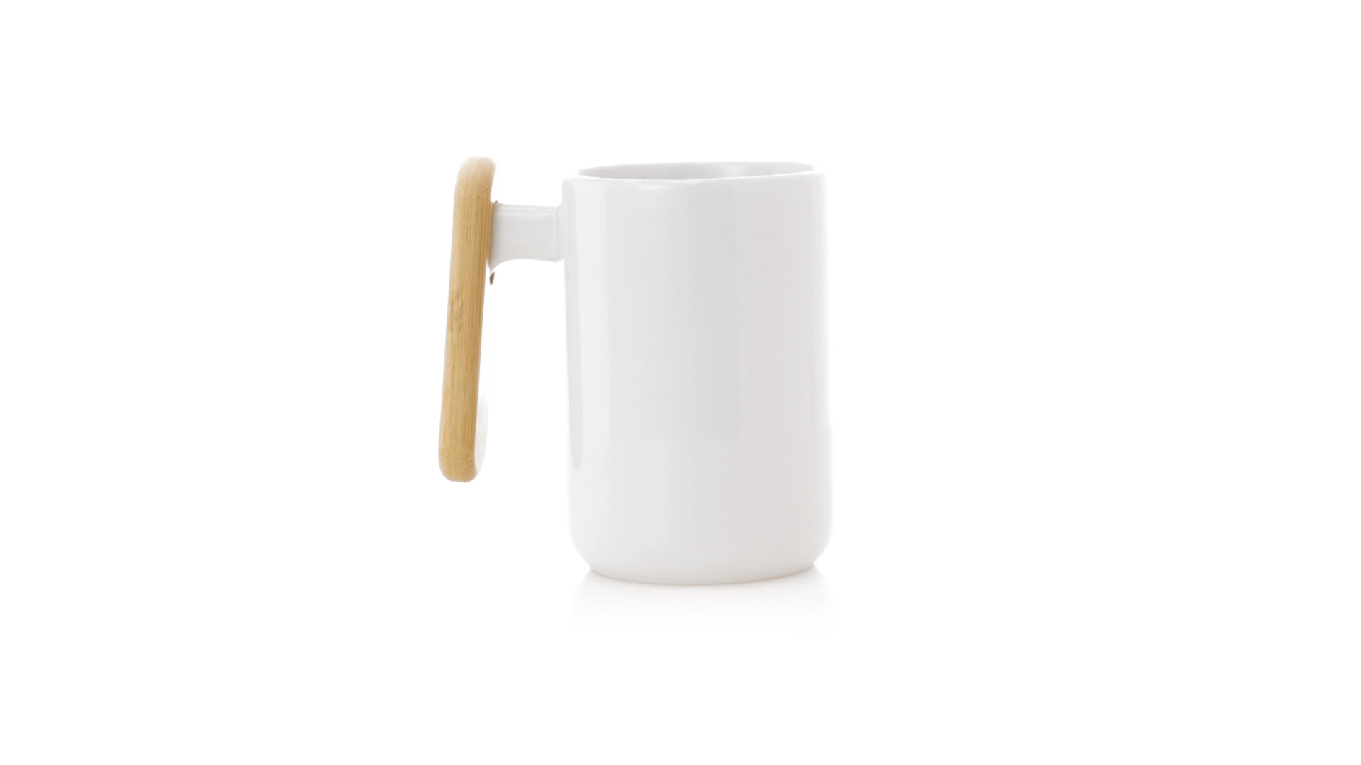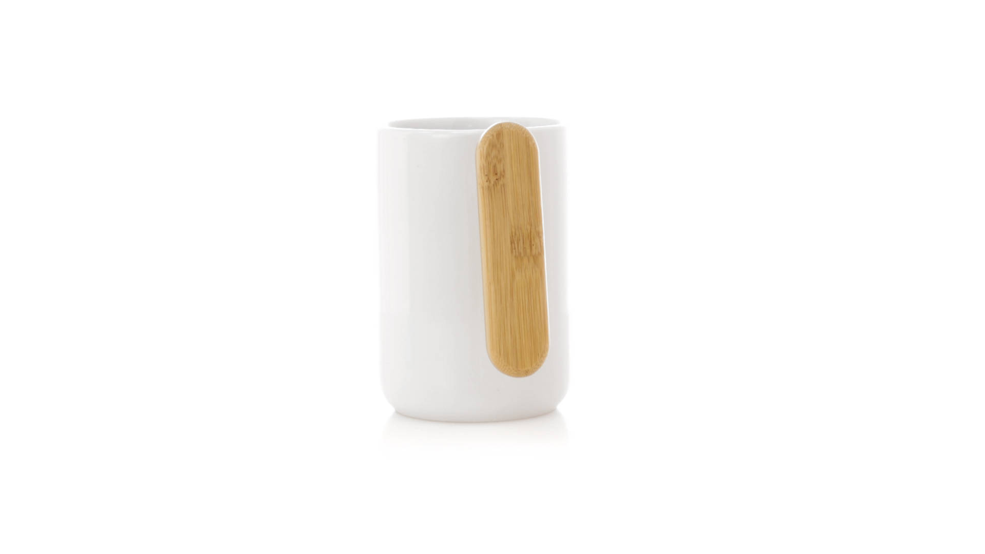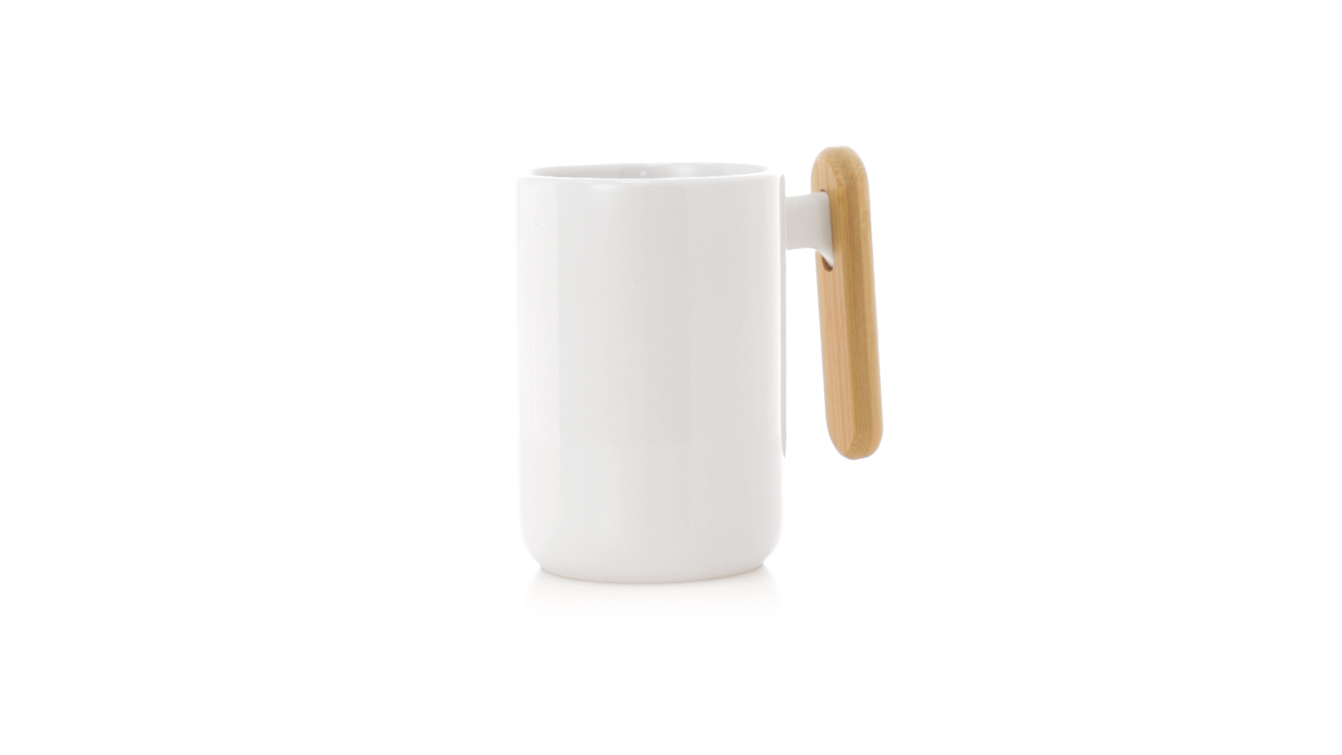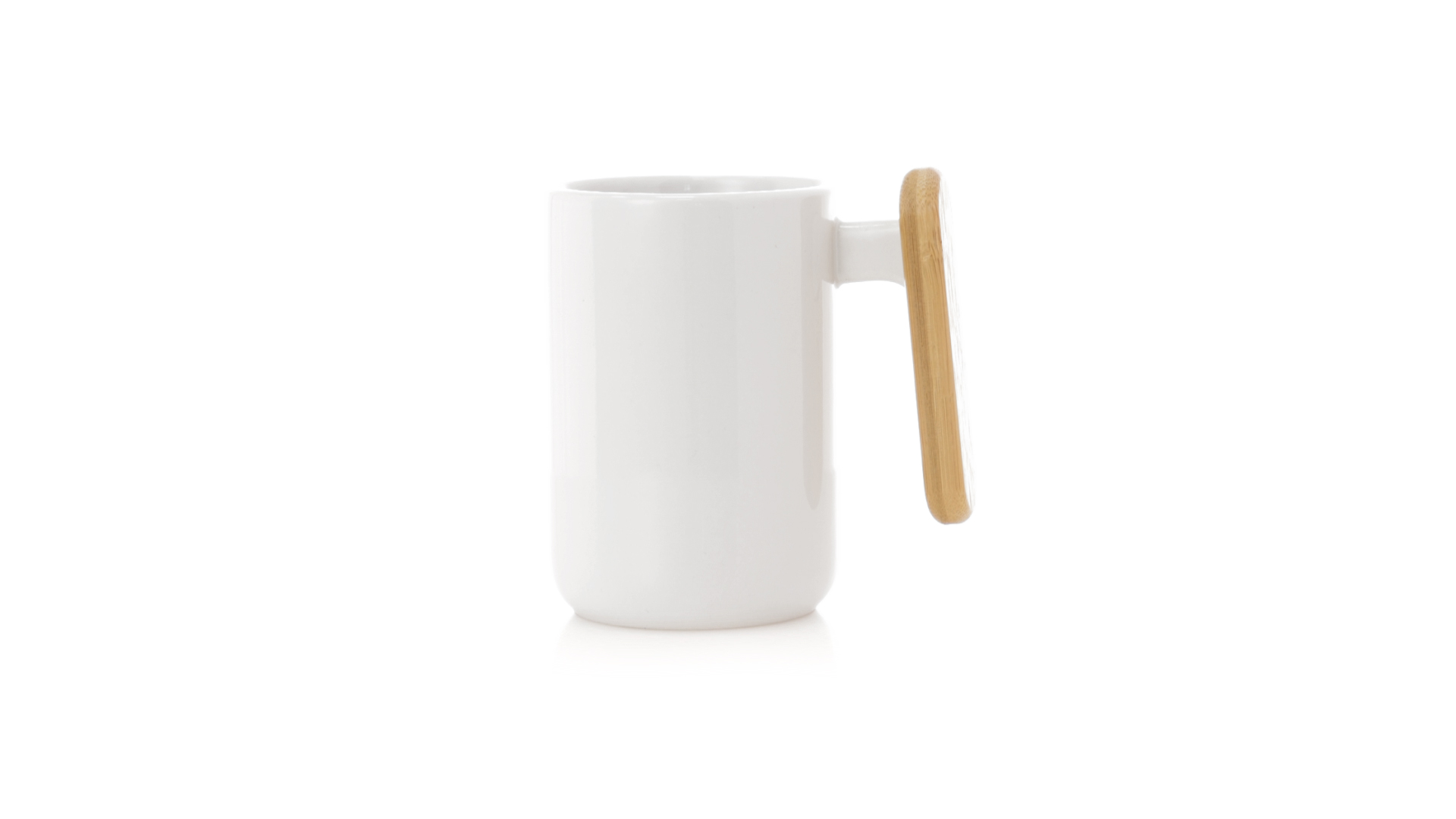 Keramikbecher mit 480 ml Fassungsvermögen, in elegantem Weiss. Ausgefallenes Design aus Keramik in Kombination mit einem Bambusgriff. Präsentiert in einer individuellen Kraftbox.Materialien wie Bambus fördern die Verwendung von natürlichen Rohstoffen und reduzieren die Schadstoffemissionen. Es handelt sich um eine sehr widerstandsfähige und vielseitige Pflanze, die schnell wächst und sich regeneriert und somit eine hervorragende Alternative zur Verwendung von traditionellem Holz darstellt.