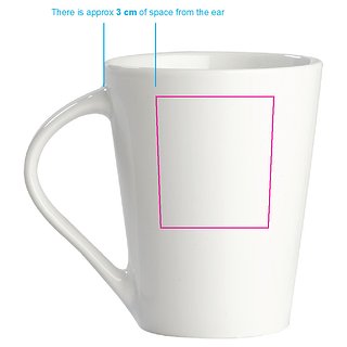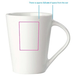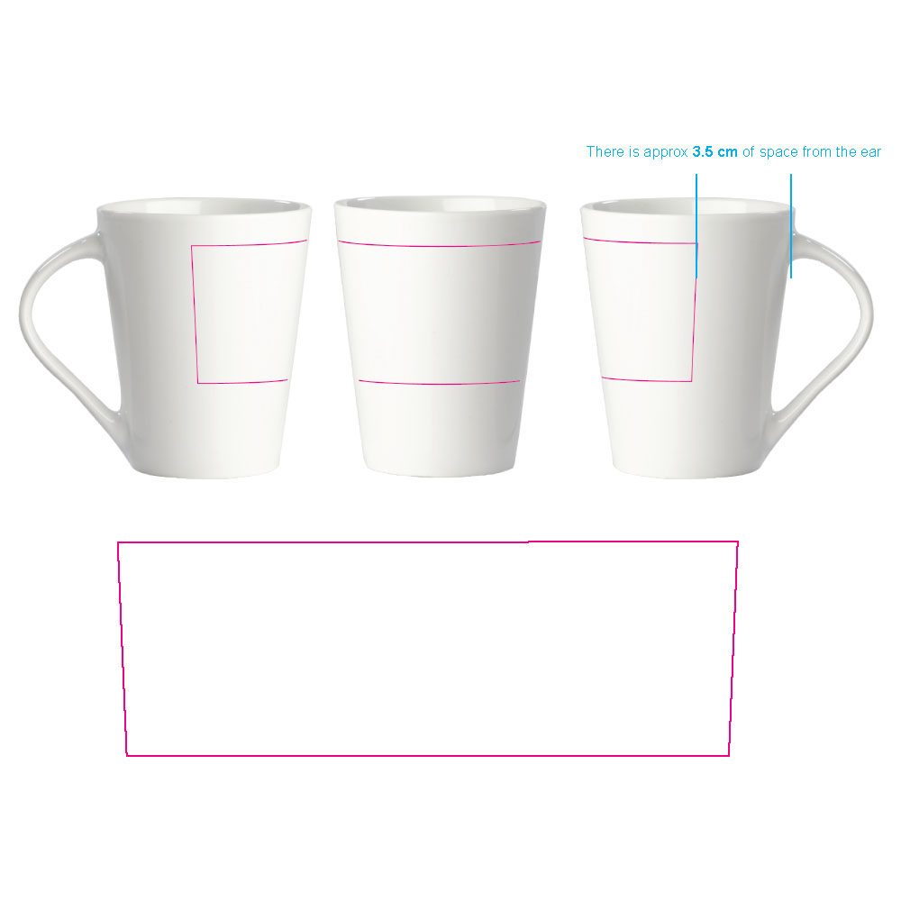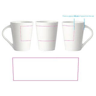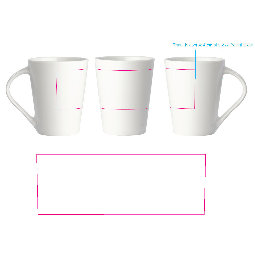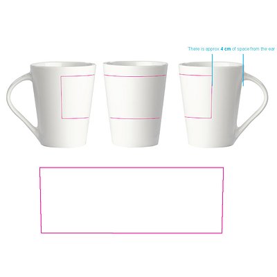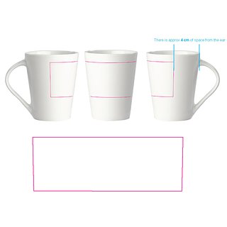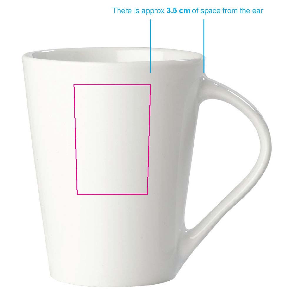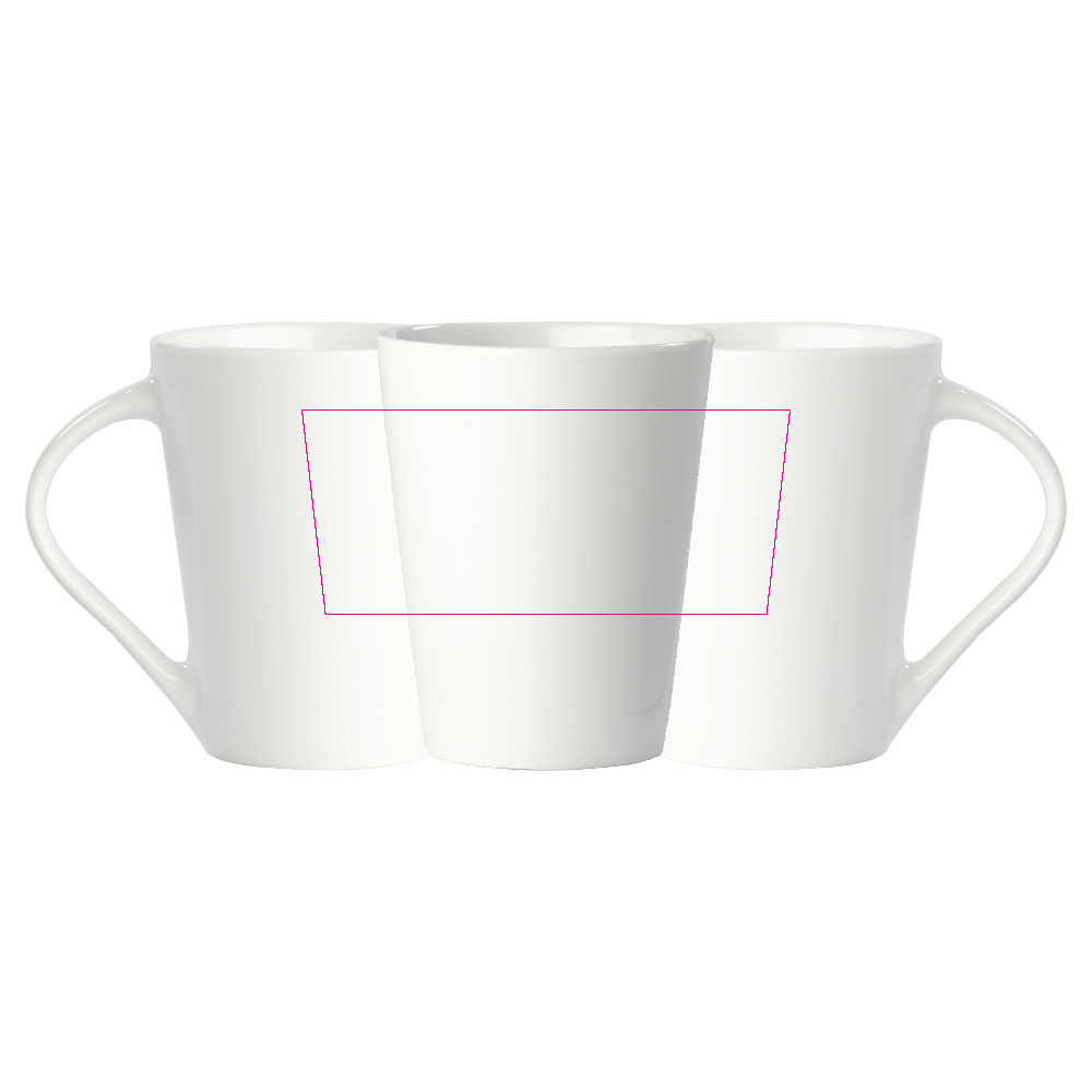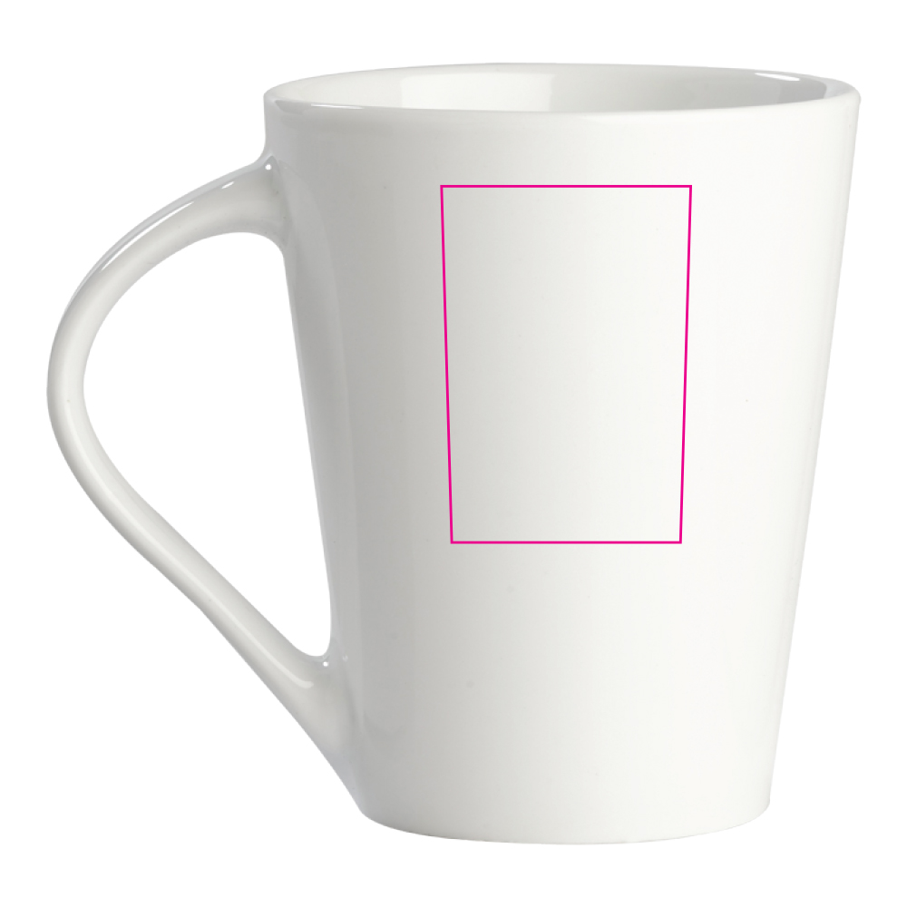 Hochwertiger weisser Porzellanbecher. Die originale Variante der Nice - Made in Europe. Konisches Modell mit grosser Druckfläche.