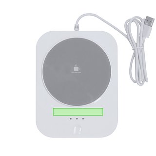 Becherwärmer mit integriertem 15W-Schnelllade-Kabelgerät. Mit einem 370-ml-Keramikbecher, speziell dafür entwickelt, das Getränk zu erwärmen und die Temperatur zu halten, mit passendem Deckel. Enthält ein USB-Ladekabel.