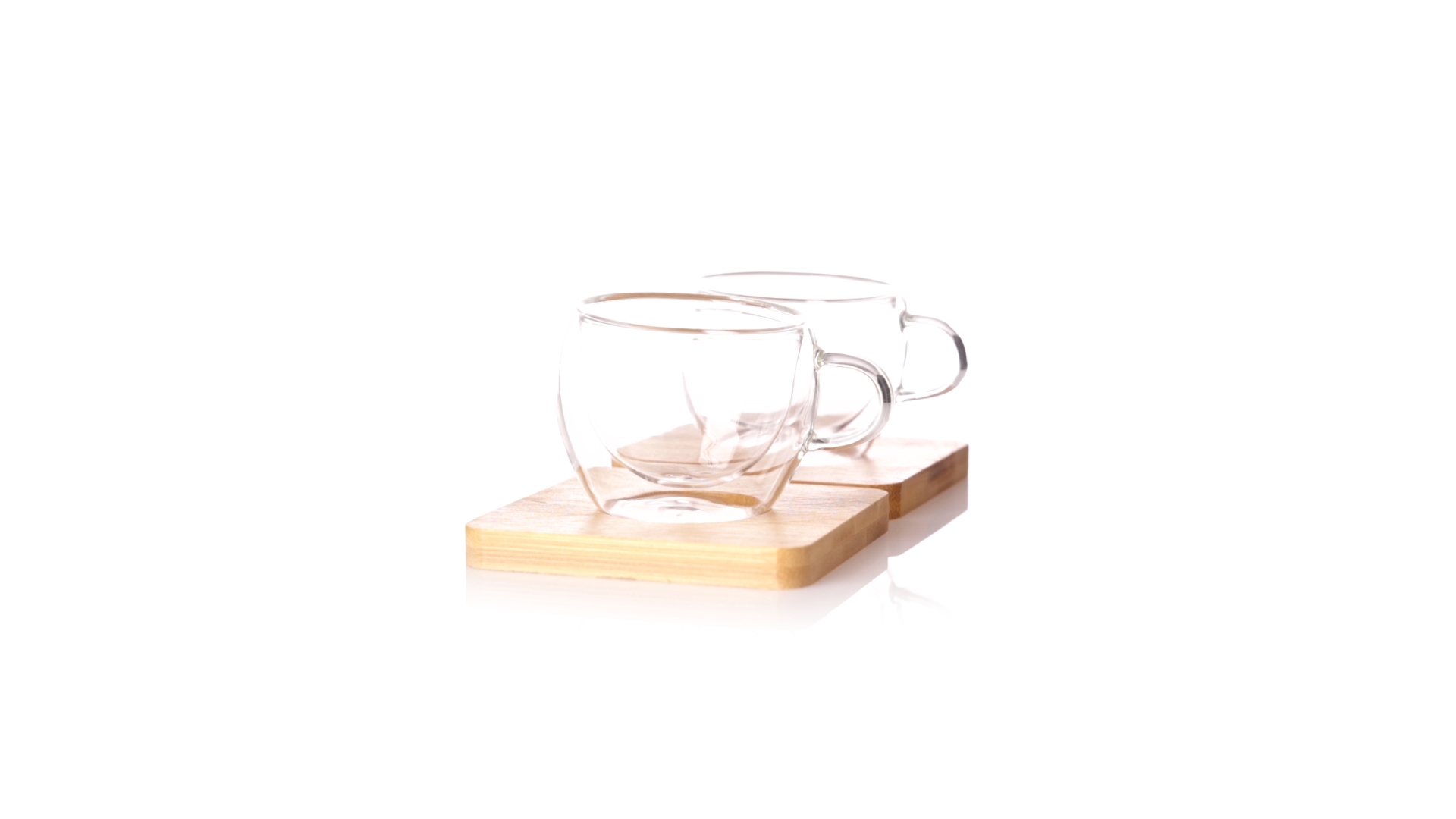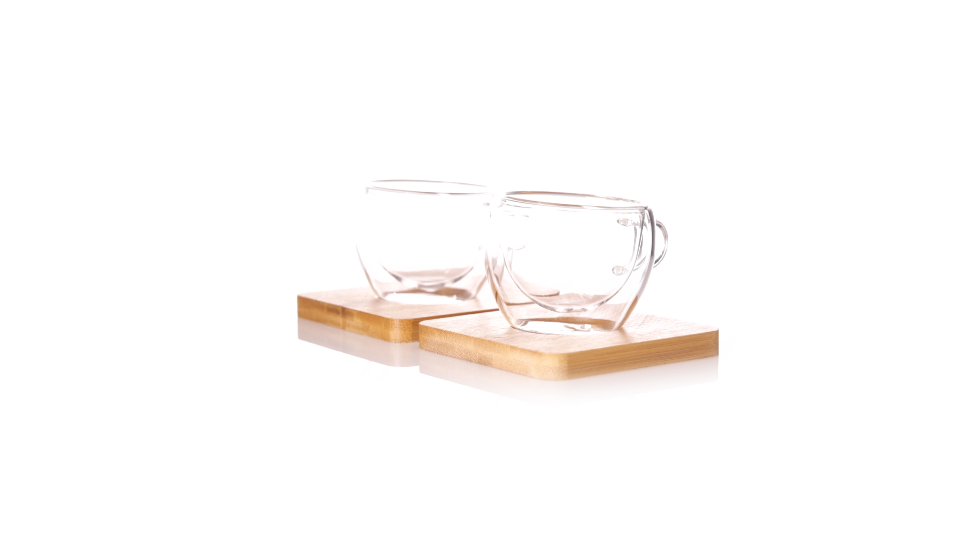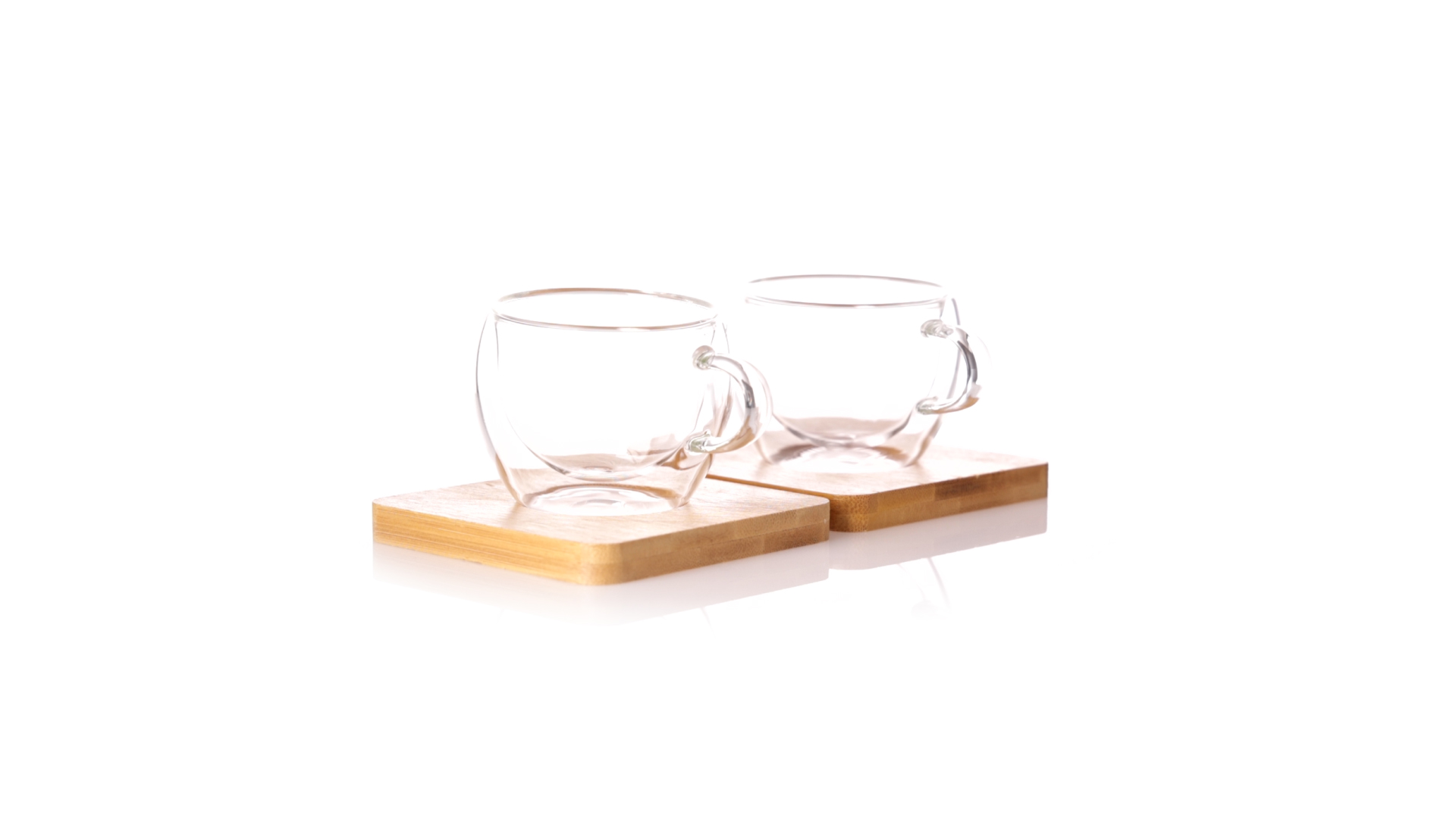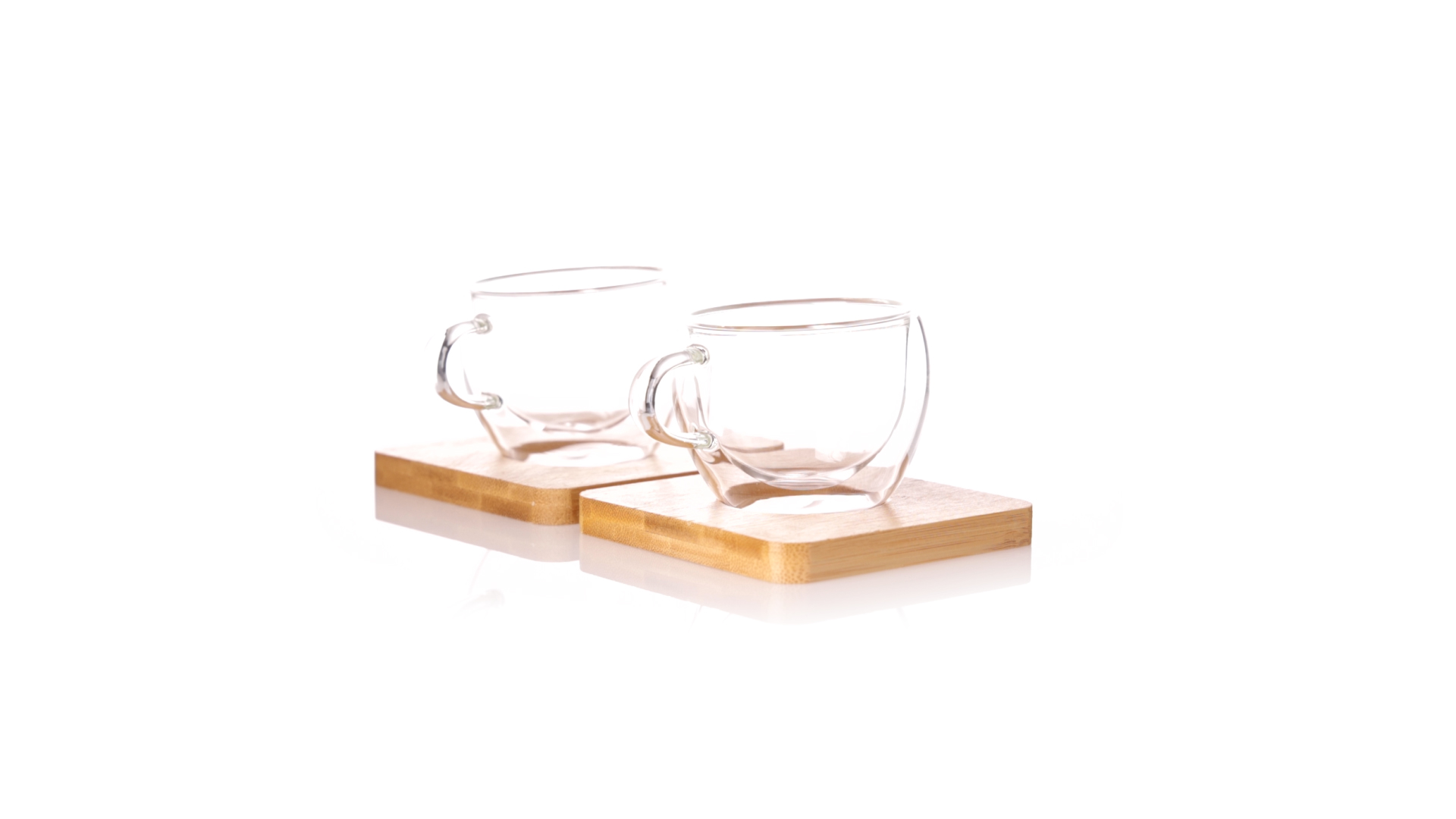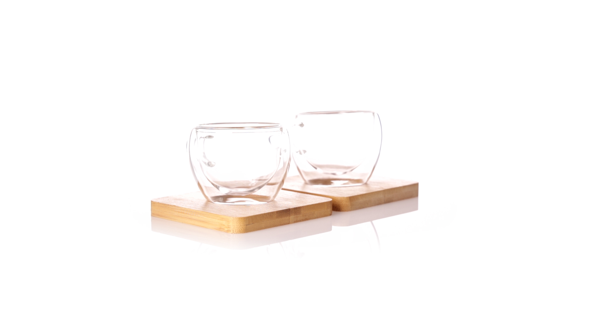 Set aus 2 doppelwandigen Bechern mit einem Fassungsvermögen von 60 ml. Hergestellt aus Borosilikatglas, das eine aussergewöhnliche Festigkeit und Haltbarkeit bietet, seine Lebensdauer verlängert und unzählige Male wiederverwendet werden kann. Inklusive 2 Untersetzer aus Bambus, die mit einer Stanzung im Boden versehen sind, damit sie perfekt auf jede Tasse passen. Das Set wird in einem Design-Etui aus Kraftkarton präsentiert, das für jede Tasse ein eigenes Fach enthält.Gebrauchsanweisung in Englisch und Spanisch erhältlich.