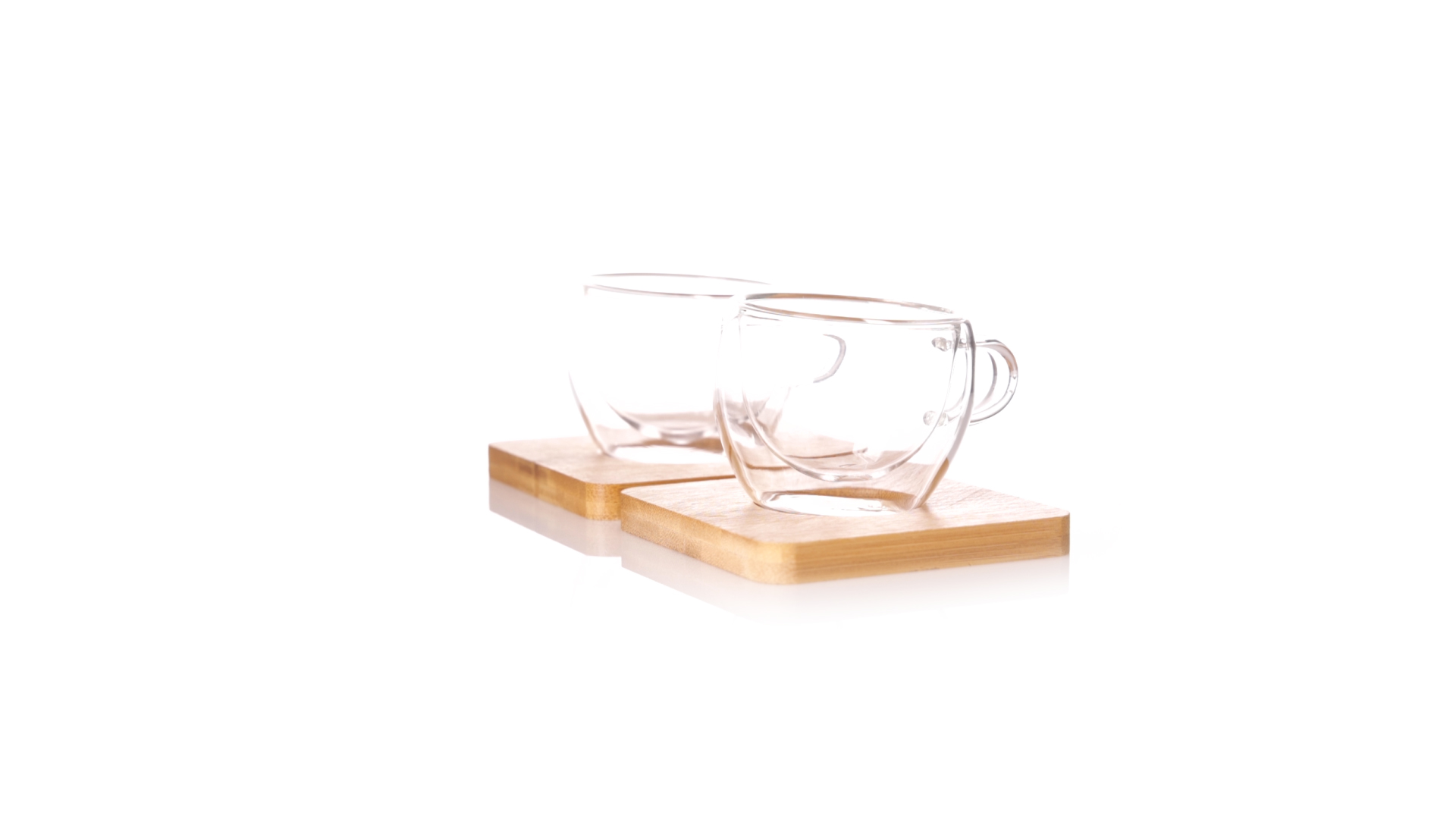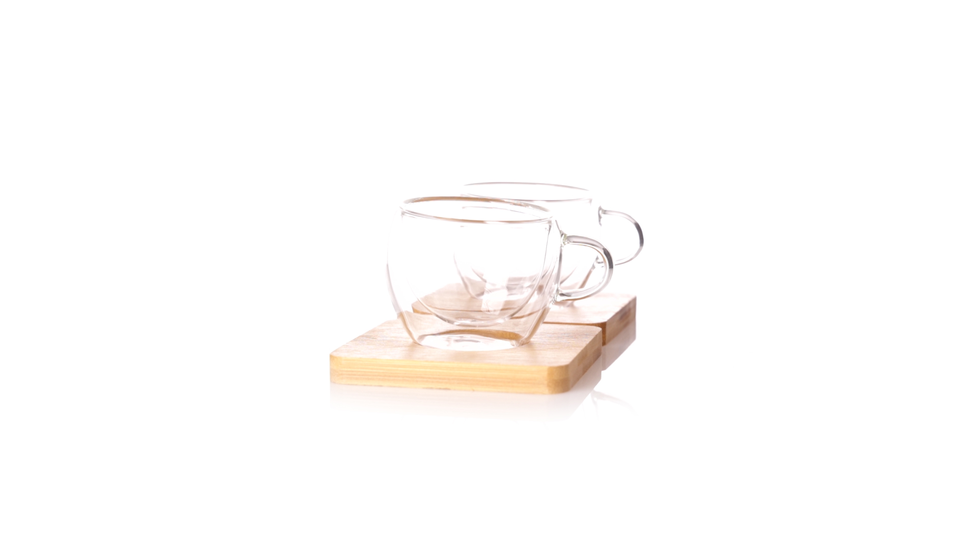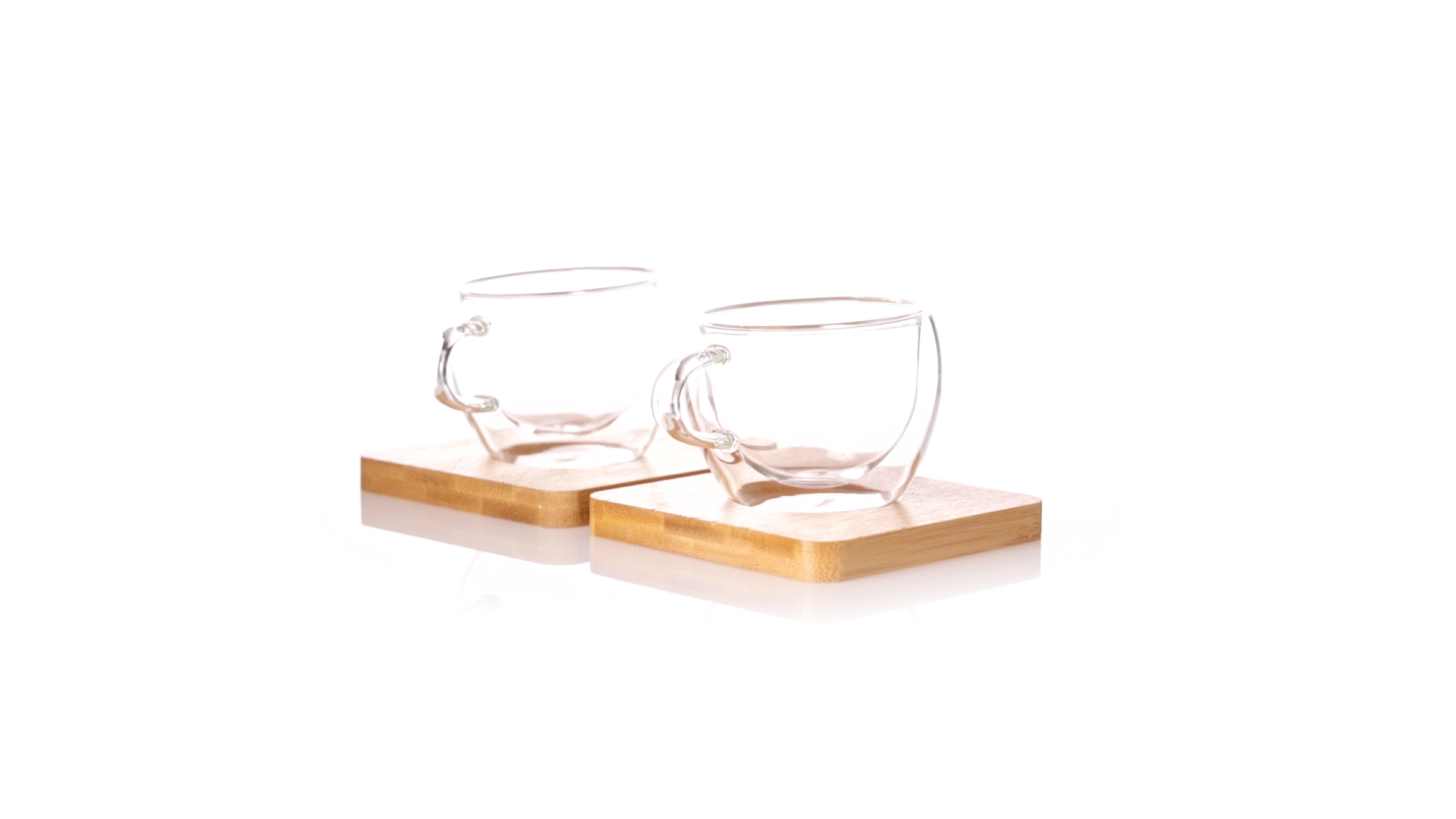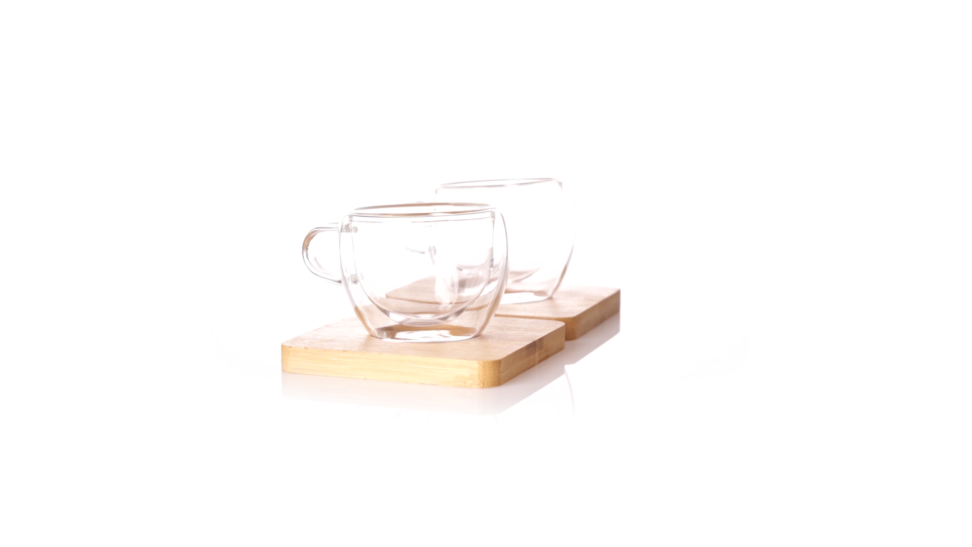 Set aus 2 doppelwandigen Bechern mit einem Fassungsvermögen von 60 ml. Hergestellt aus Borosilikatglas, das eine aussergewöhnliche Festigkeit und Haltbarkeit bietet, seine Lebensdauer verlängert und unzählige Male wiederverwendet werden kann. Inklusive 2 Untersetzer aus Bambus, die mit einer Stanzung im Boden versehen sind, damit sie perfekt auf jede Tasse passen. Das Set wird in einem Design-Etui aus Kraftkarton präsentiert, das für jede Tasse ein eigenes Fach enthält.Gebrauchsanweisung in Englisch und Spanisch erhältlich.