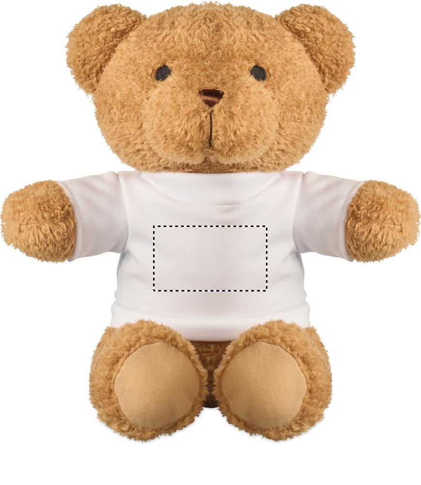 Teddybär aus Plüsch im T-Shirt. Sublimationsdruck nur auf weissem Material möglich.