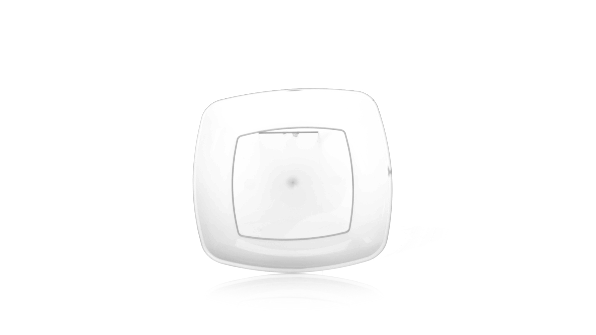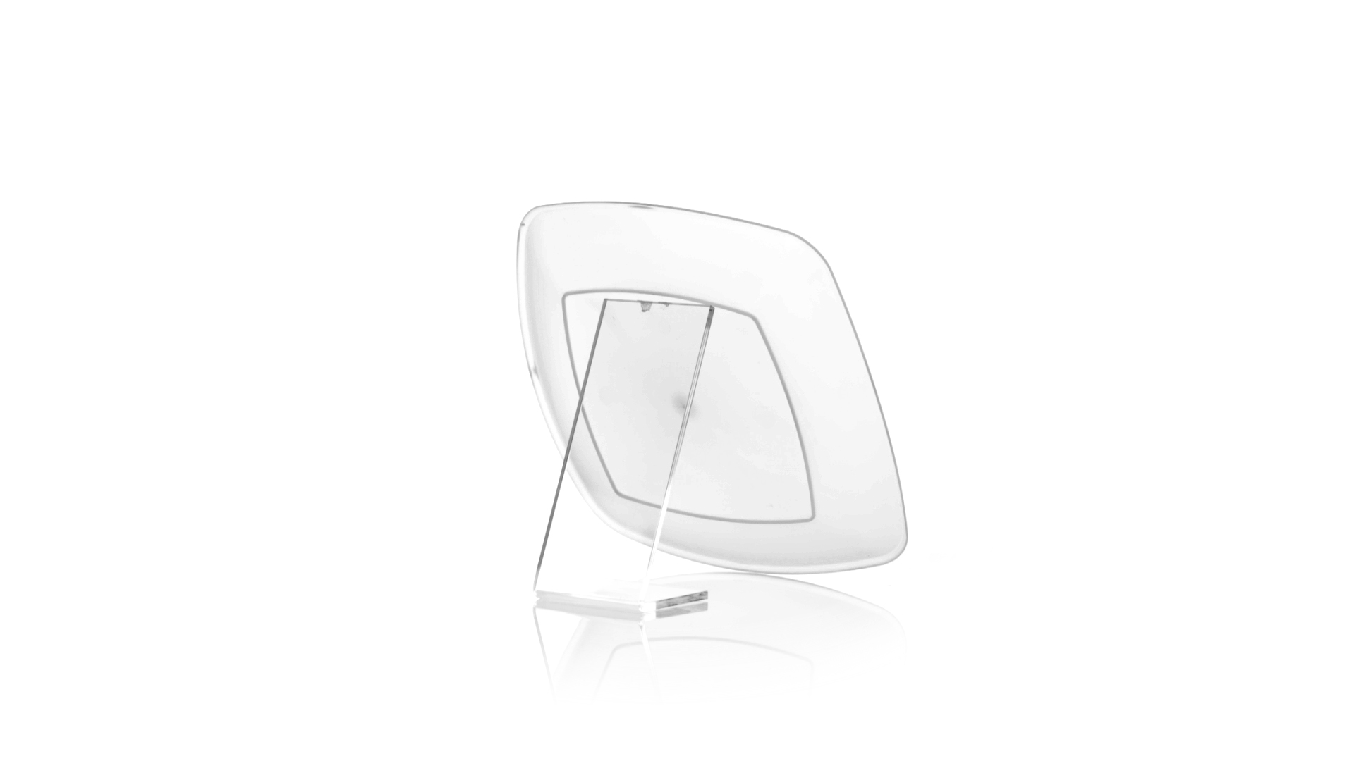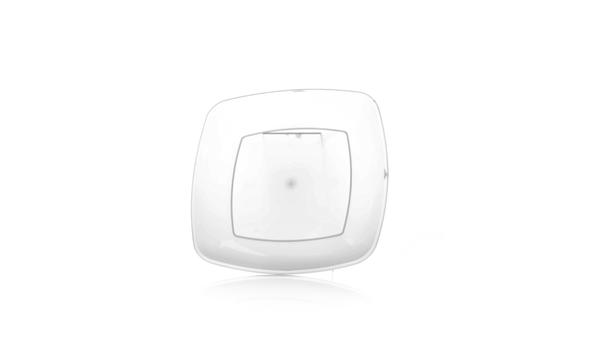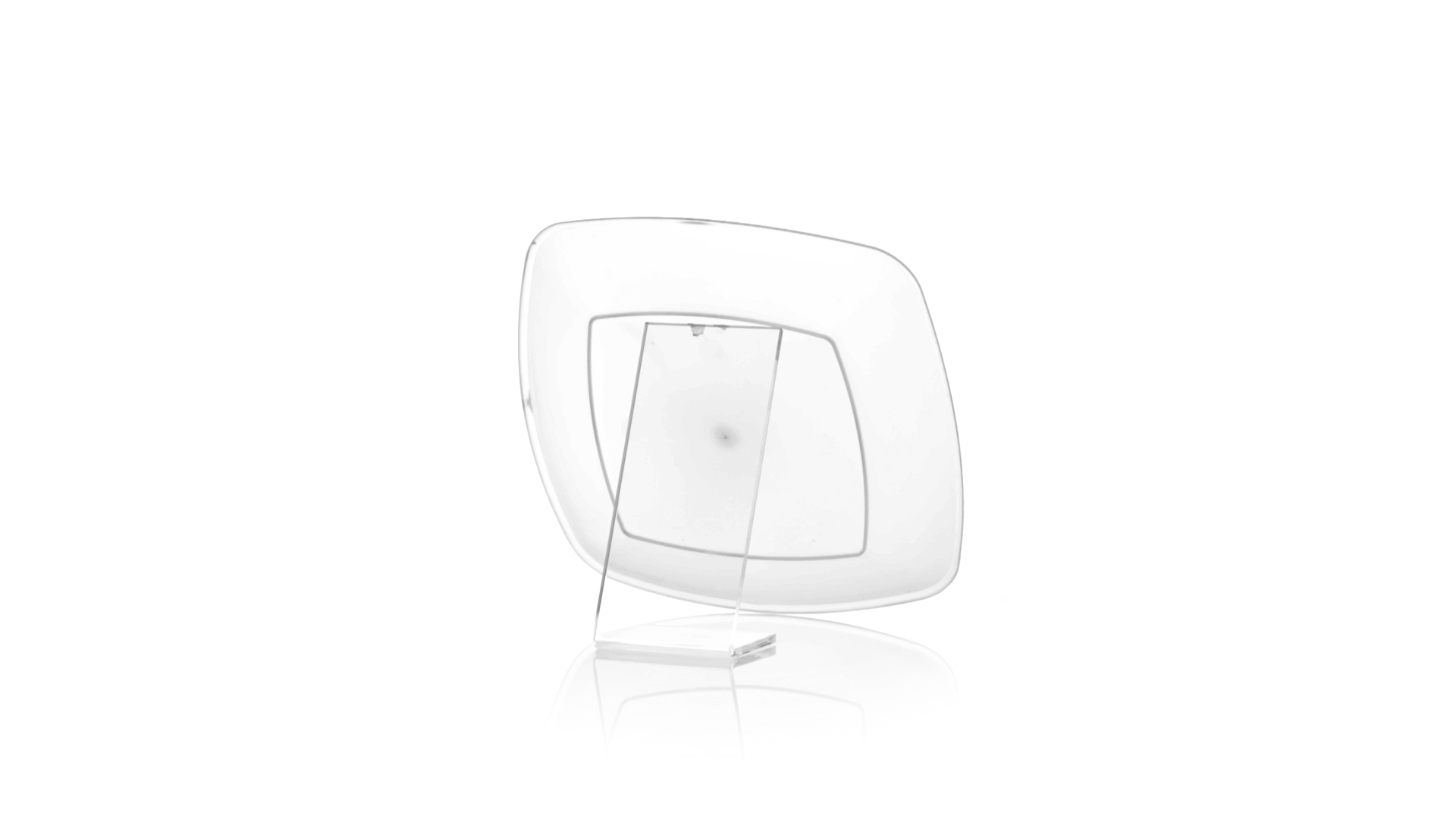 Flache Schale aus starkem und flexiblem PP-Material. Quadratische Form, wiederverwendbar und in durchsichtiger Ausführung.