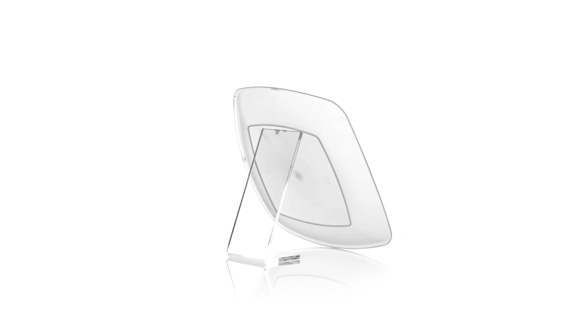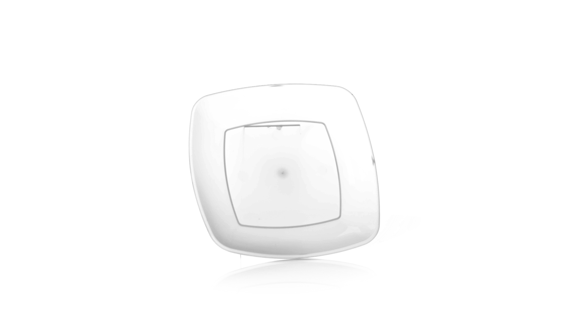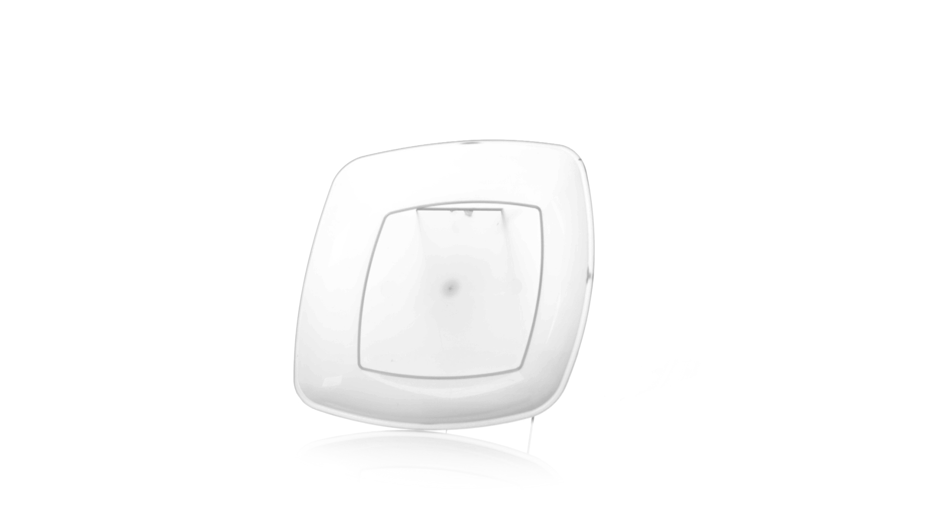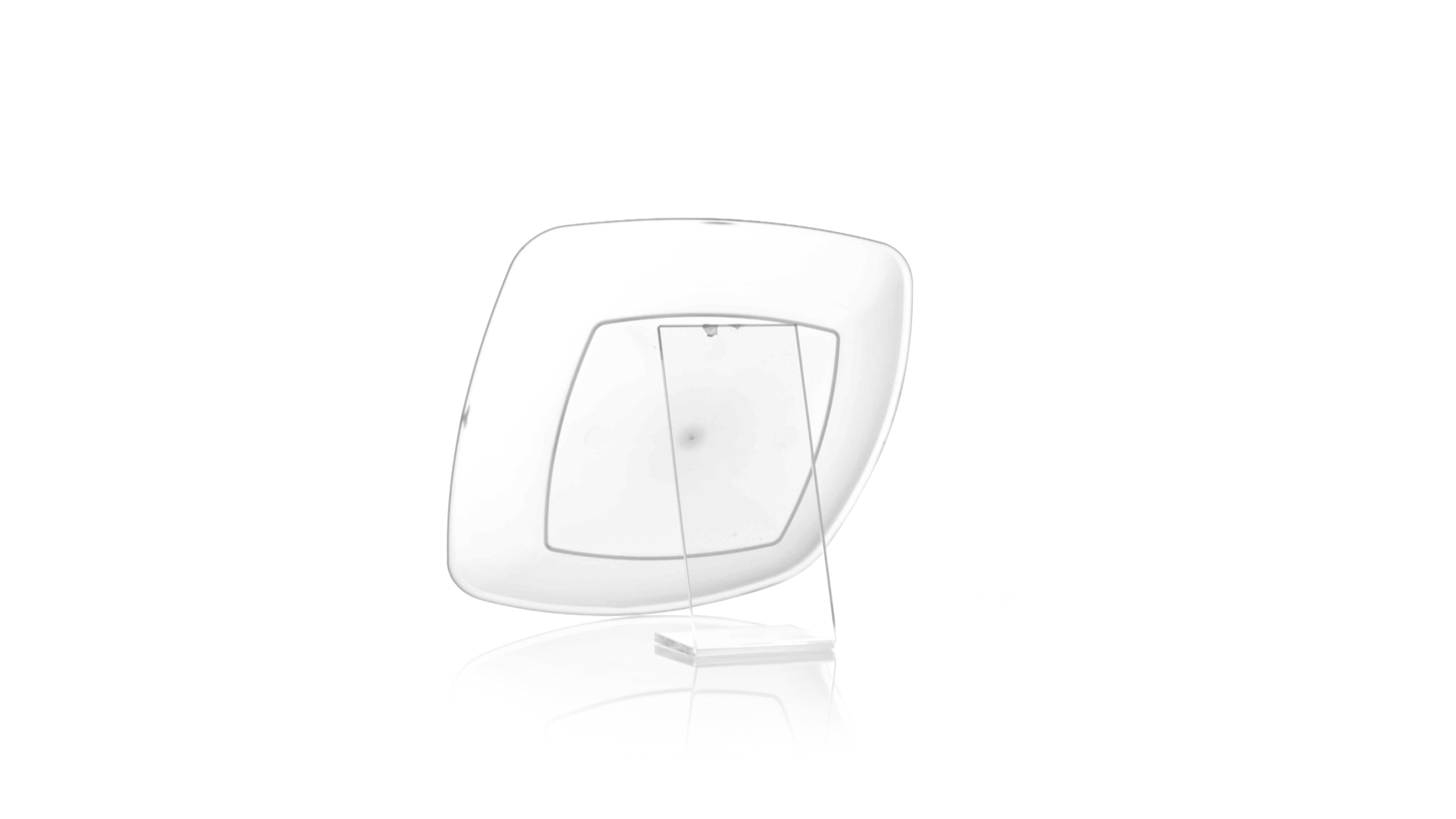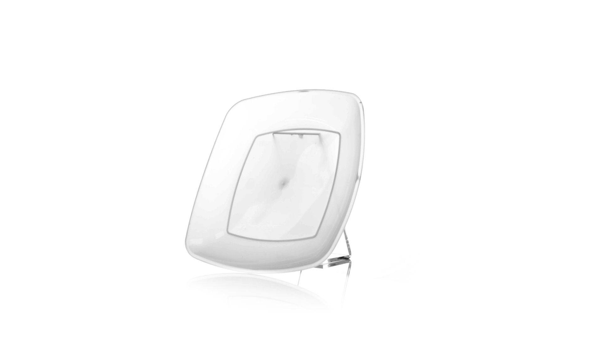 Flache Schale aus starkem und flexiblem PP-Material. Quadratische Form, wiederverwendbar und in durchsichtiger Ausführung.