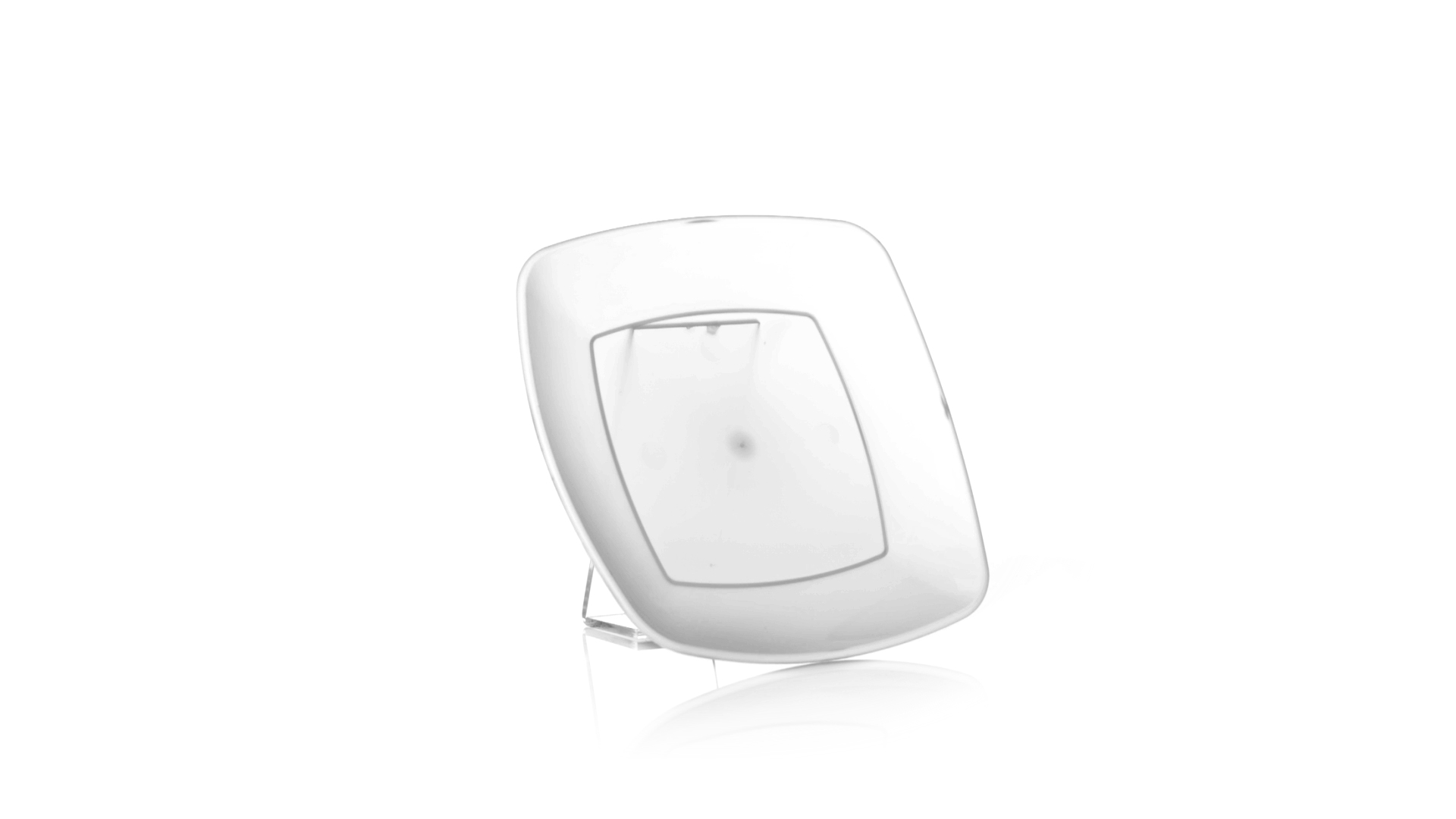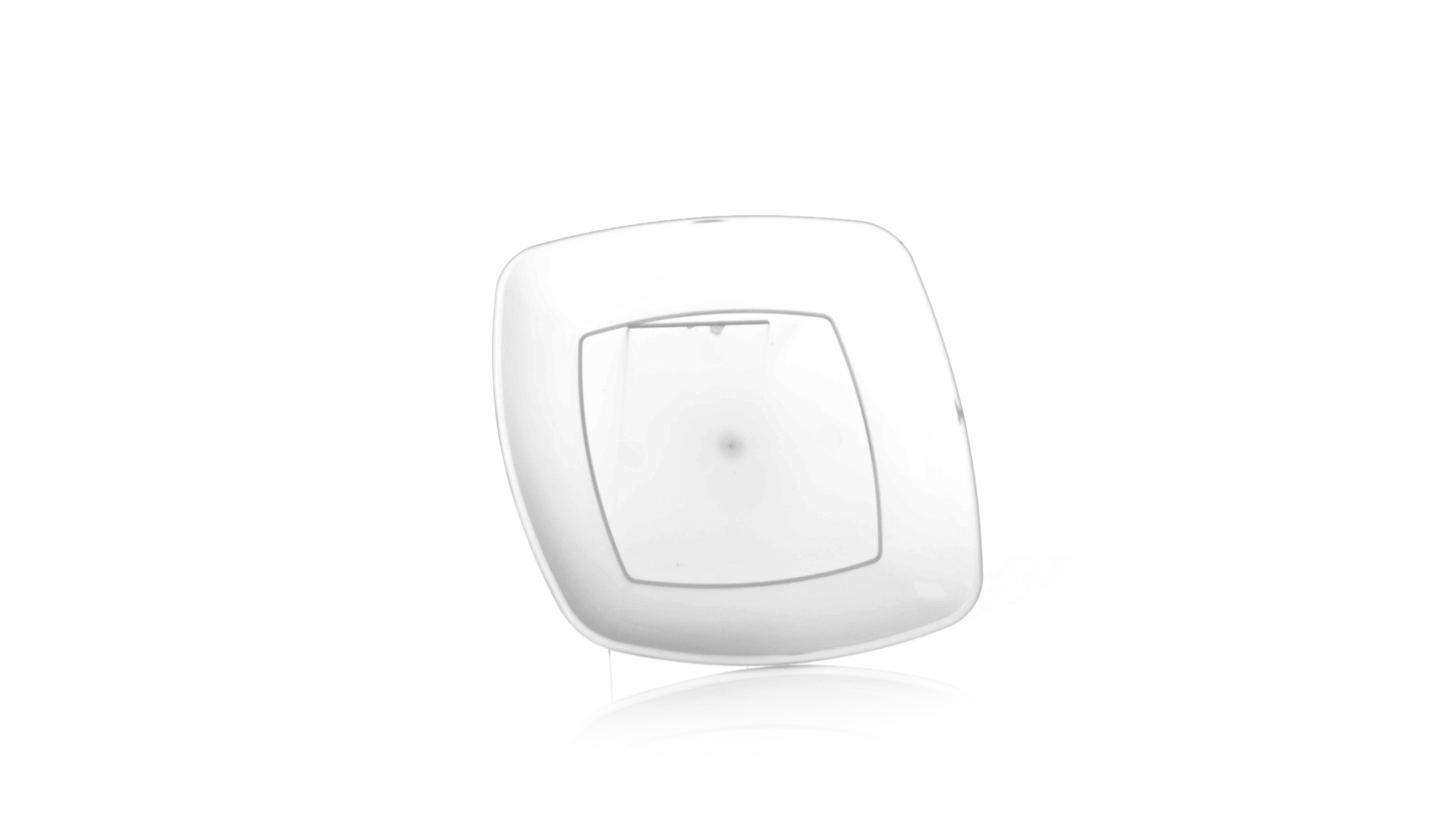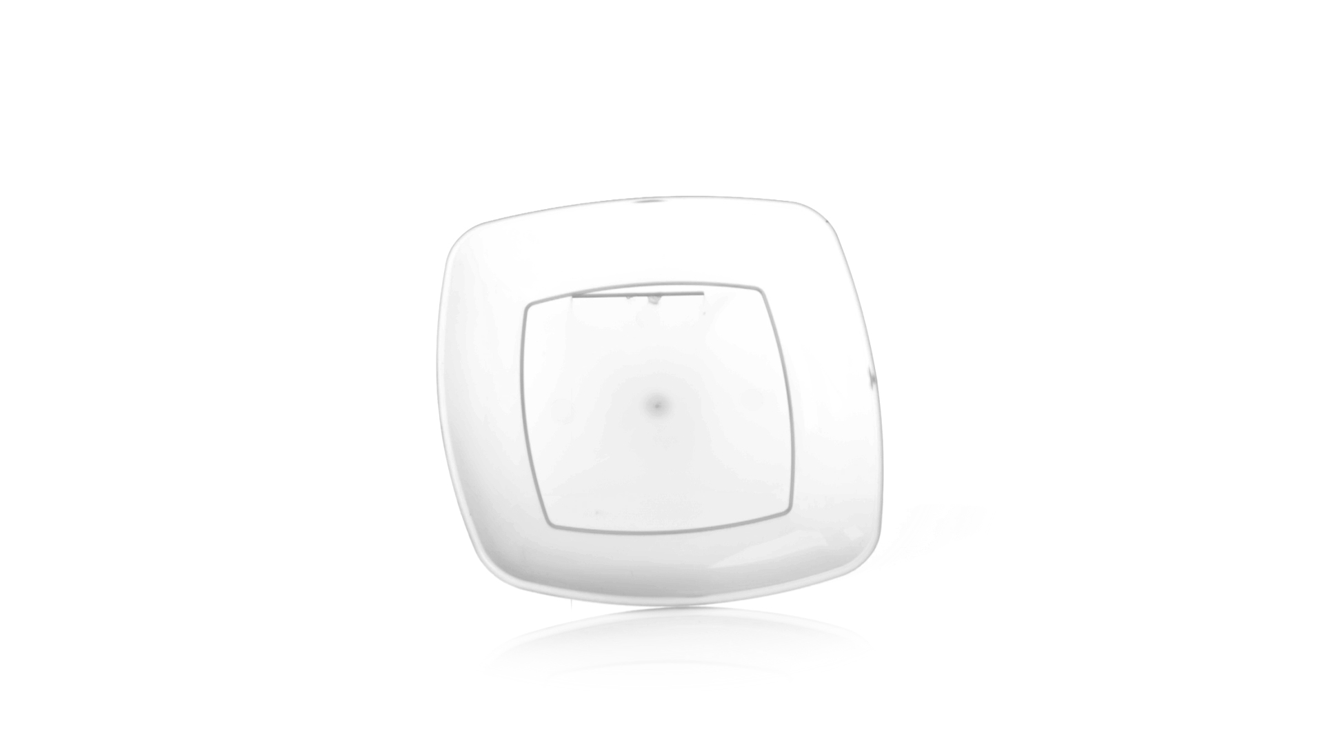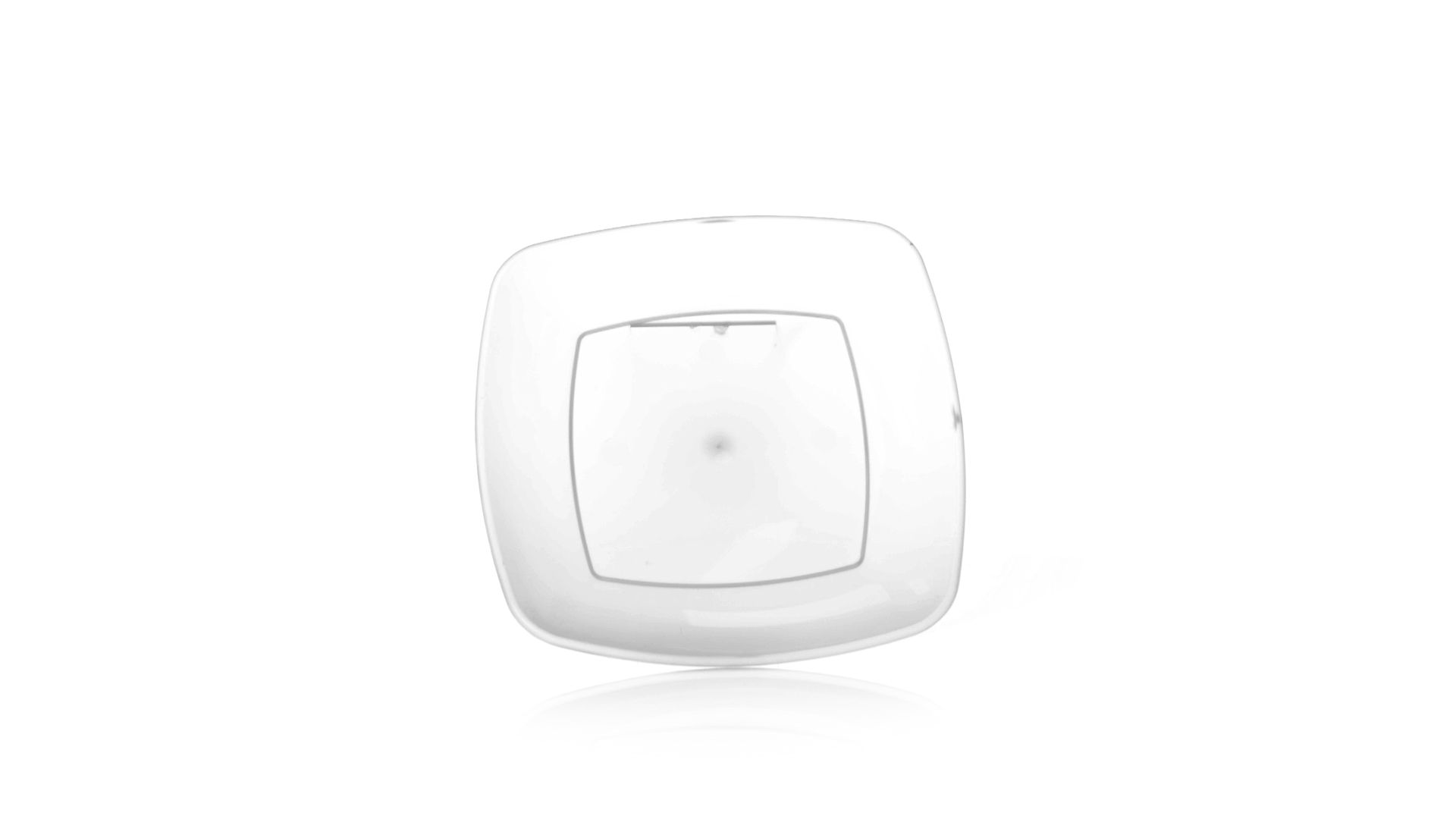 Flache Schale aus starkem und flexiblem PP-Material. Quadratische Form, wiederverwendbar und in durchsichtiger Ausführung.
