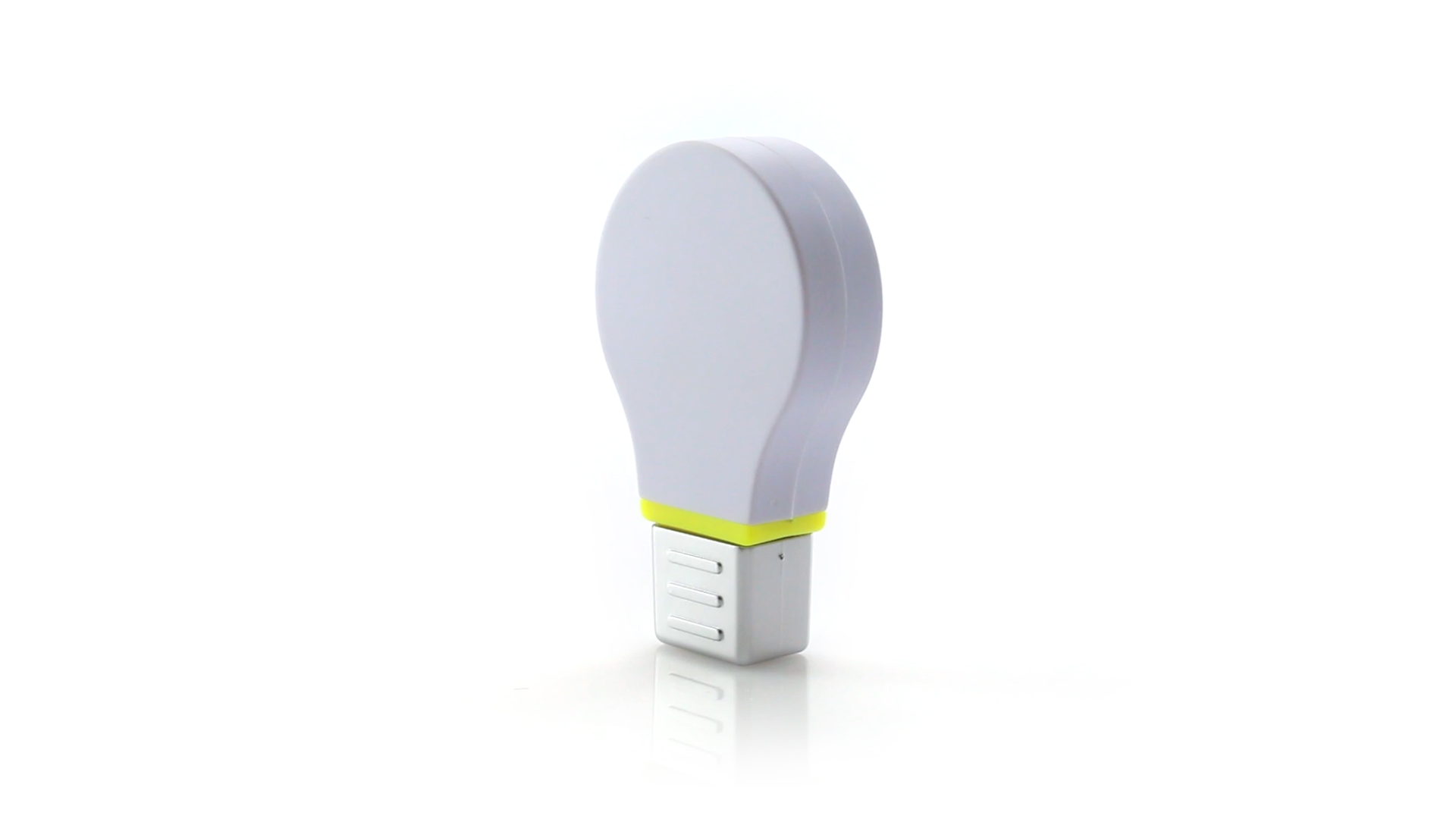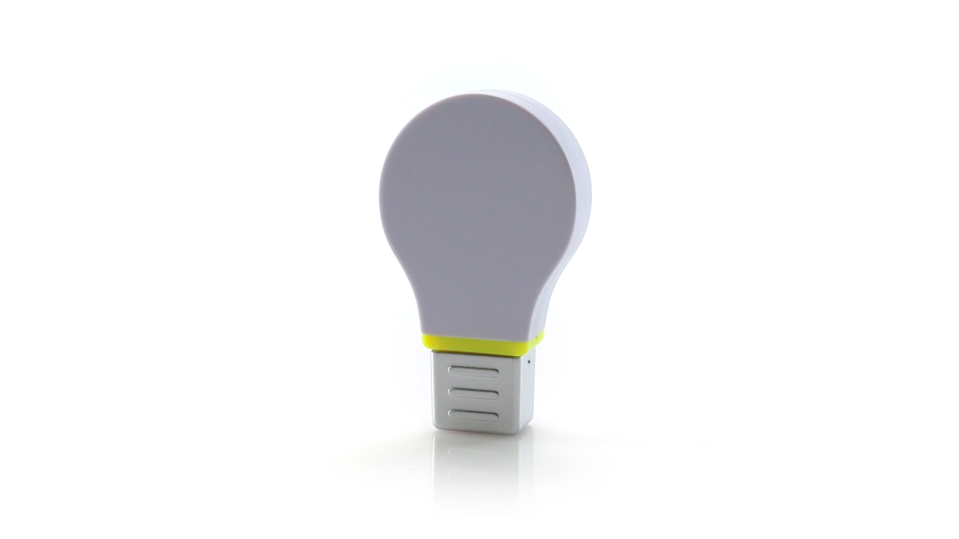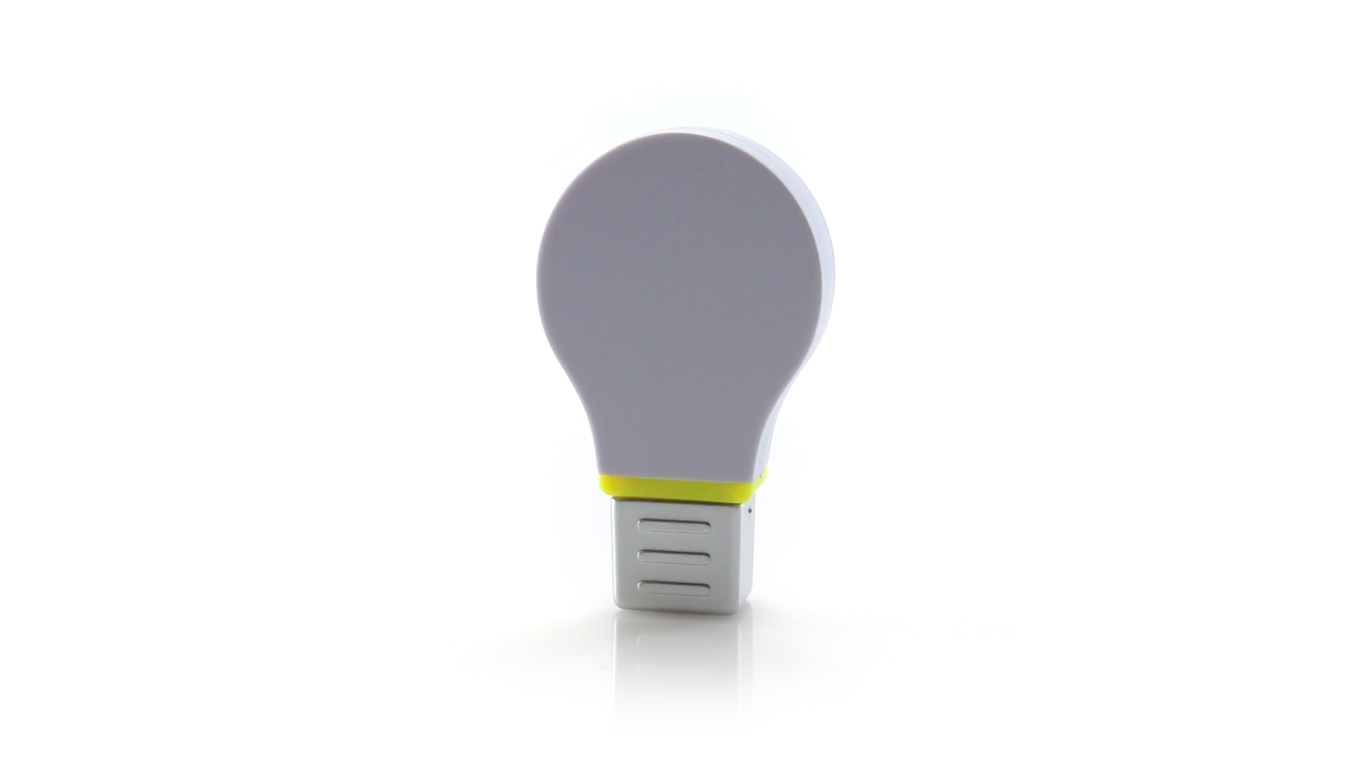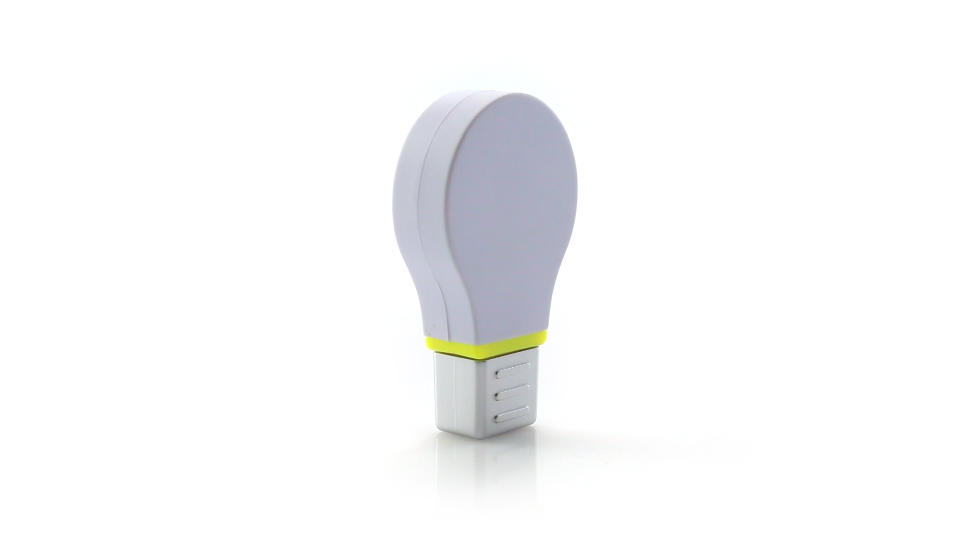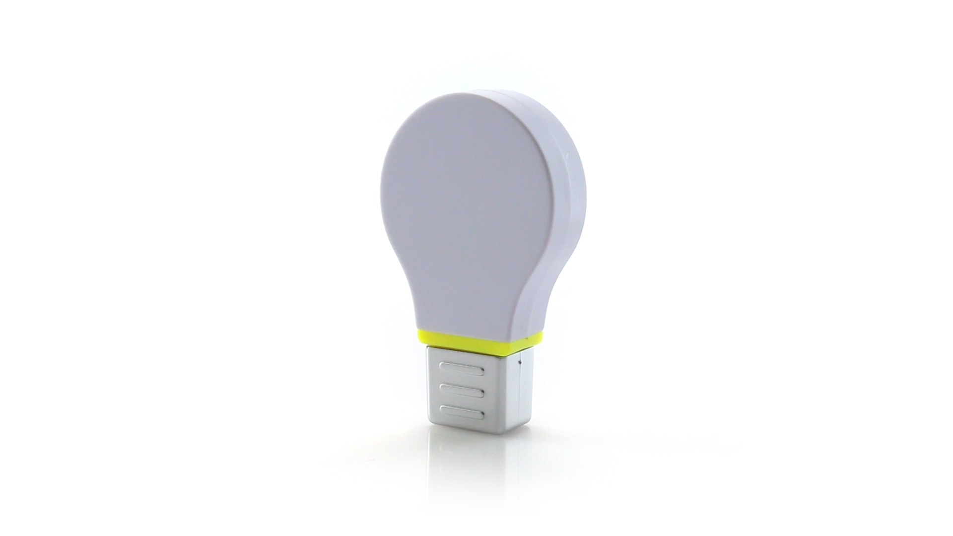 Textmarker mit originellem Glühbirnen-Design und Schaft in glänzendem Weiss - speziell entwickelt für den Digital- und Tampondruck.