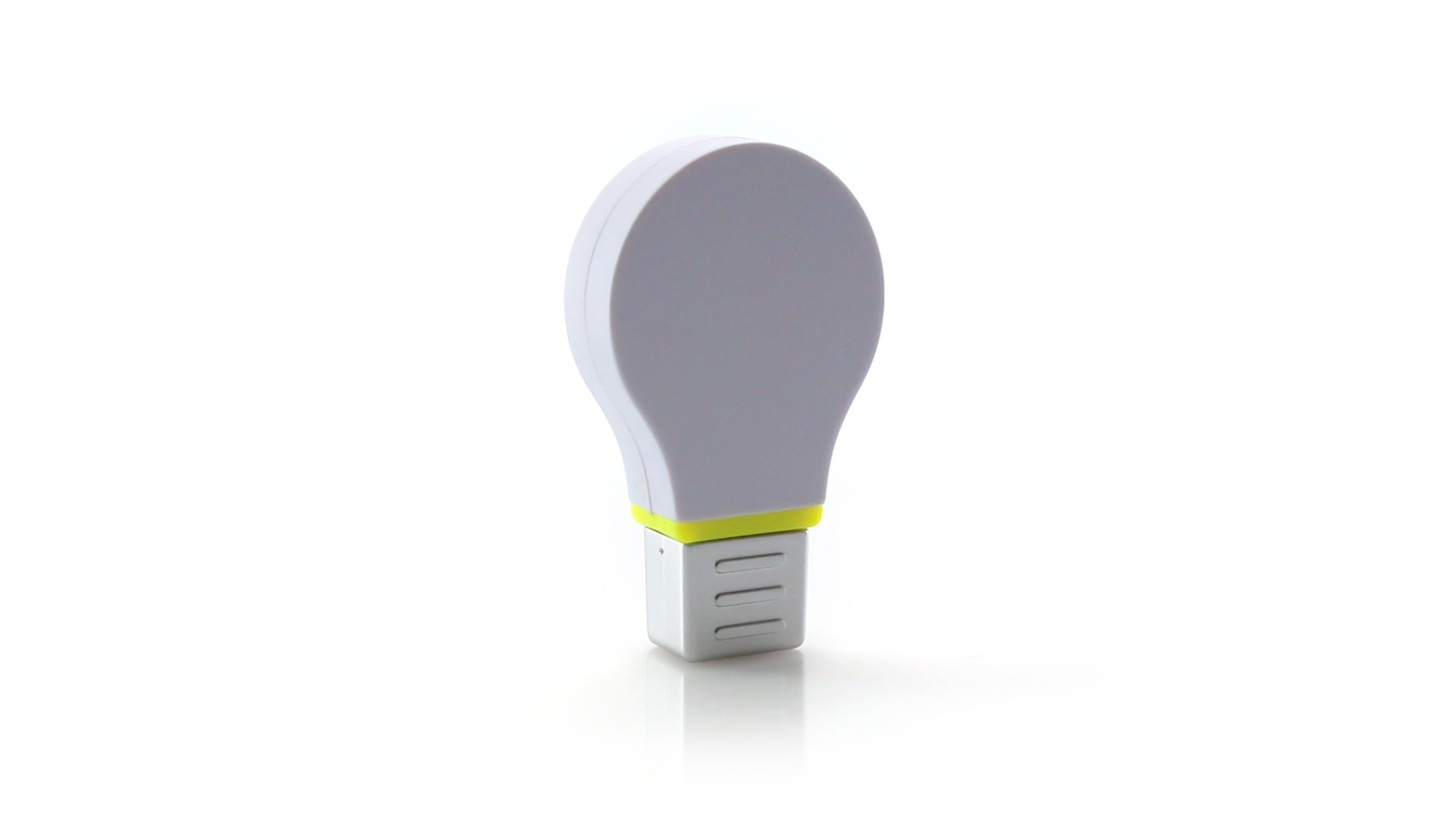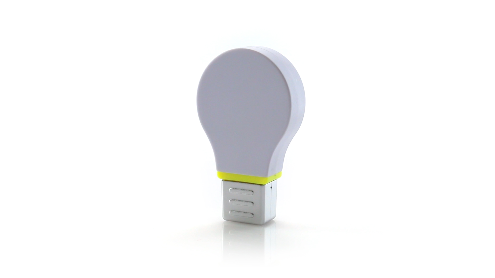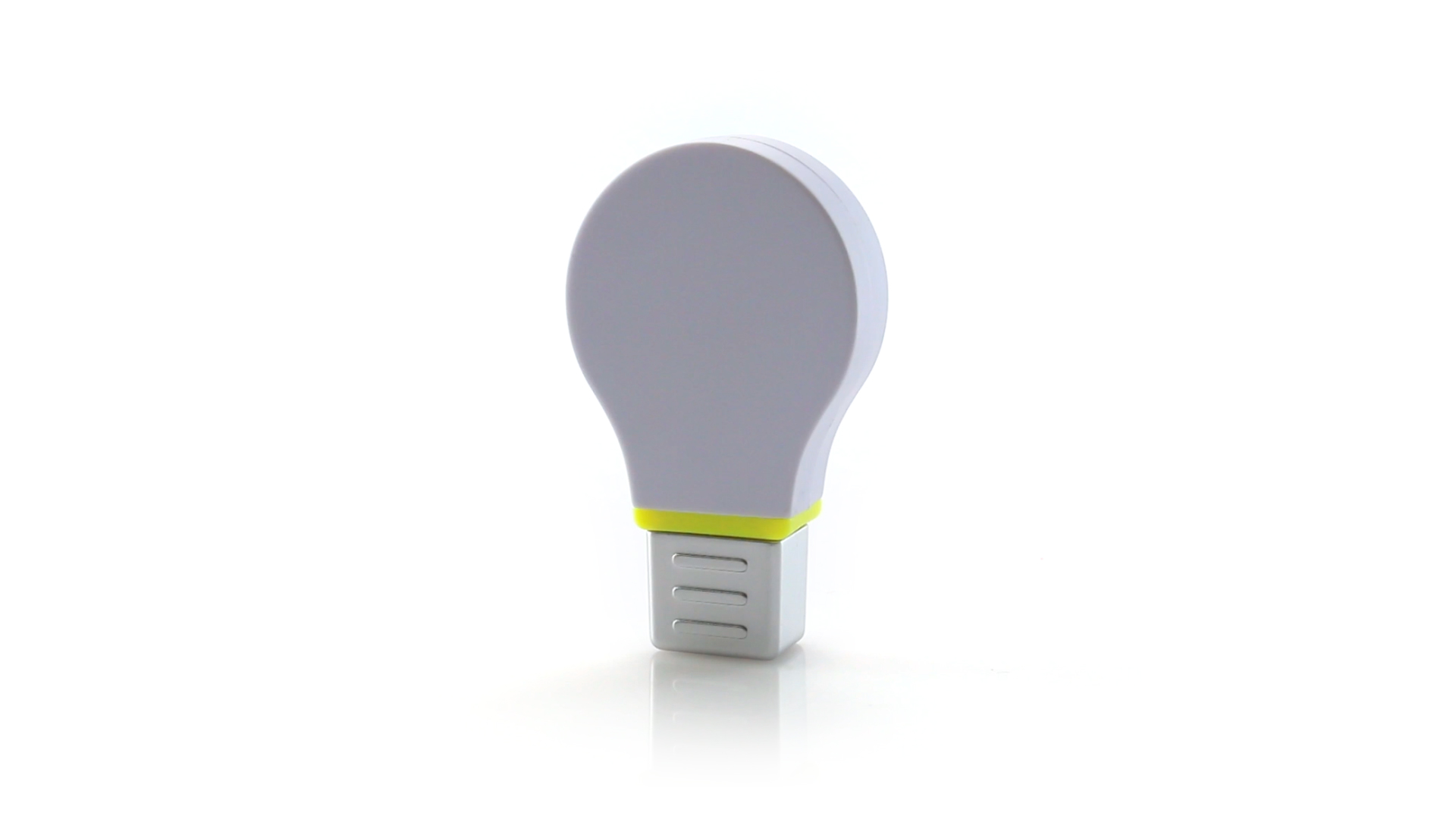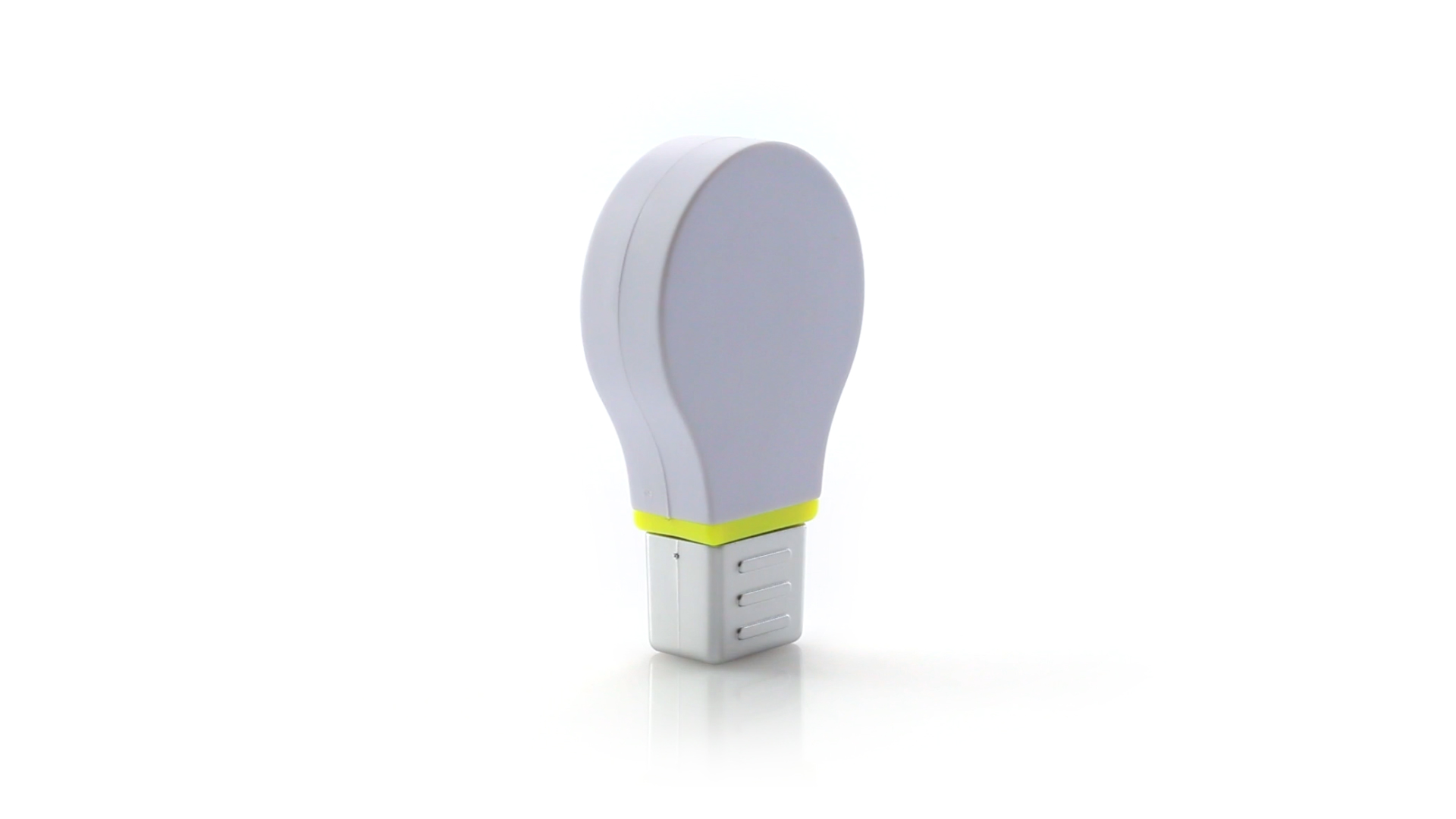 Textmarker mit originellem Glühbirnen-Design und Schaft in glänzendem Weiss - speziell entwickelt für den Digital- und Tampondruck.