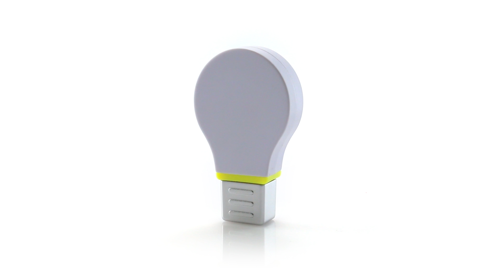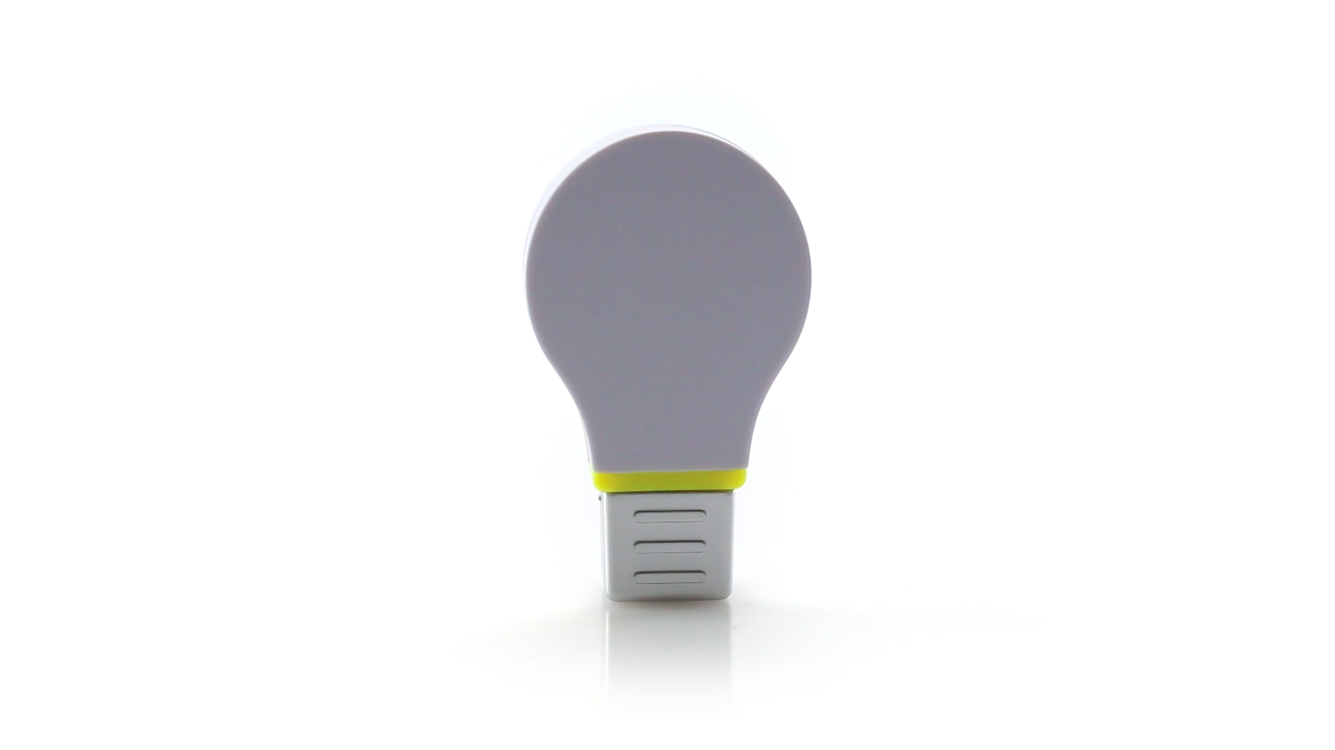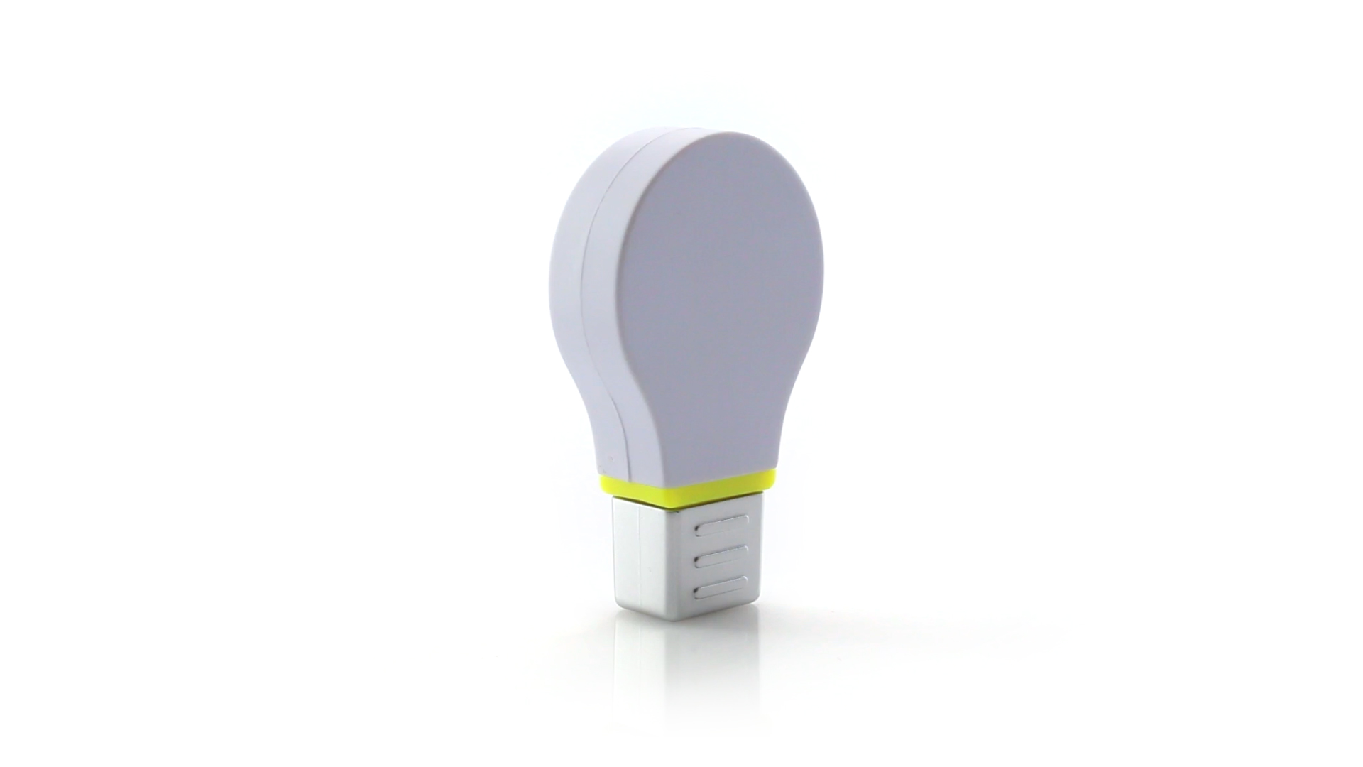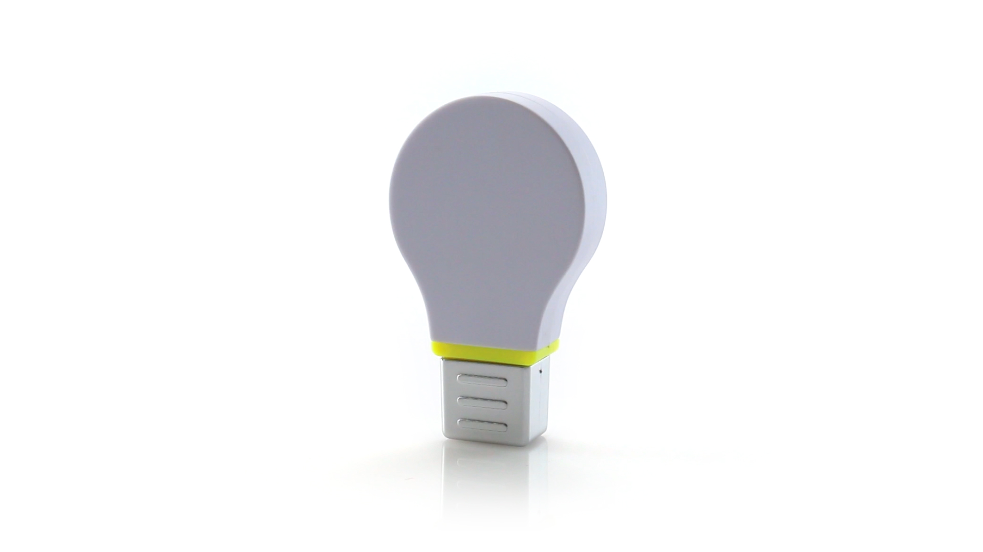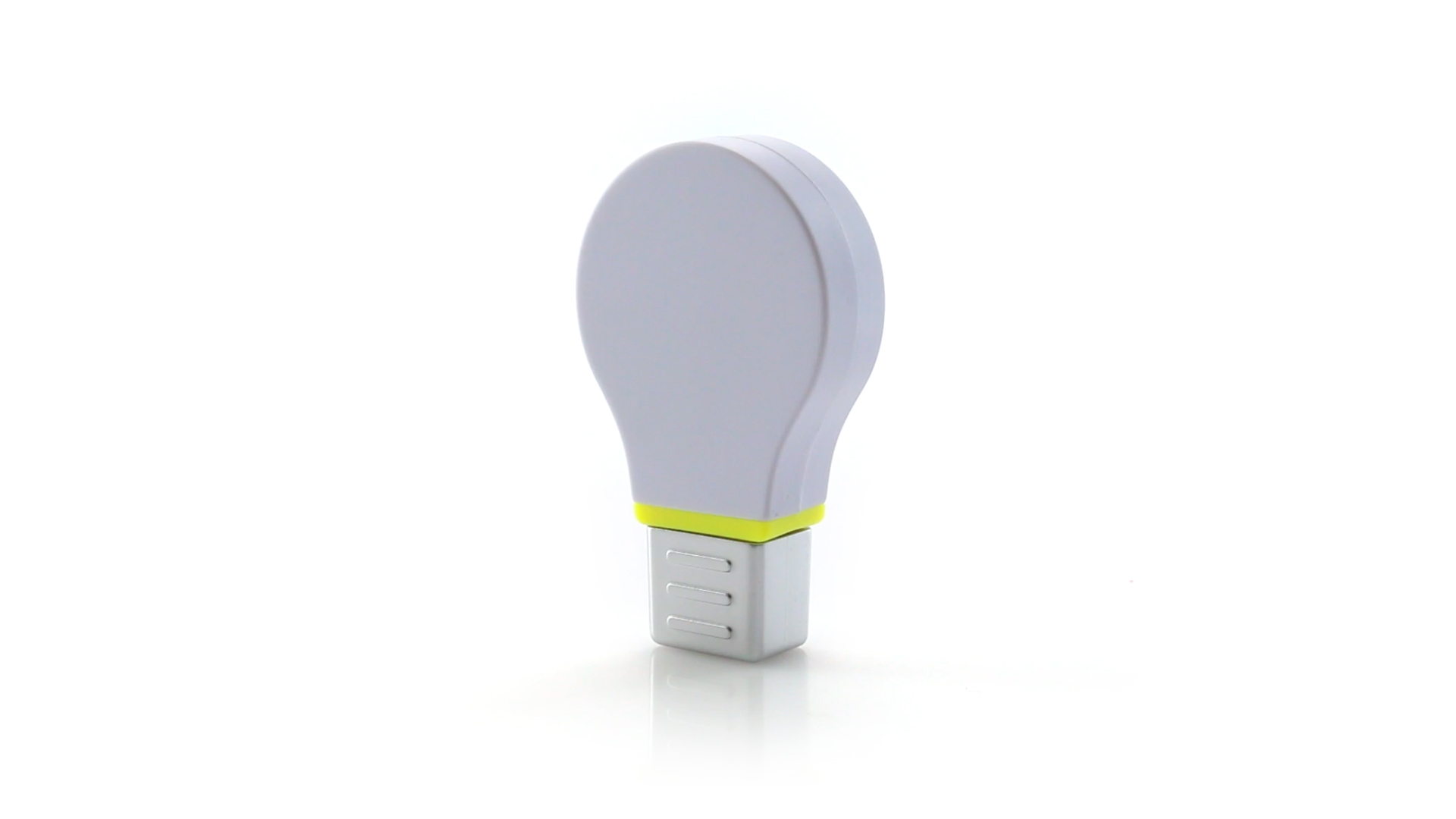 Textmarker mit originellem Glühbirnen-Design und Schaft in glänzendem Weiss - speziell entwickelt für den Digital- und Tampondruck.