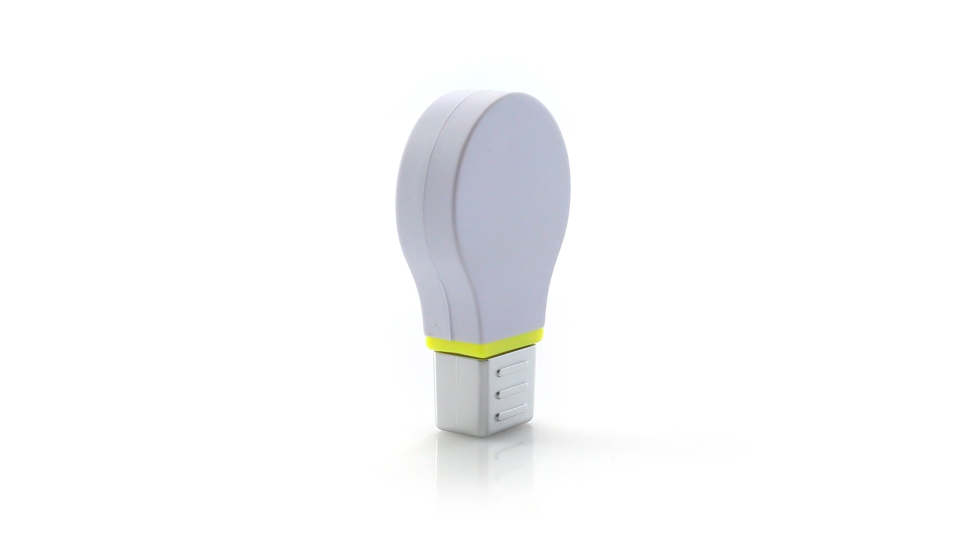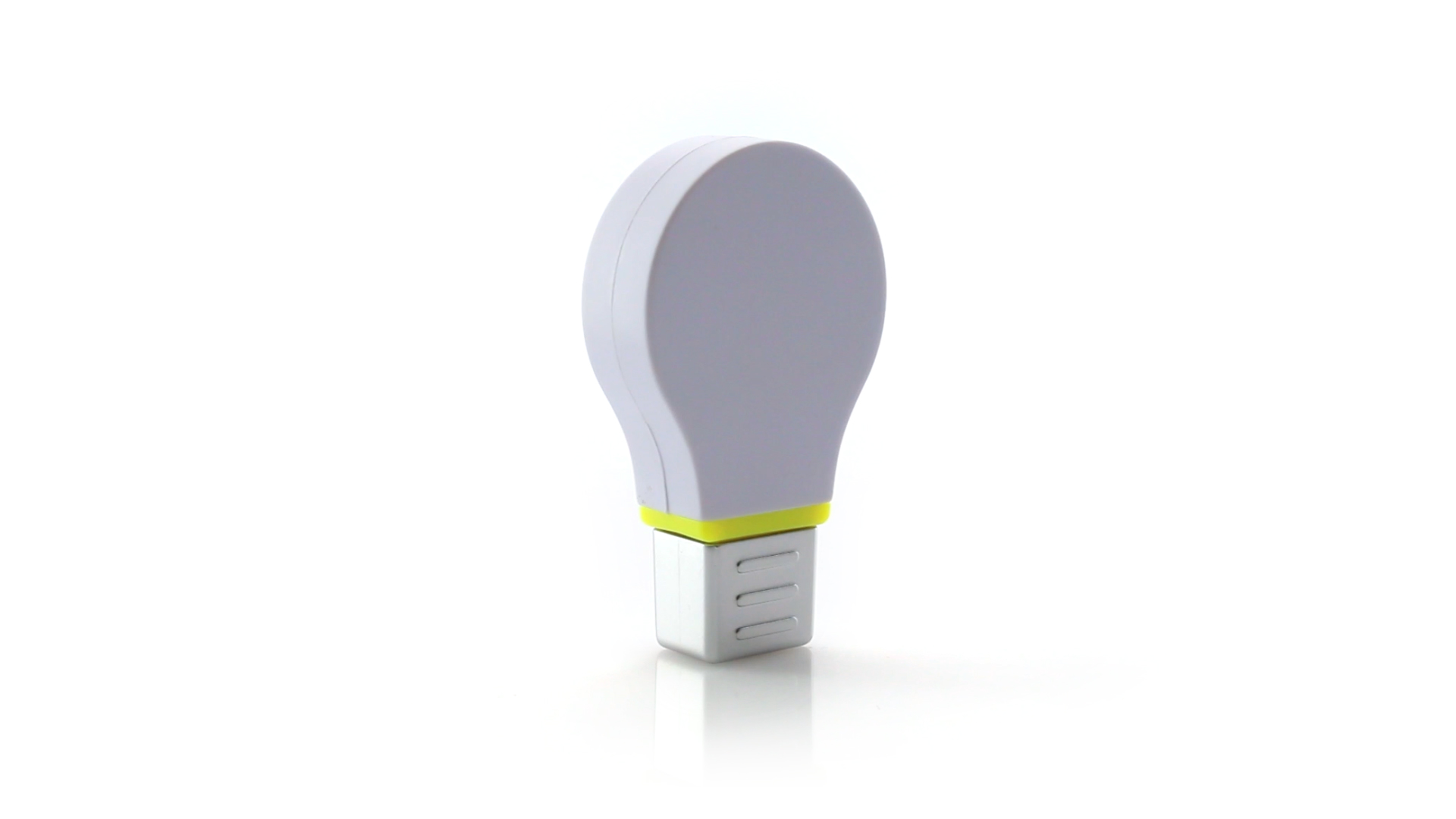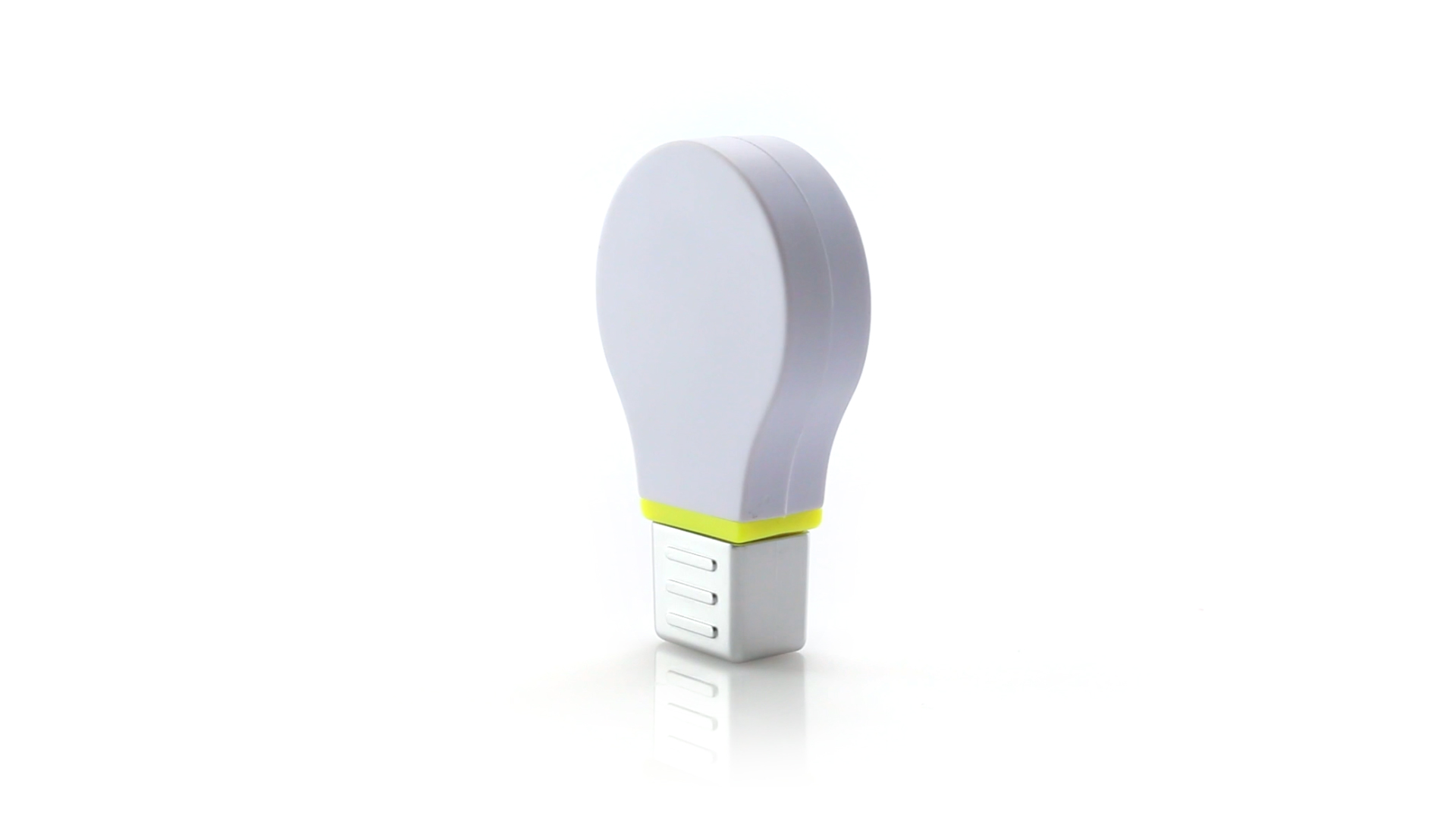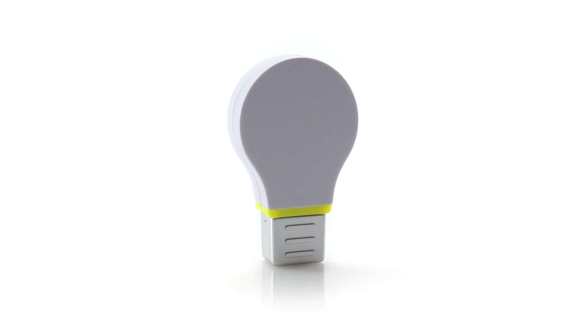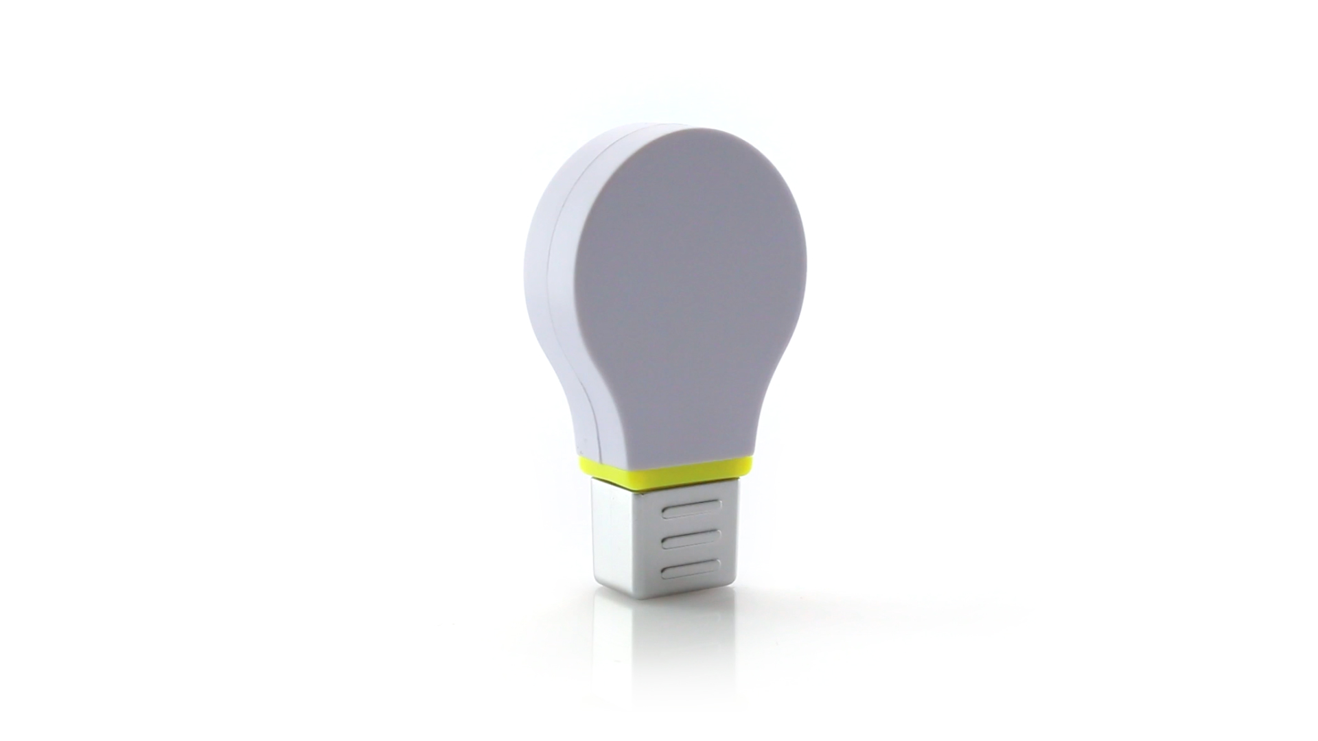 Textmarker mit originellem Glühbirnen-Design und Schaft in glänzendem Weiss - speziell entwickelt für den Digital- und Tampondruck.