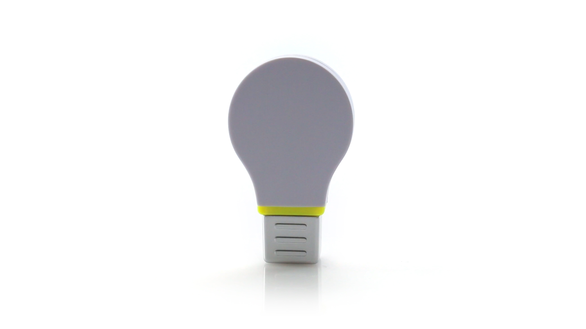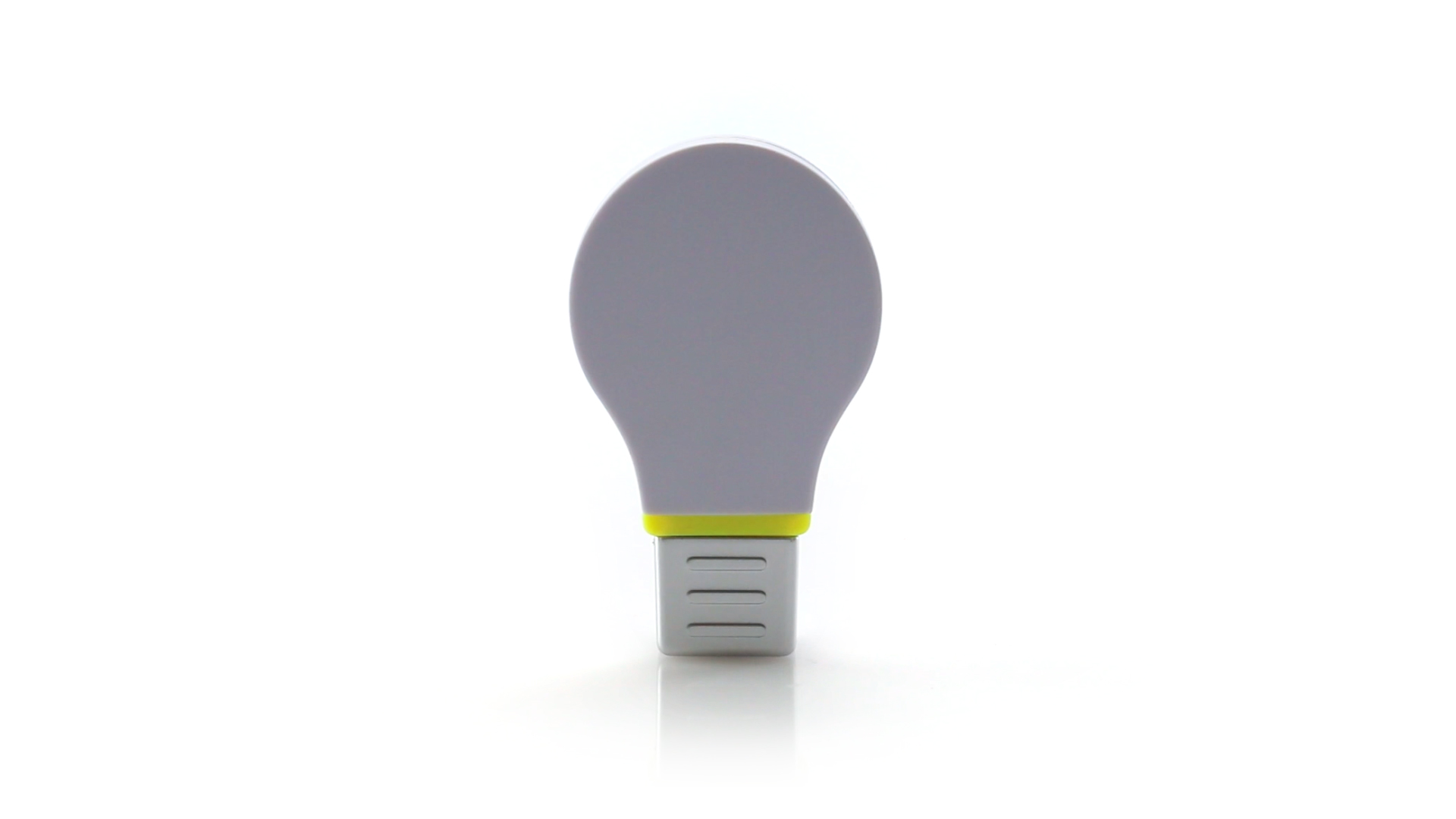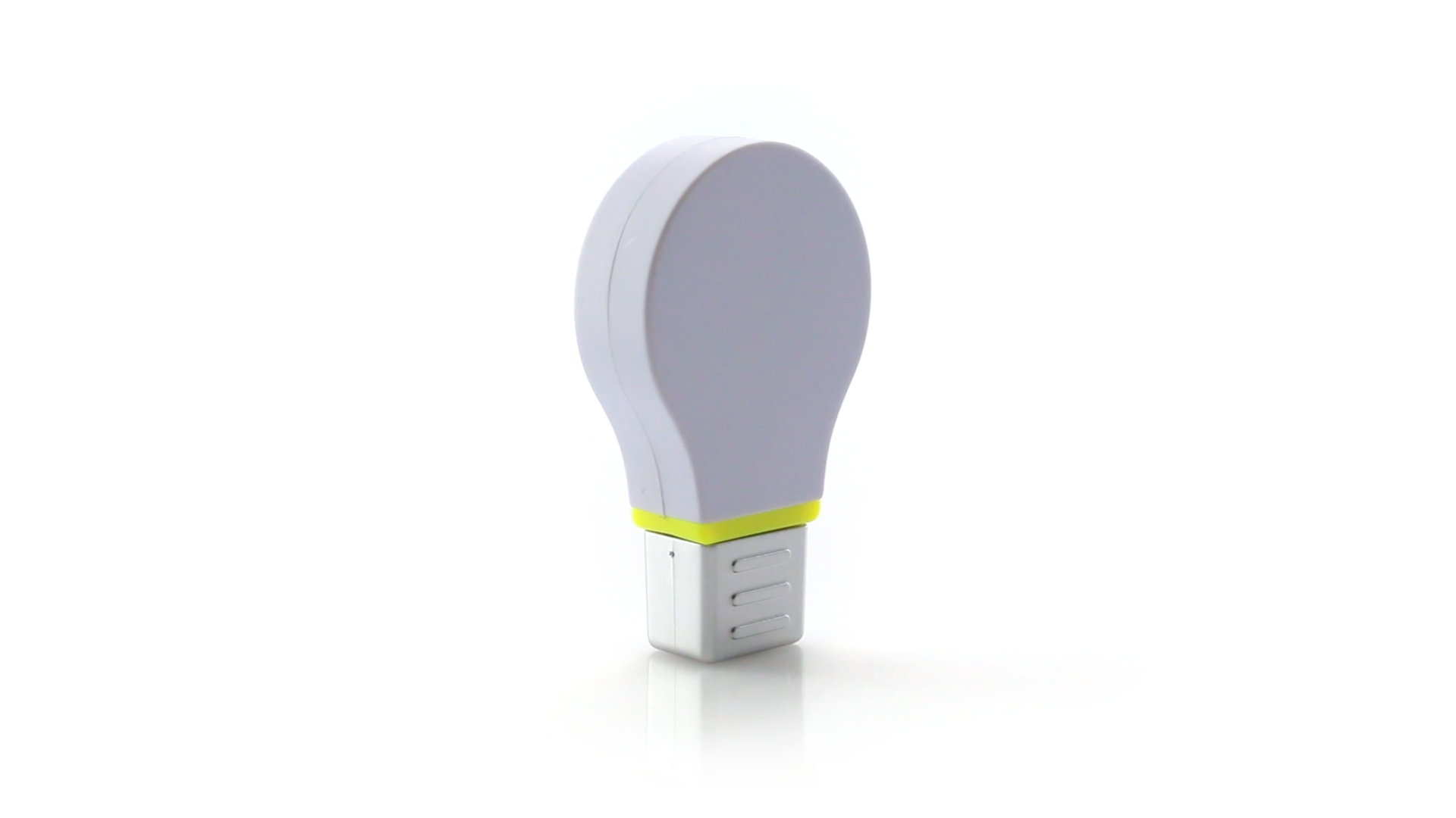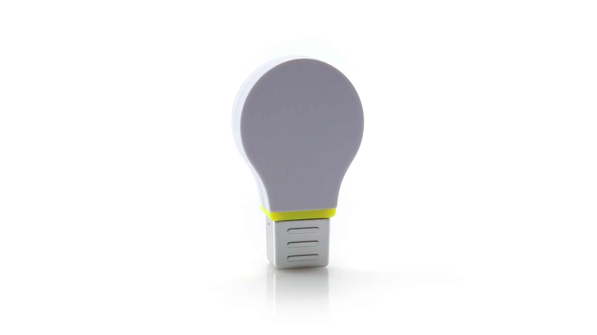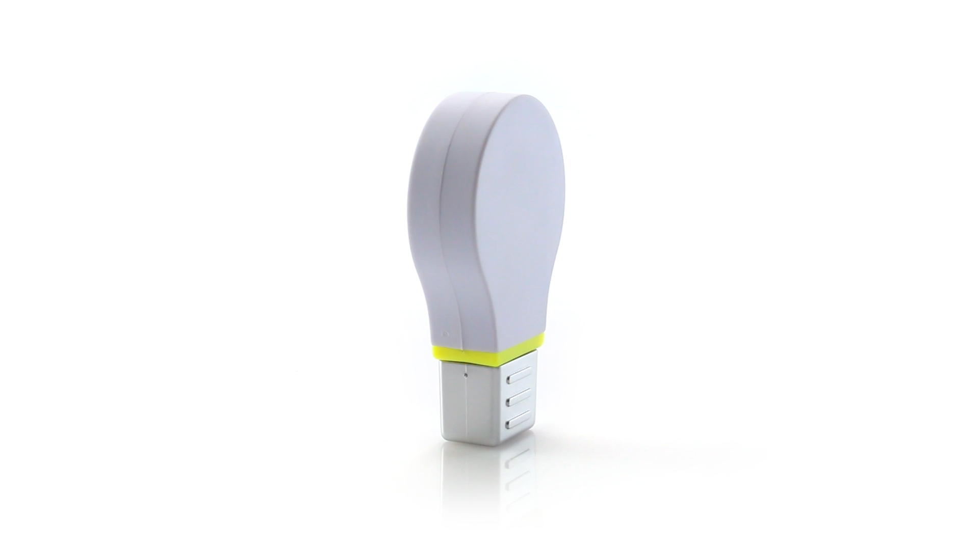 Textmarker mit originellem Glühbirnen-Design und Schaft in glänzendem Weiss - speziell entwickelt für den Digital- und Tampondruck.
