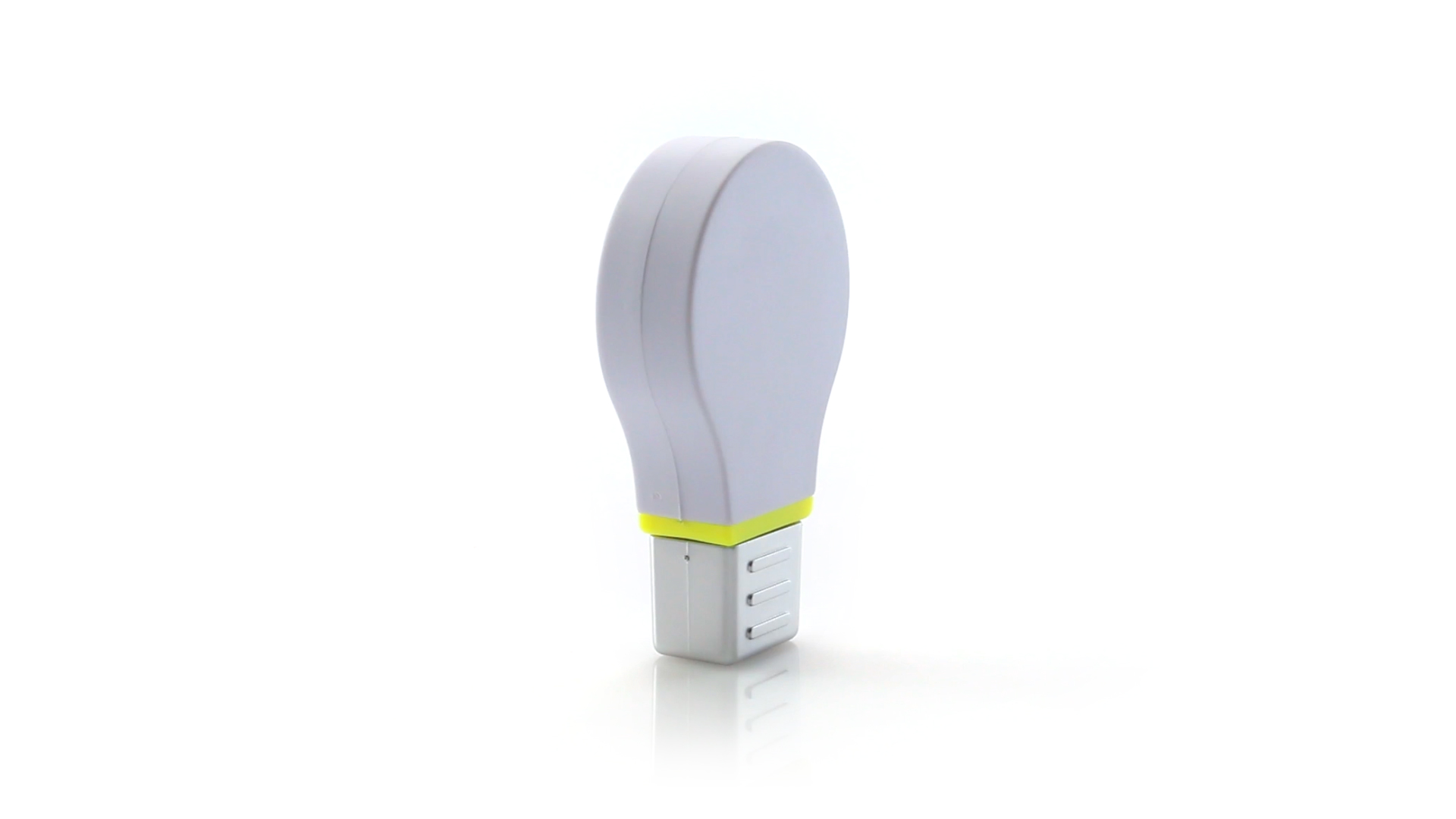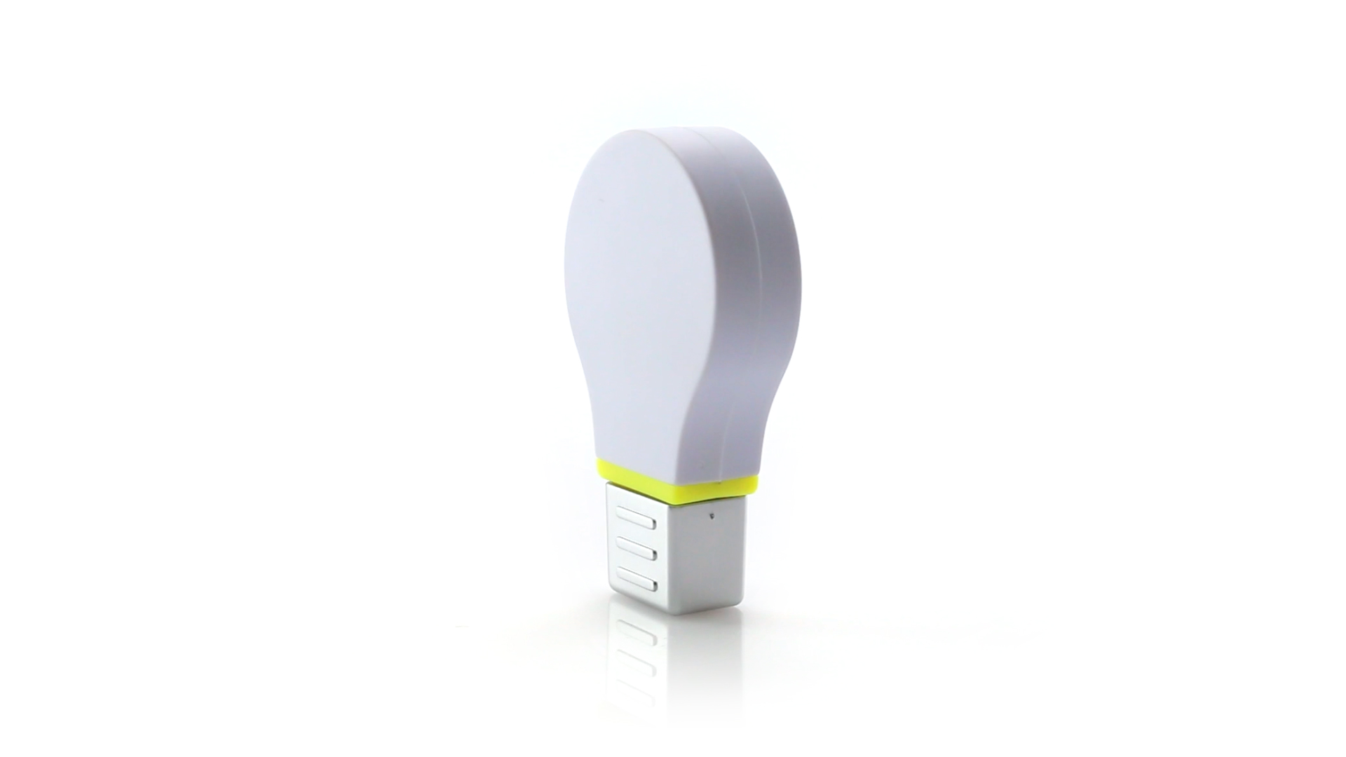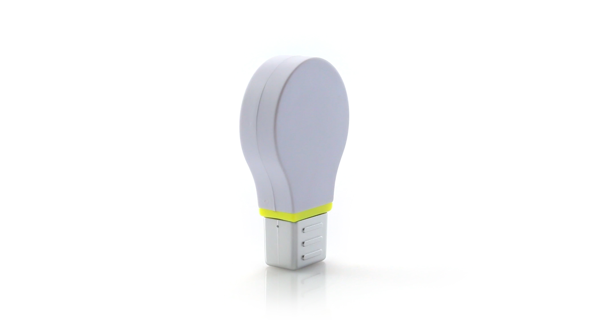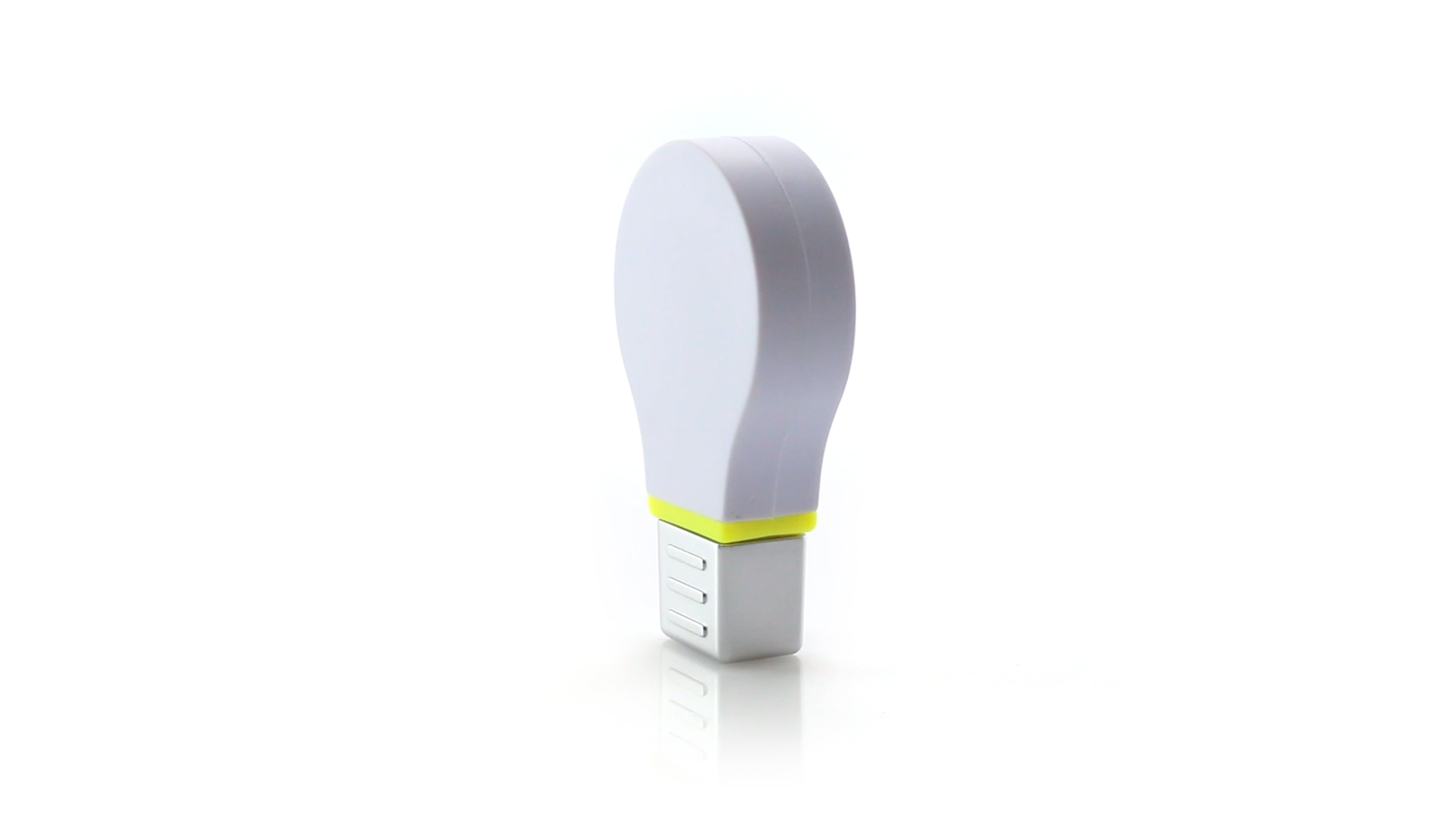 Textmarker mit originellem Glühbirnen-Design und Schaft in glänzendem Weiss - speziell entwickelt für den Digital- und Tampondruck.