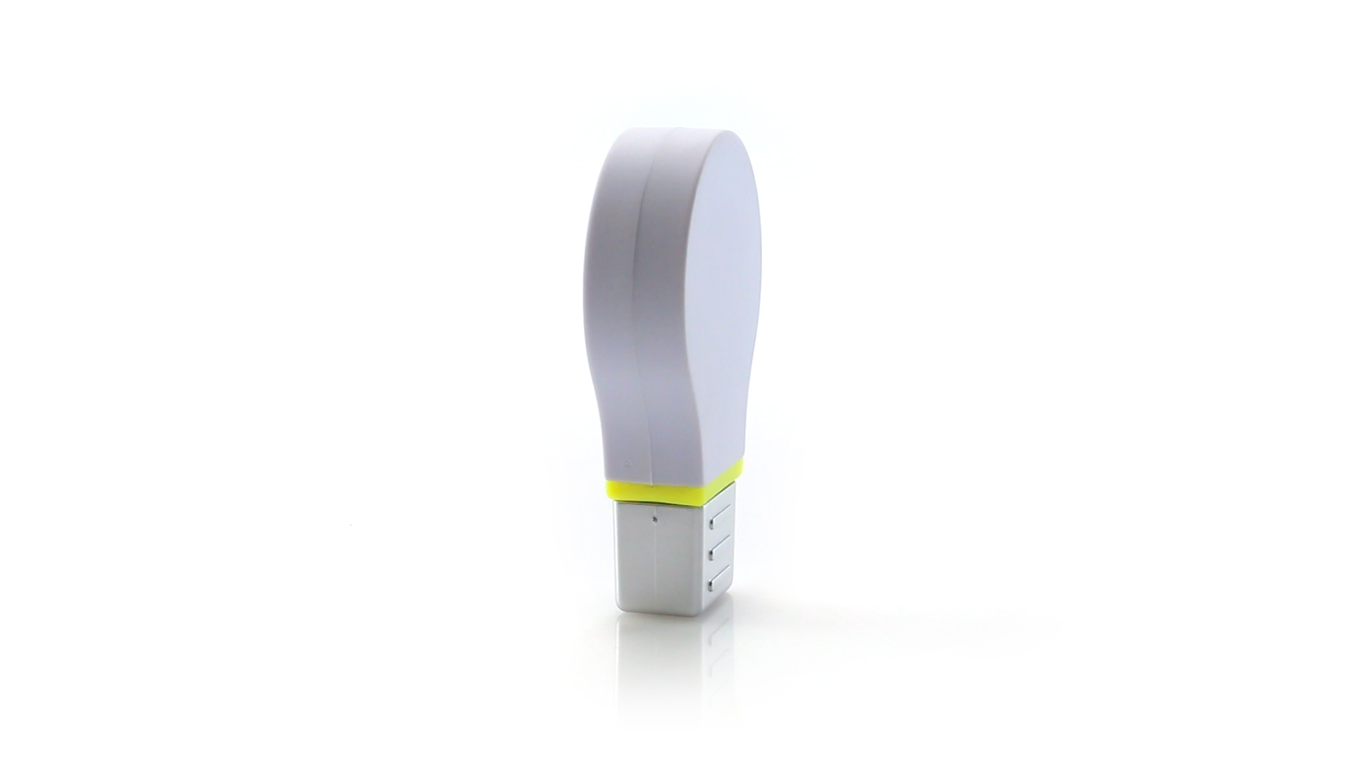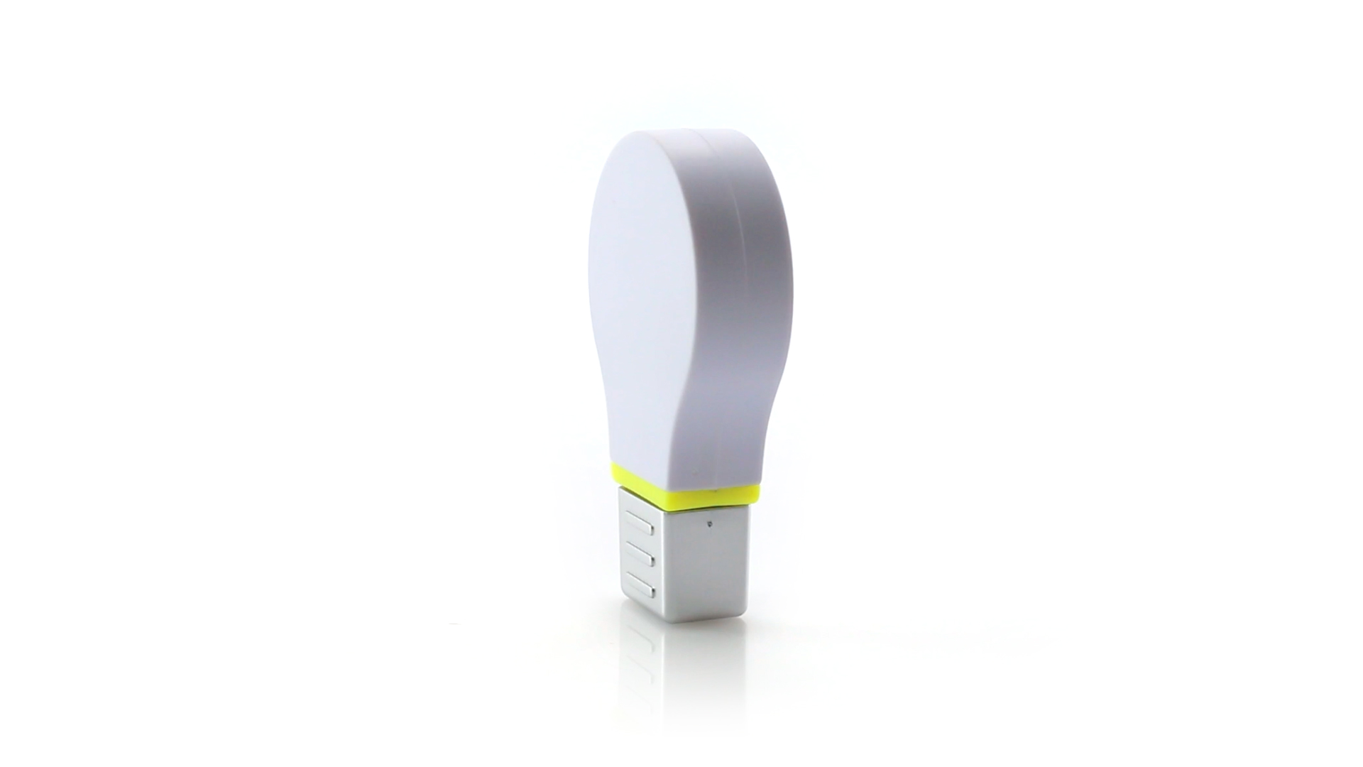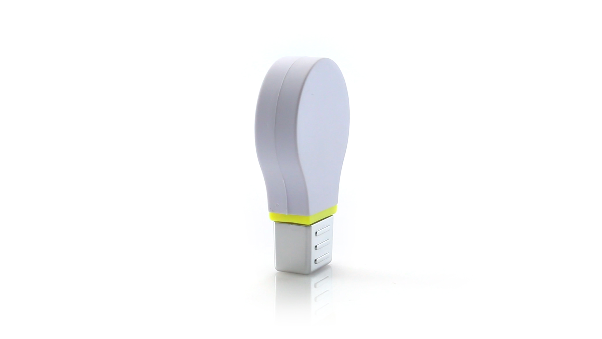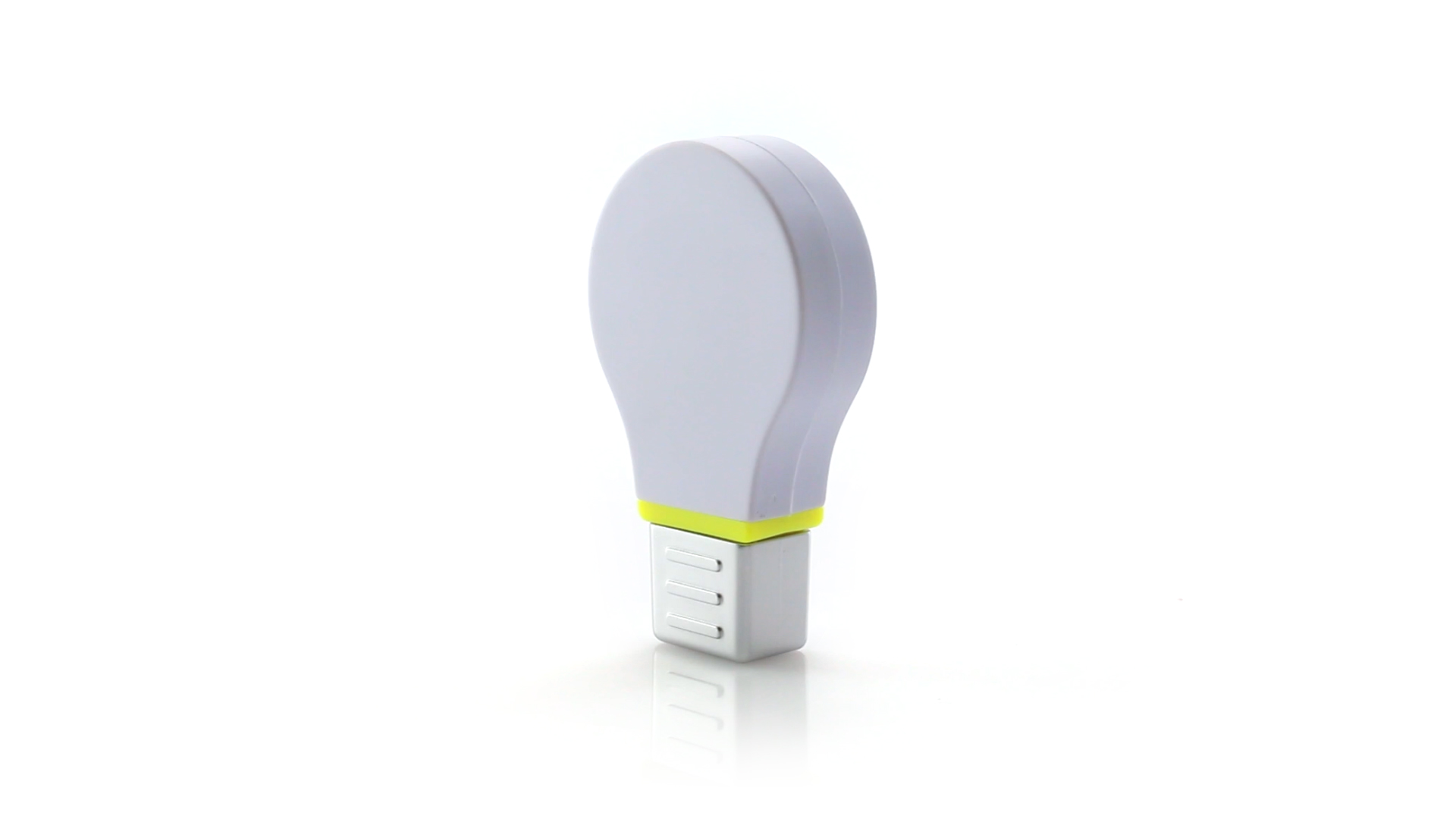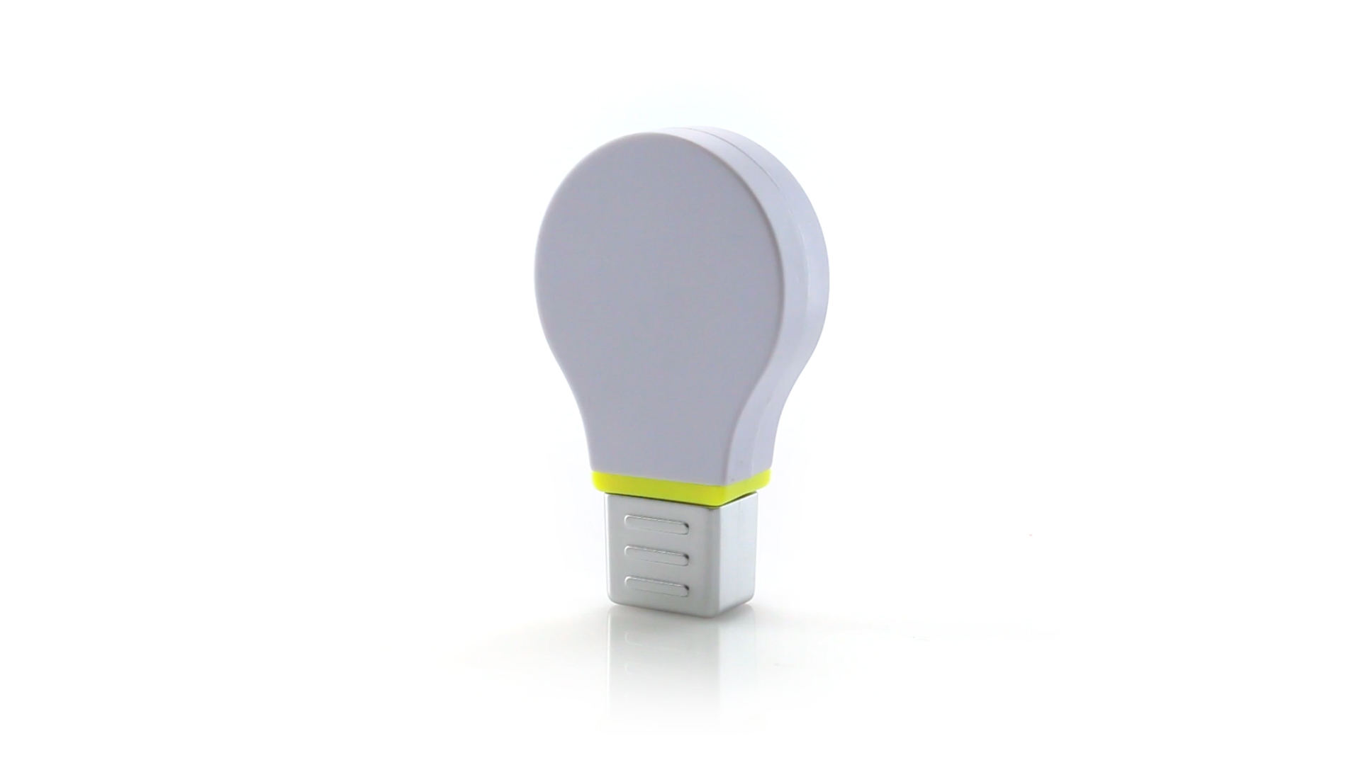 Textmarker mit originellem Glühbirnen-Design und Schaft in glänzendem Weiss - speziell entwickelt für den Digital- und Tampondruck.