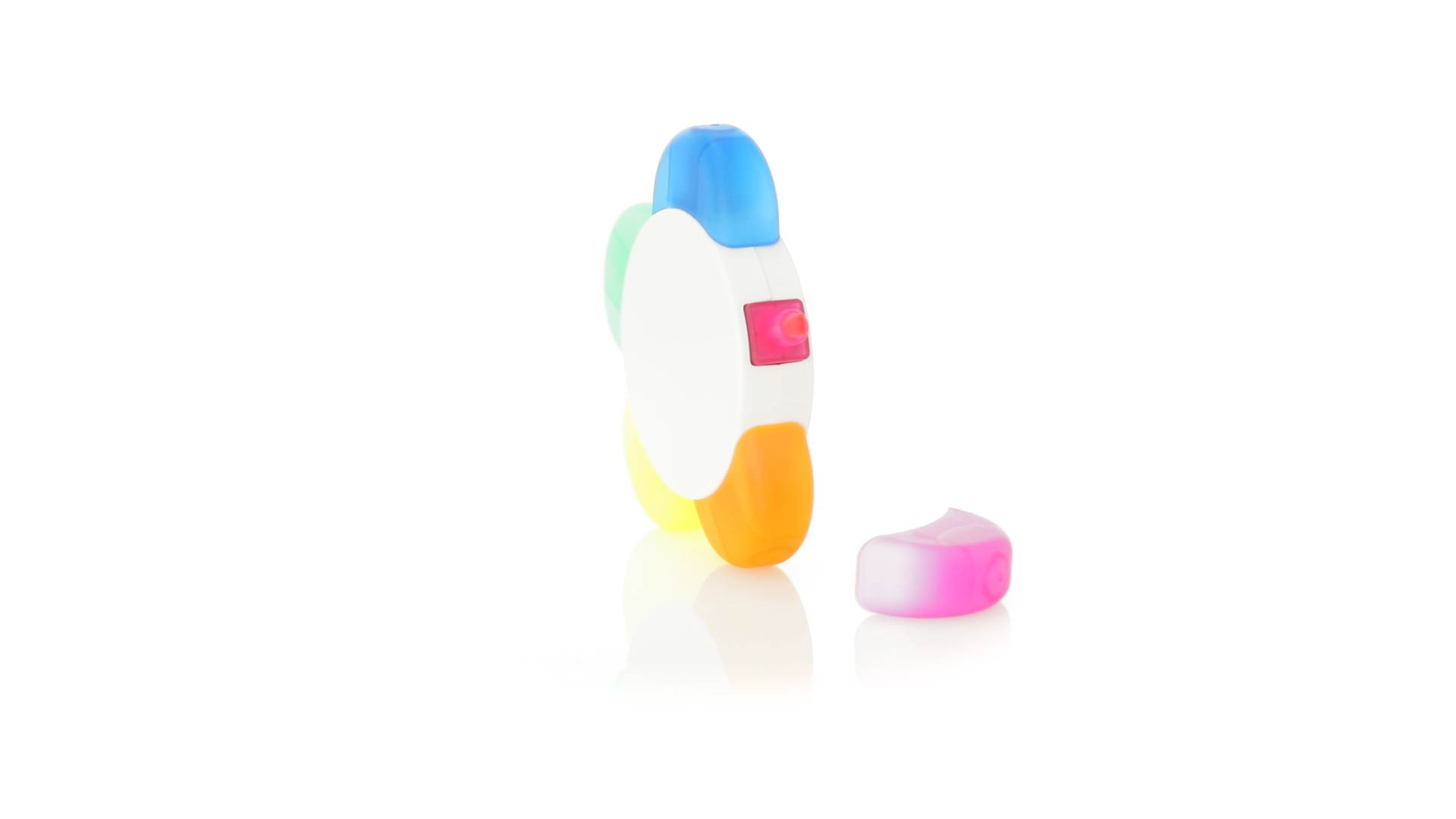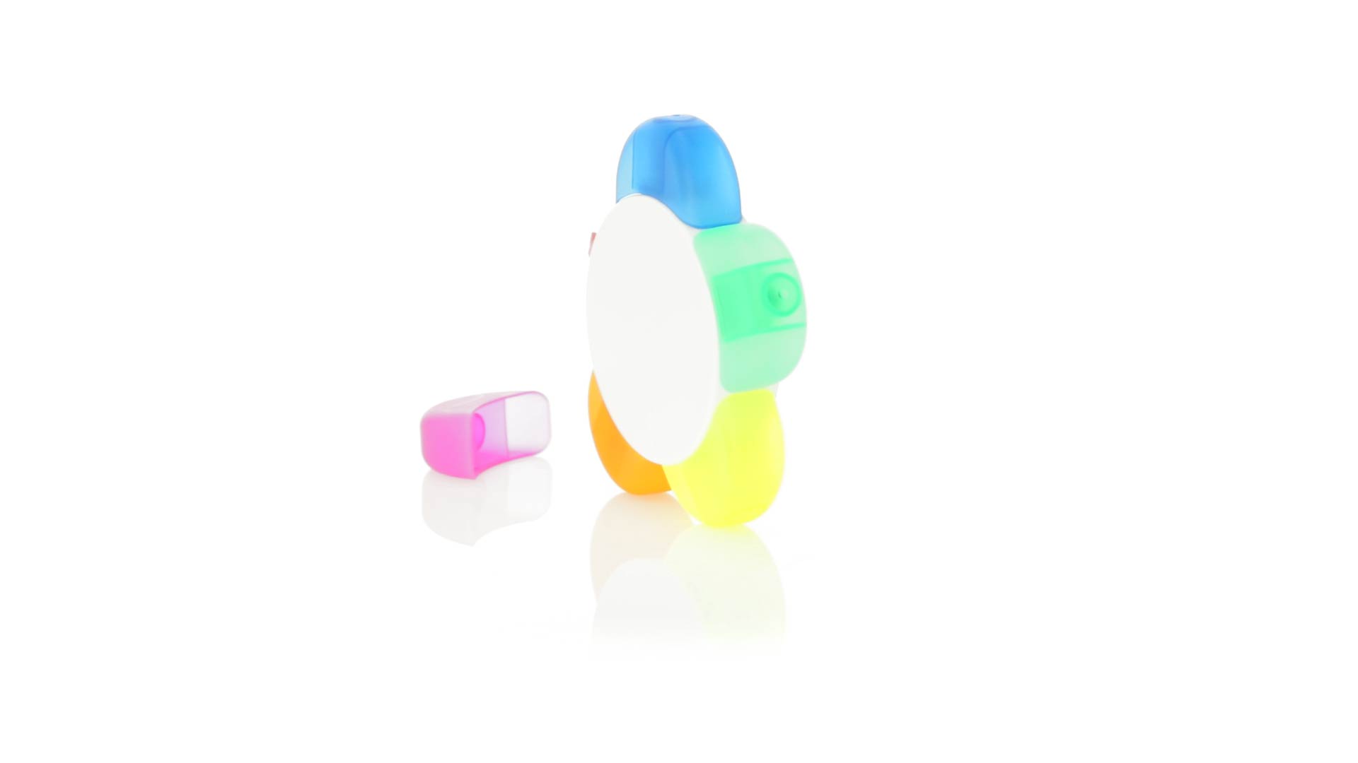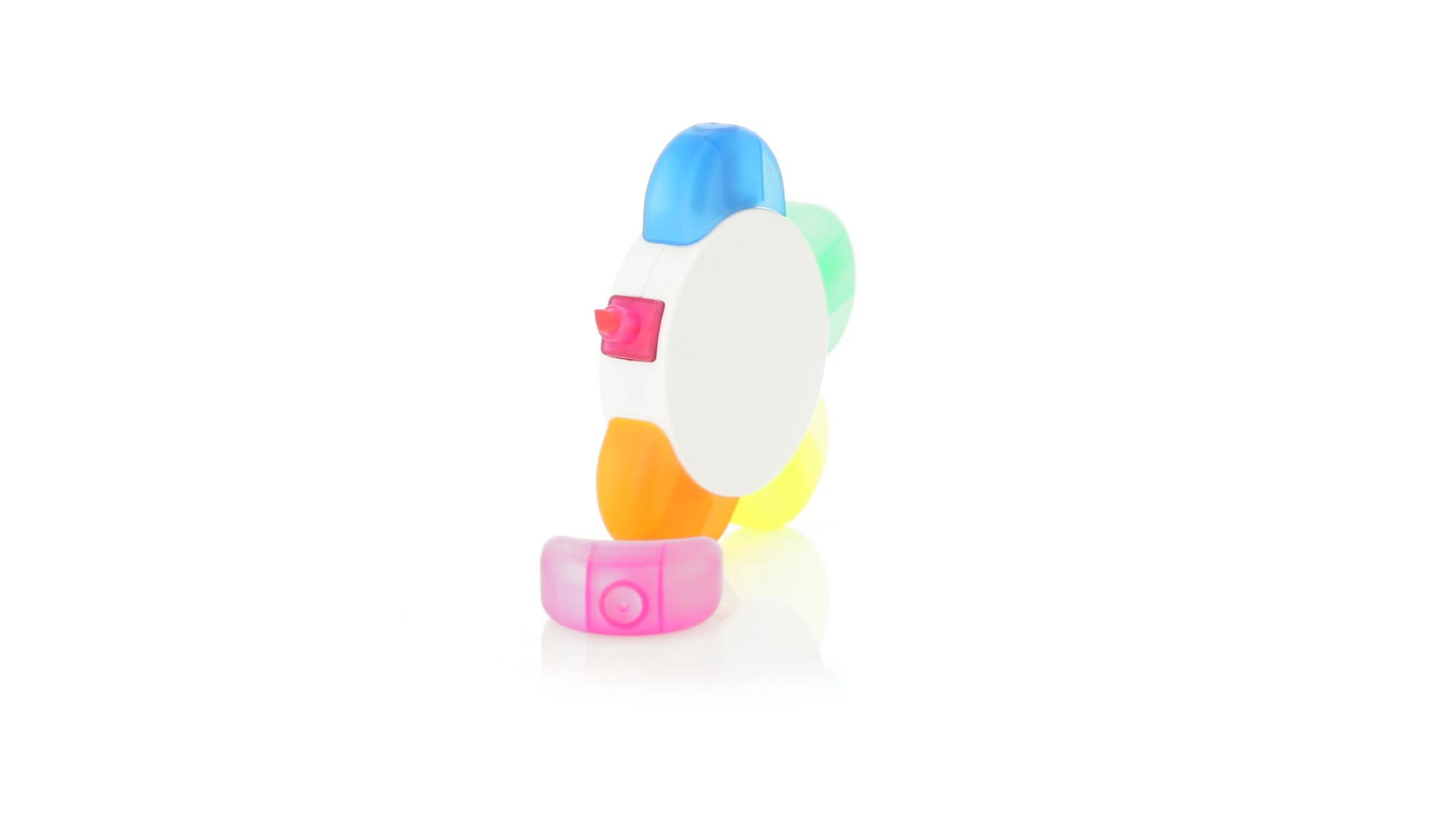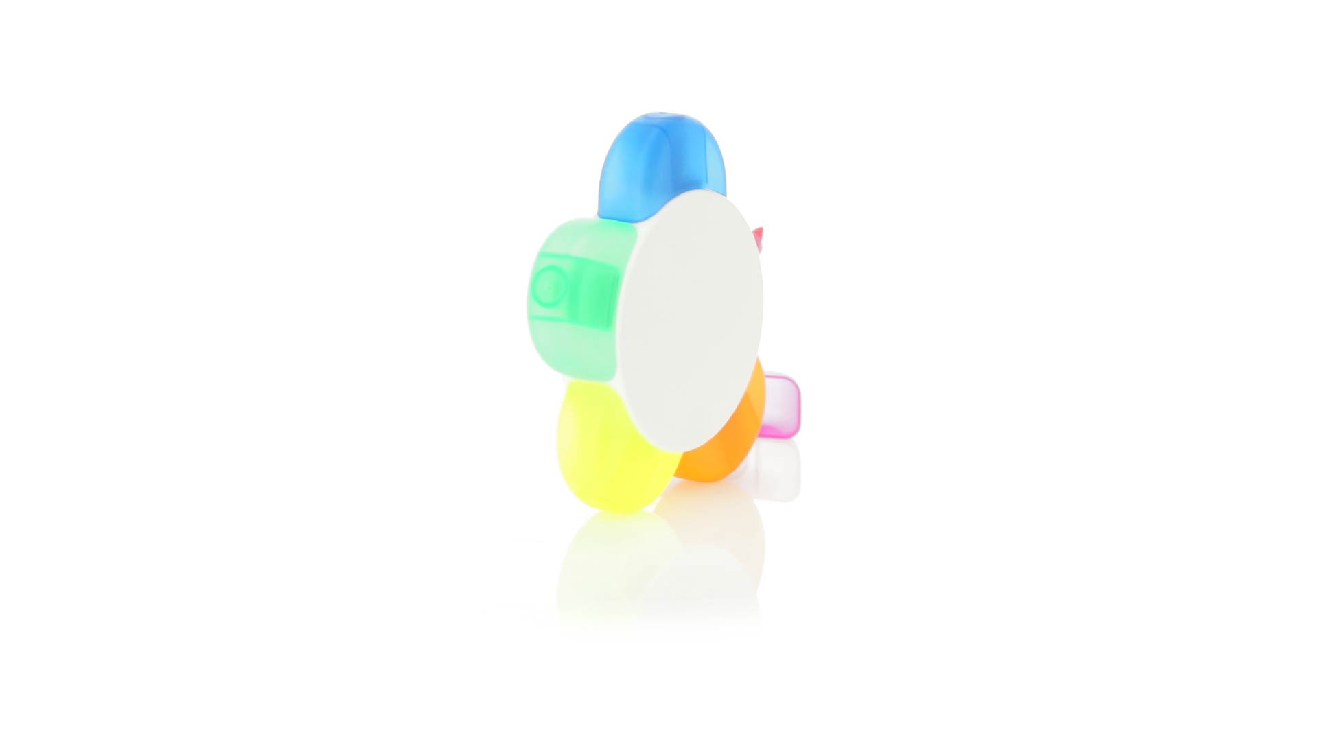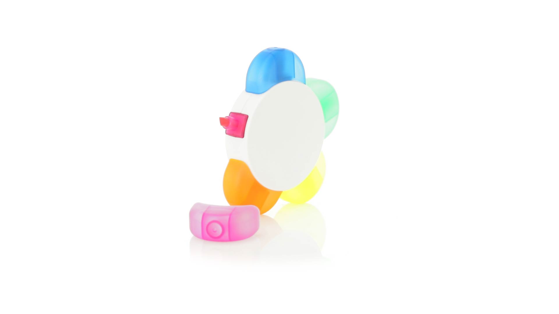 Satz von Markern im auffälligen Blumendesign. Mit grosser Druckfläche und Markern in den Farben Orange, Blau, Grün, Gelb und Pink.