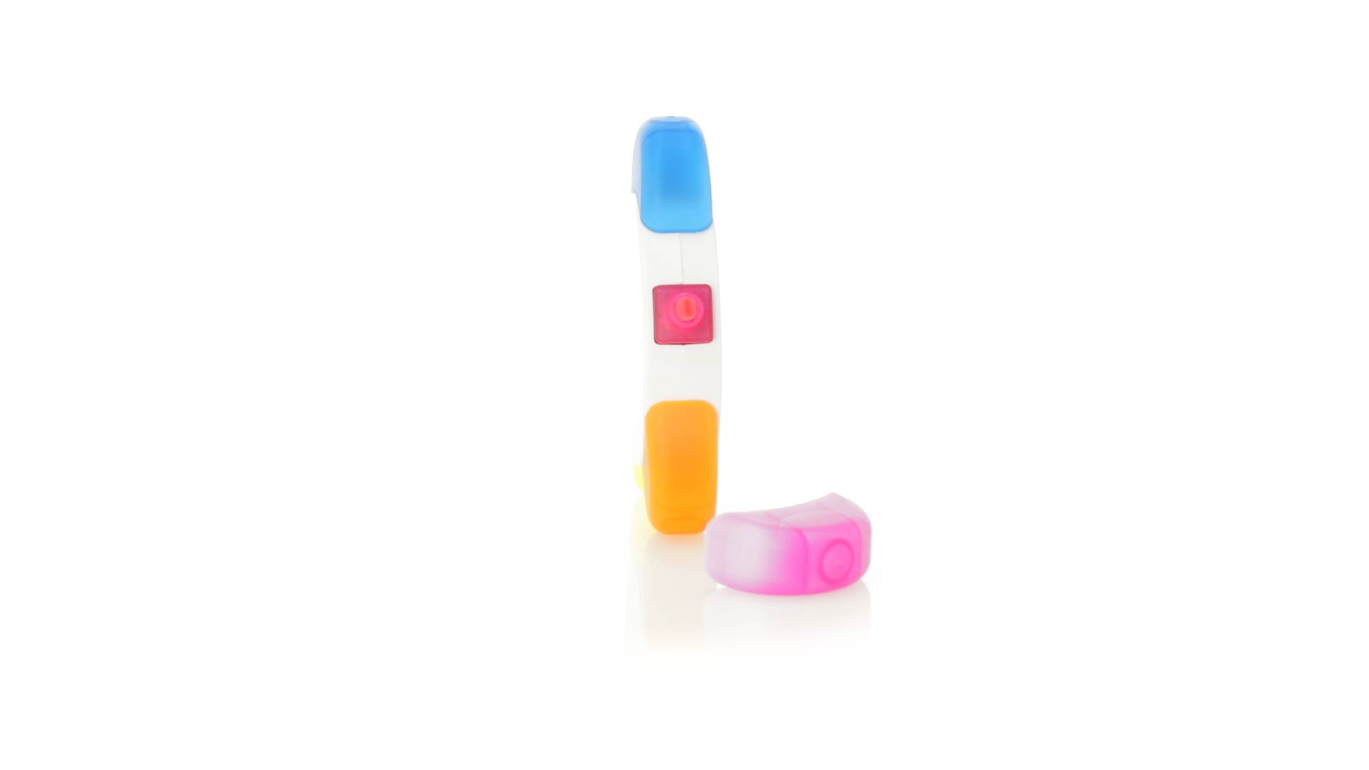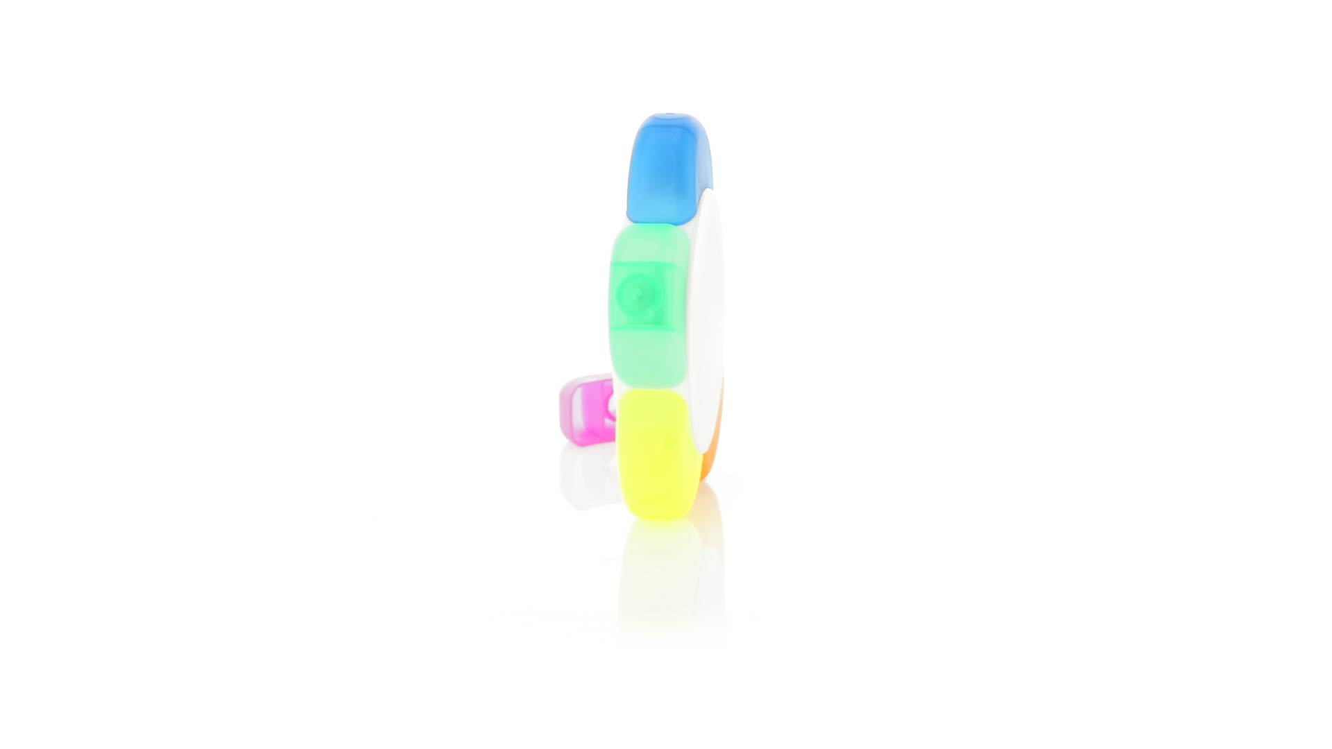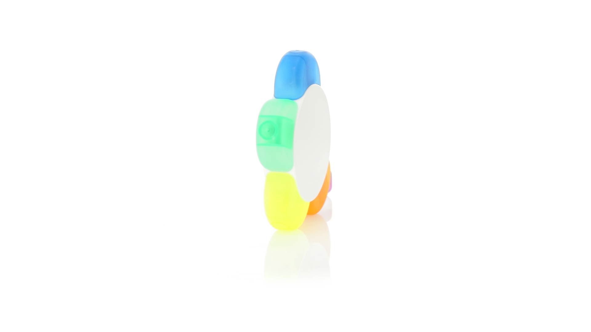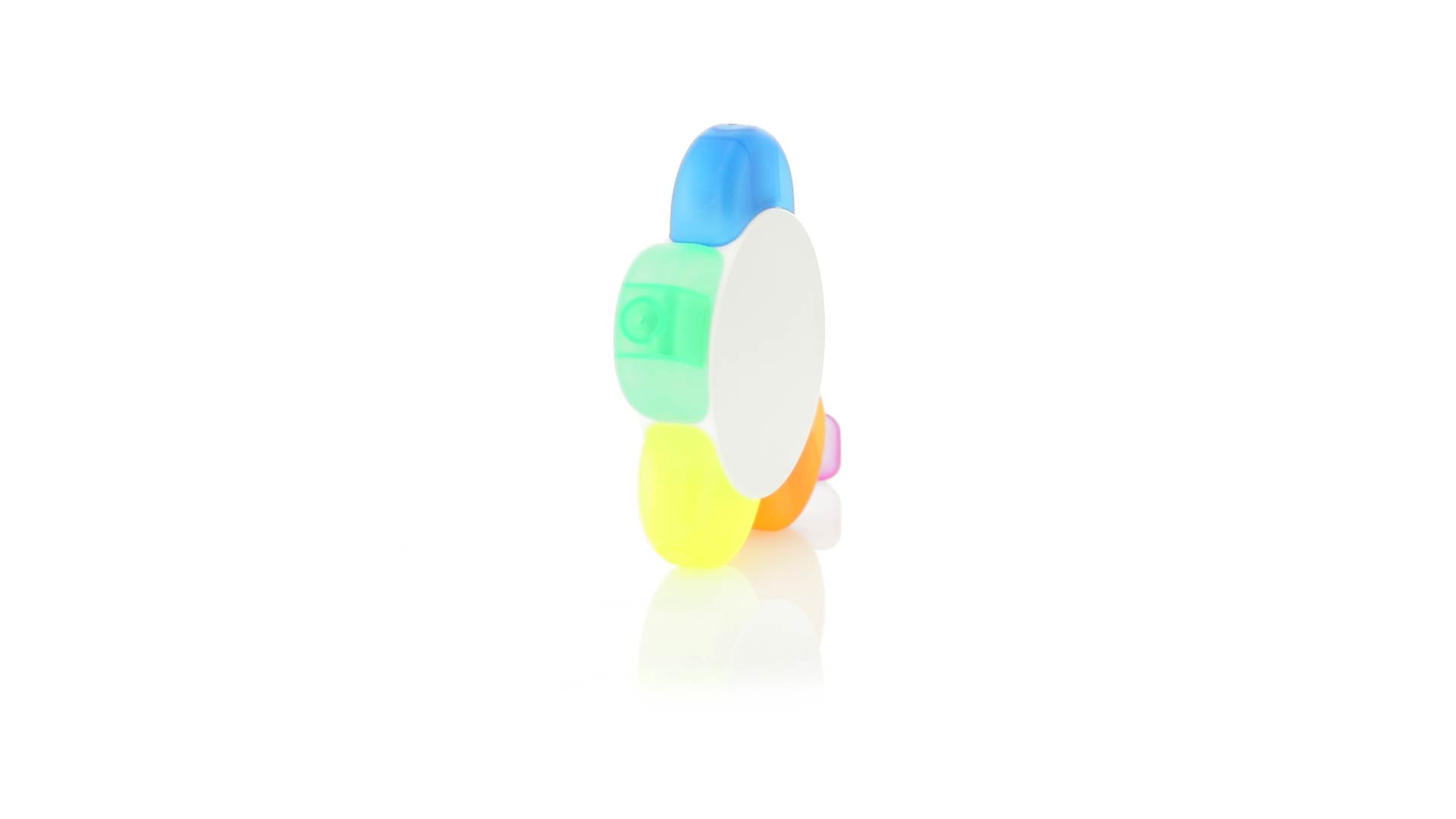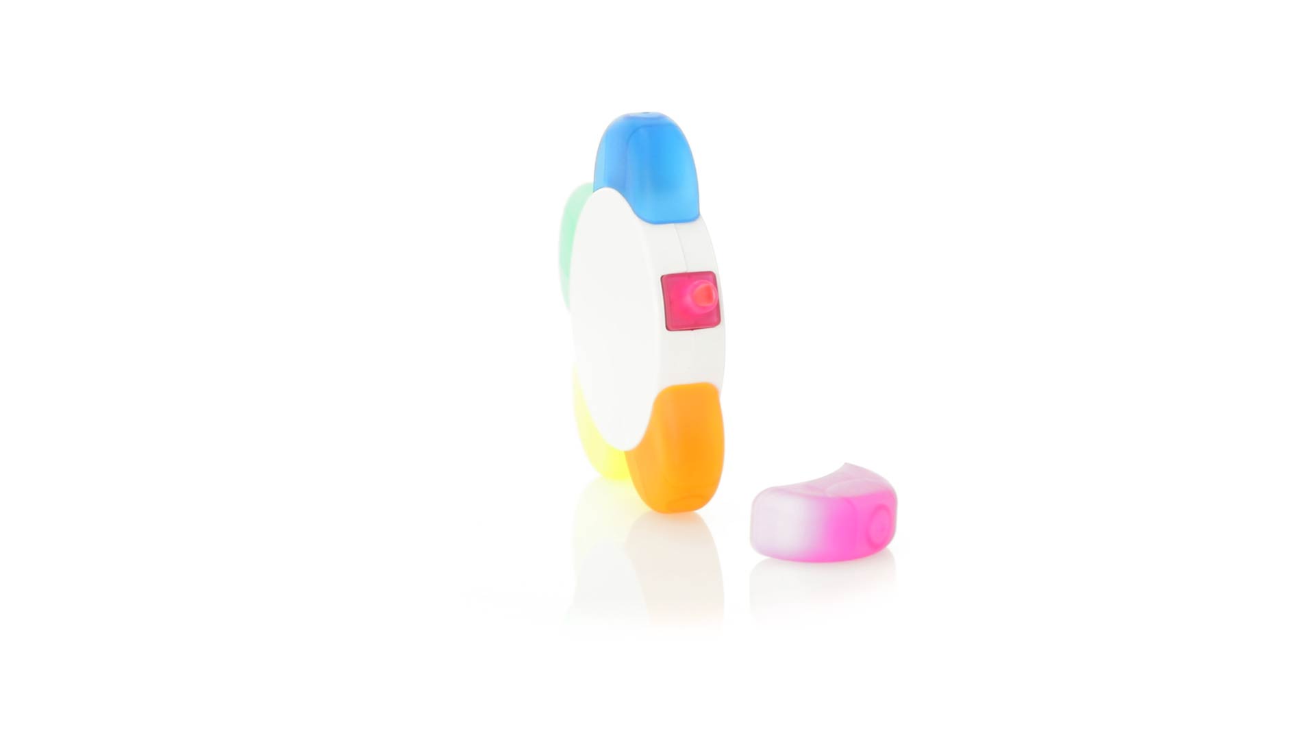 Satz von Markern im auffälligen Blumendesign. Mit grosser Druckfläche und Markern in den Farben Orange, Blau, Grün, Gelb und Pink.