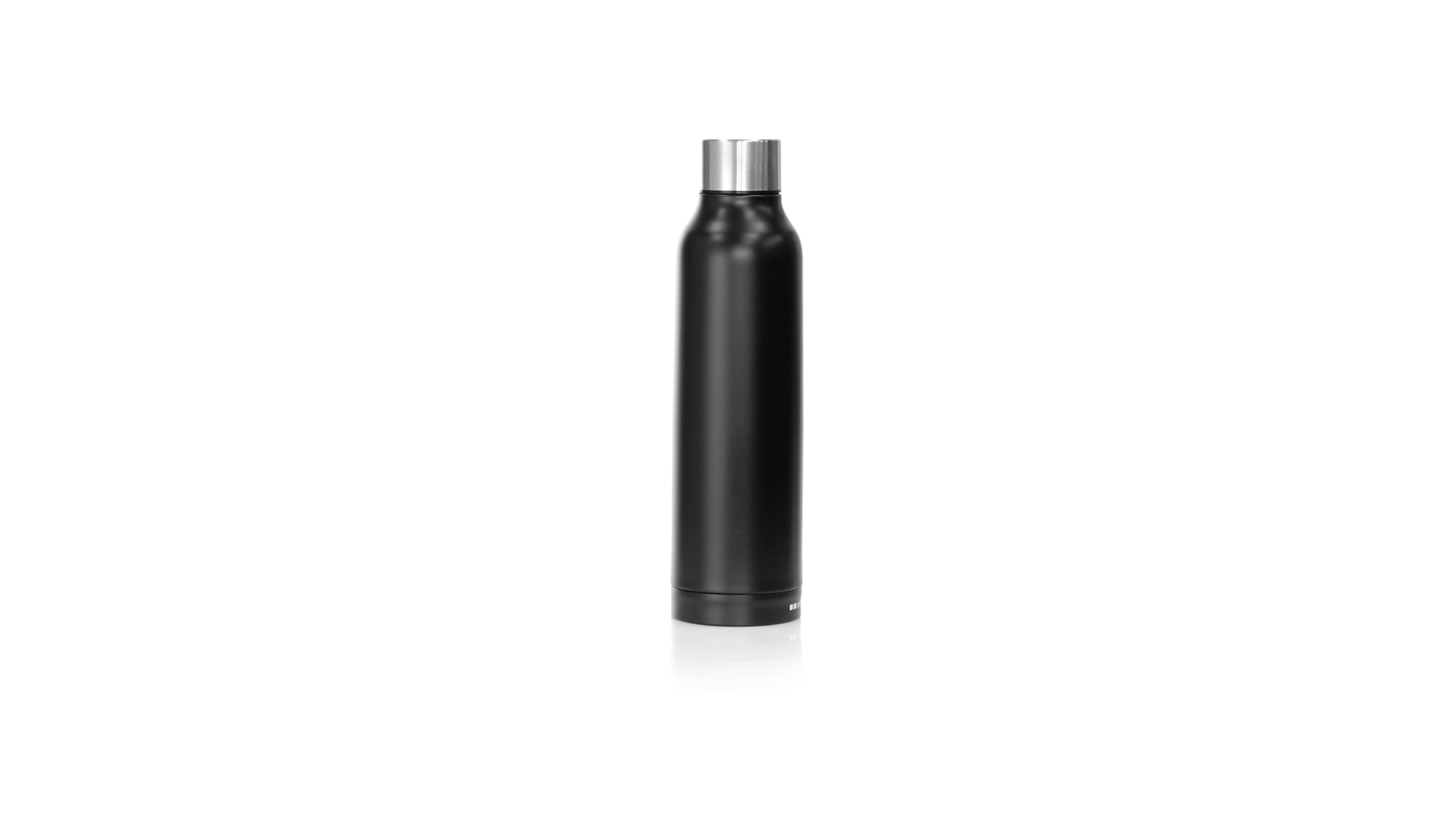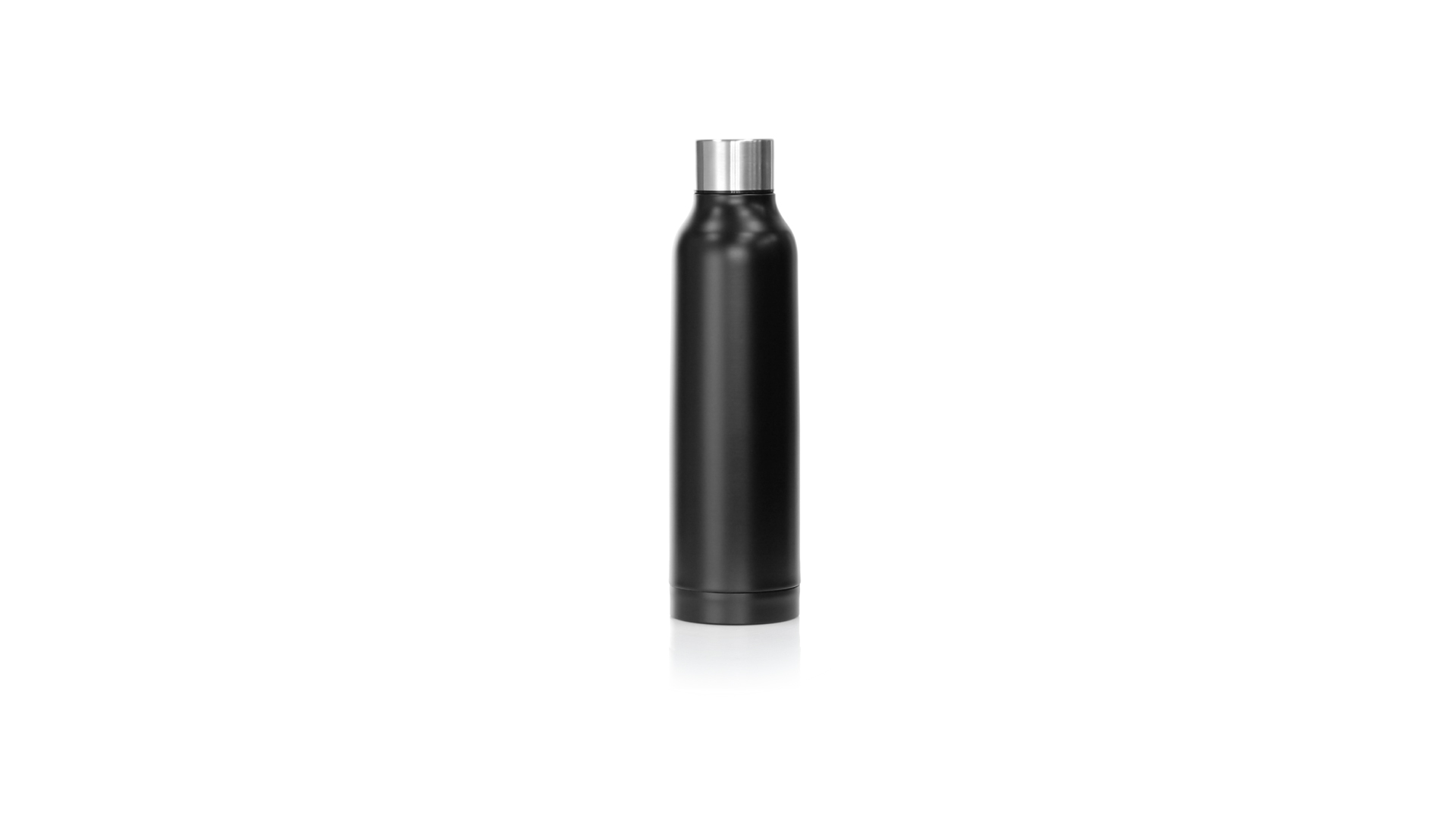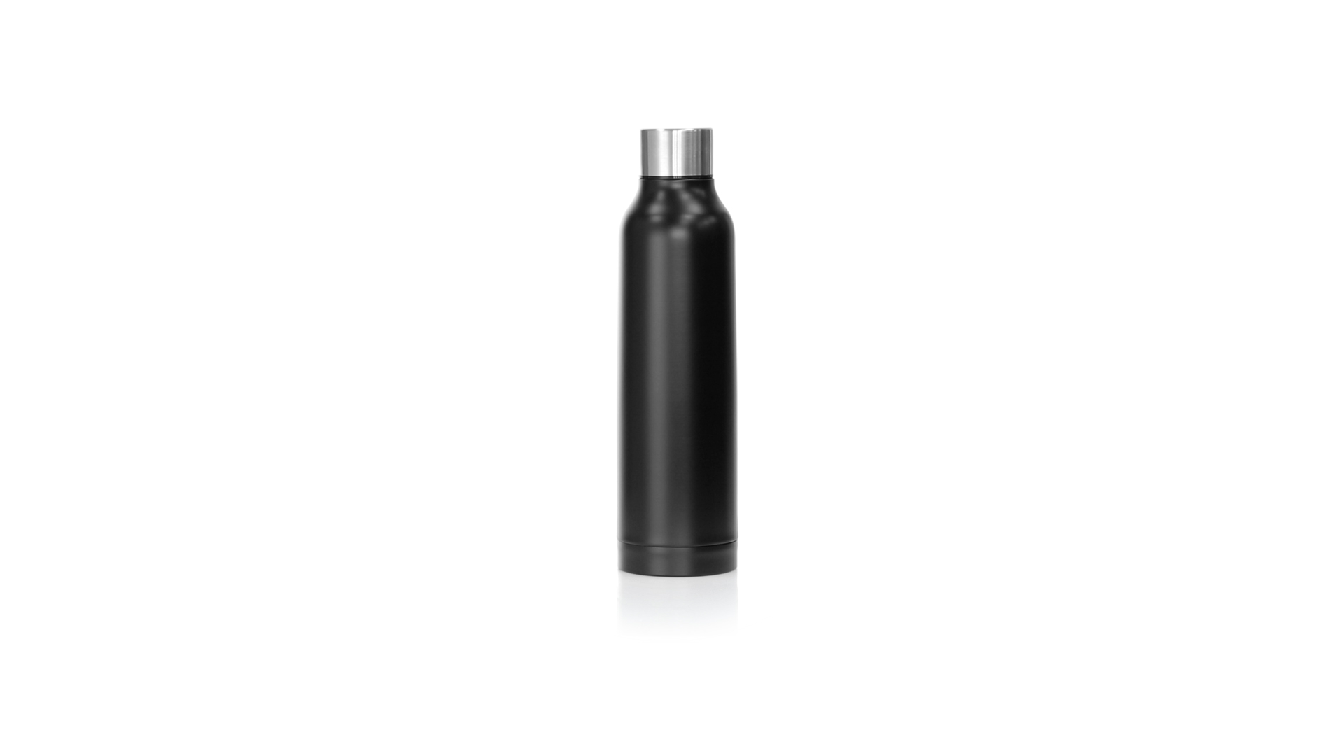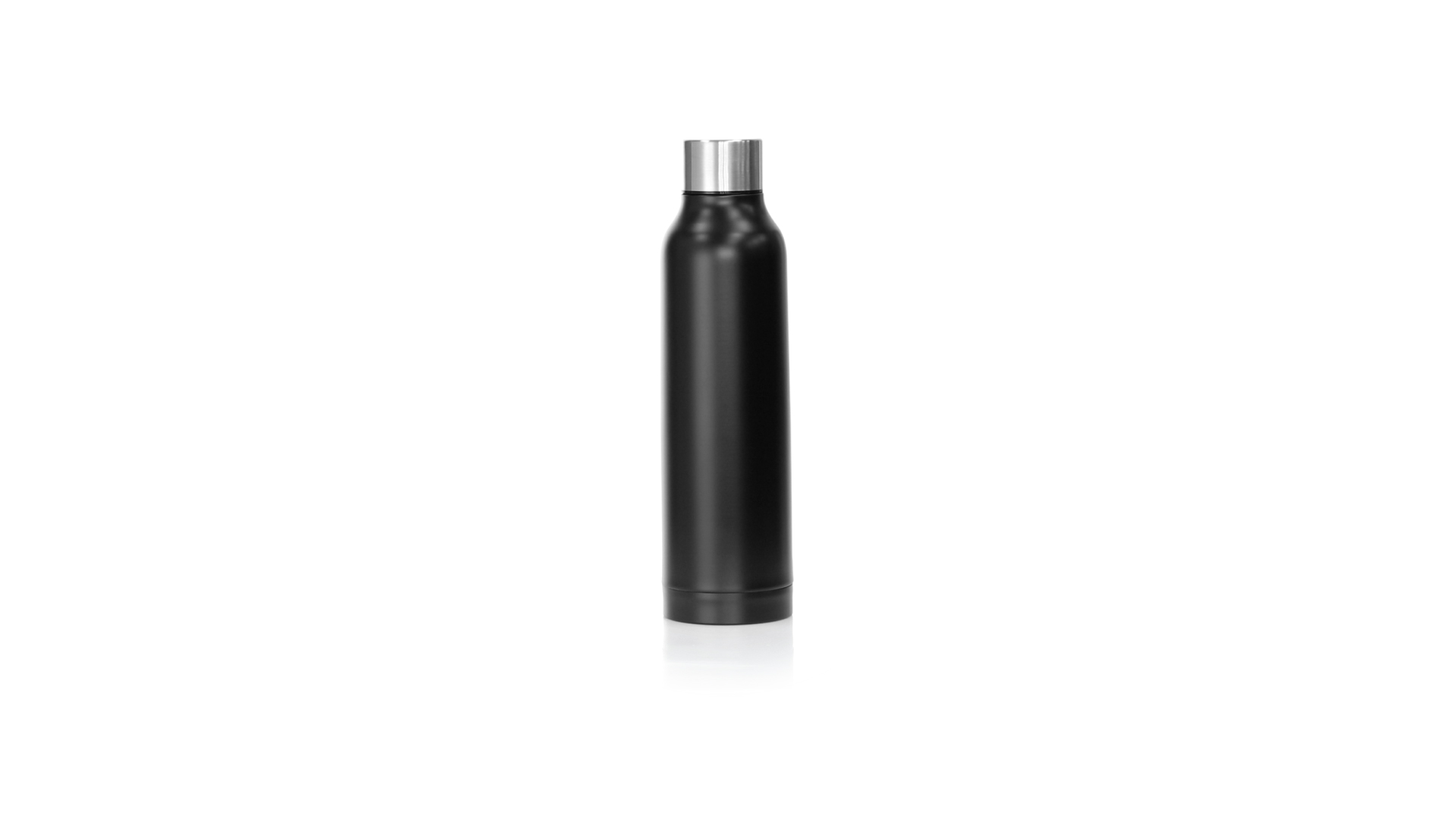 Thermoflasche aus Edelstahl von Antonio Miró. Mit einem Fassungsvermögen von 500 ml und doppelter Wand für eine bessere und dauerhafte Temperaturerhaltung. Mit schlichtem satinschwarzem Finish, Markenlogo am Boden und verchromtem Schraubdeckel. Präsentiert in einer attraktiven Designbox mit Markenlogo.