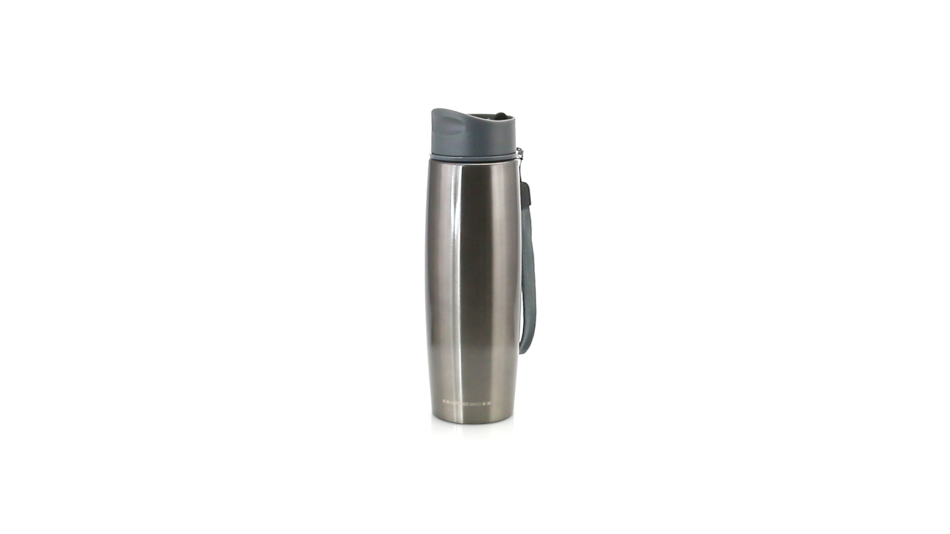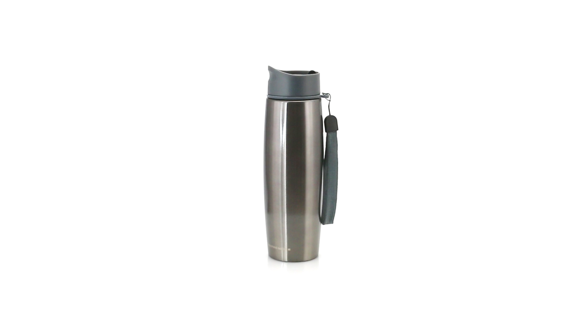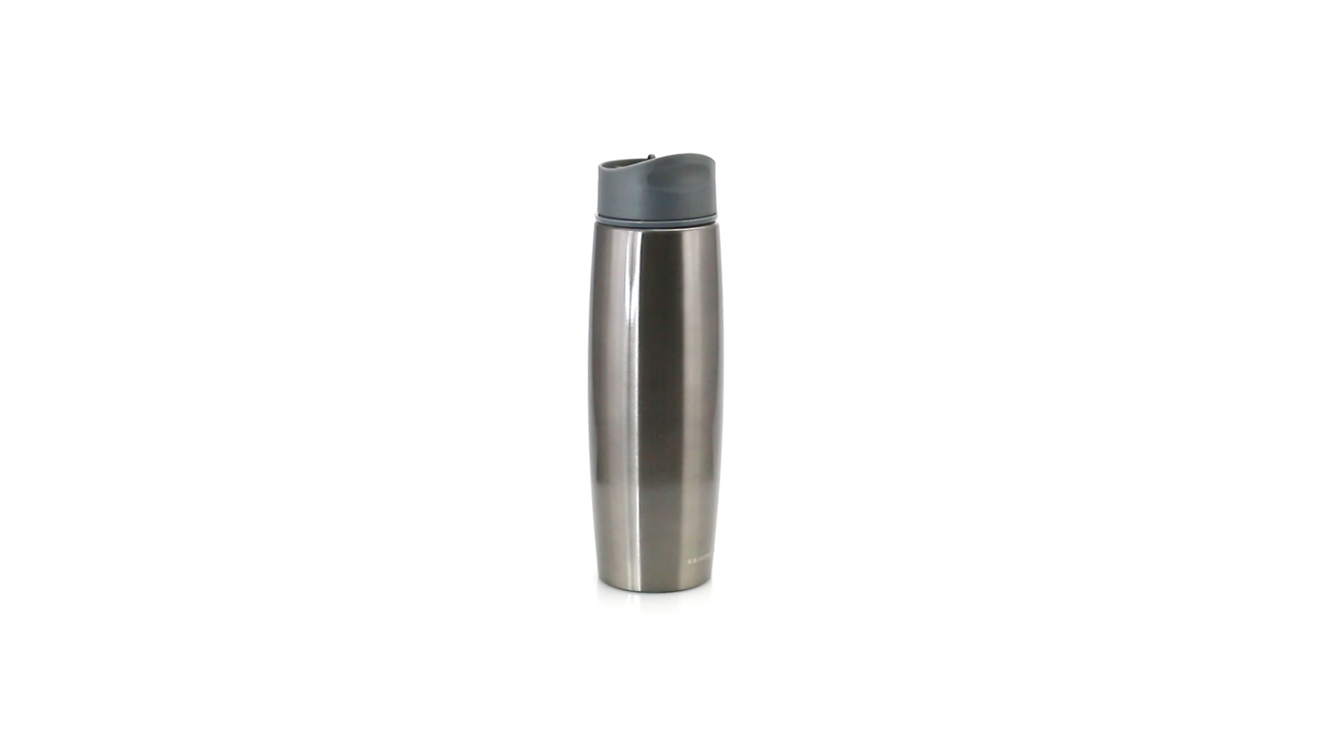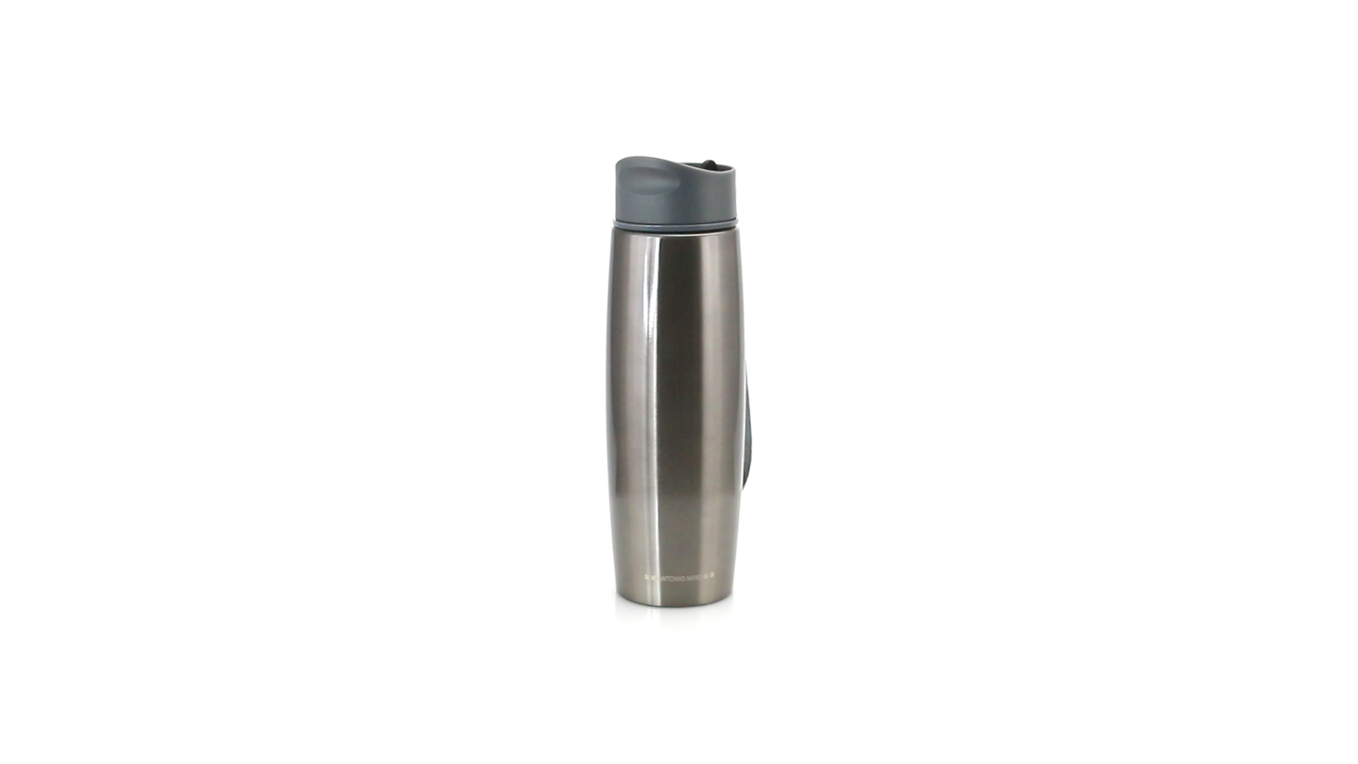Thermosflasche Antonio Miró. Aus rostfreiem Stahl, 500 ml Fassungsvermögen, mit metallischem Körper in Kombination mit Zubehör in schlichten Farben. Mit Sicherheitsspender-Deckel und präsentiert in individueller Schachtel mit Markenlogo. Gebrauchsanweisung in Spanisch und Englisch erhältlich.