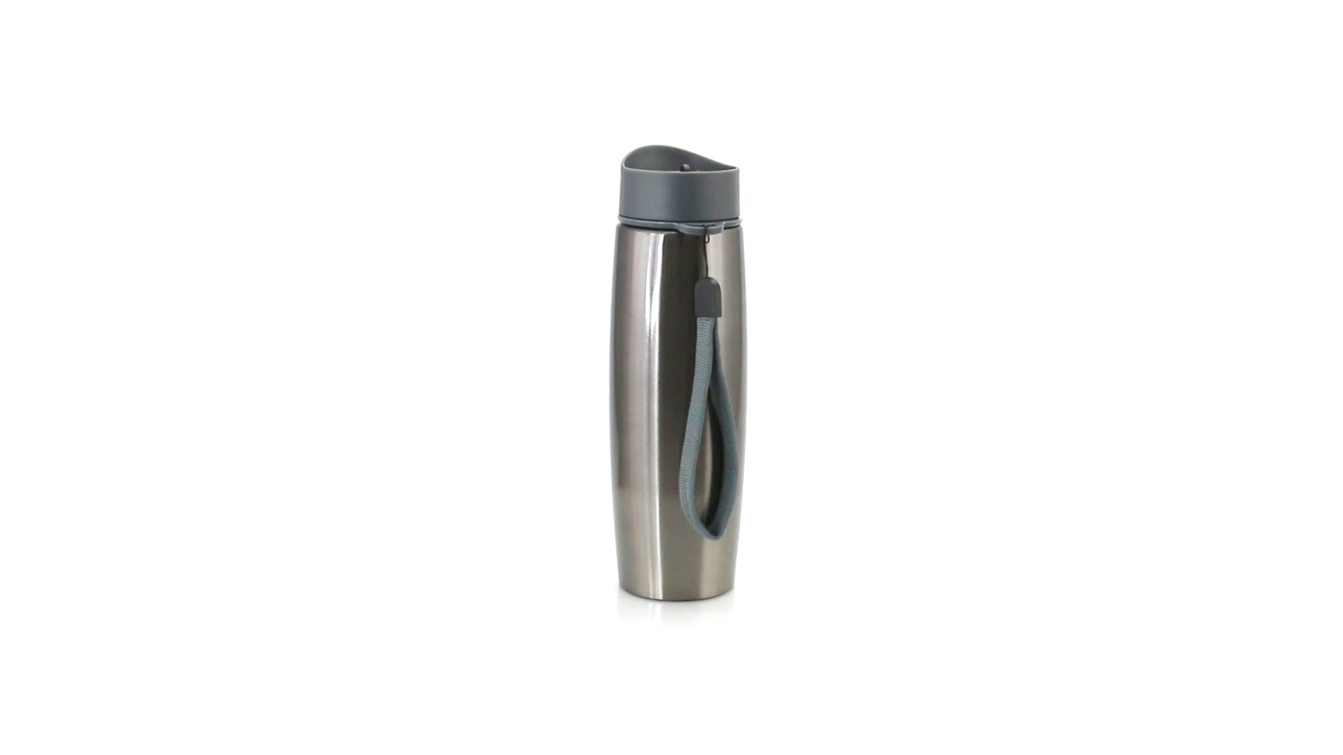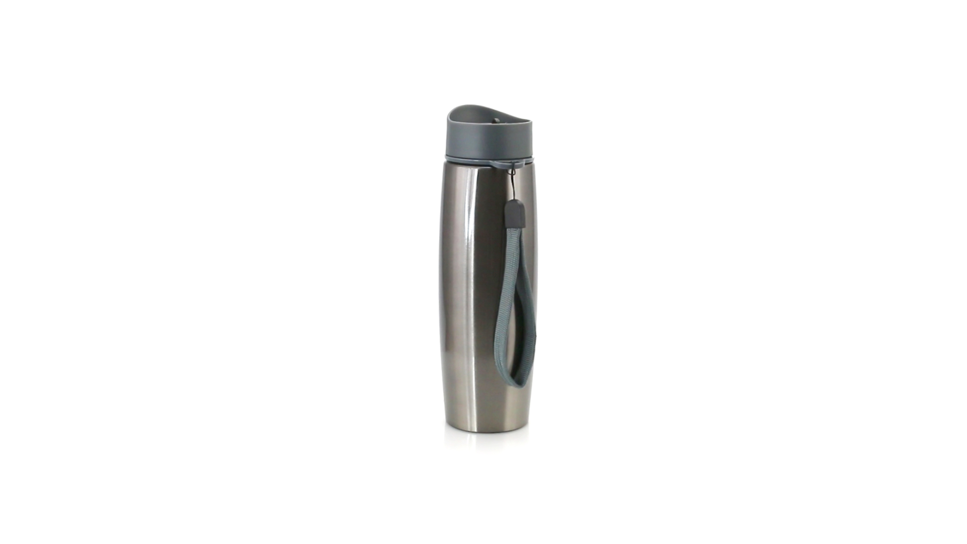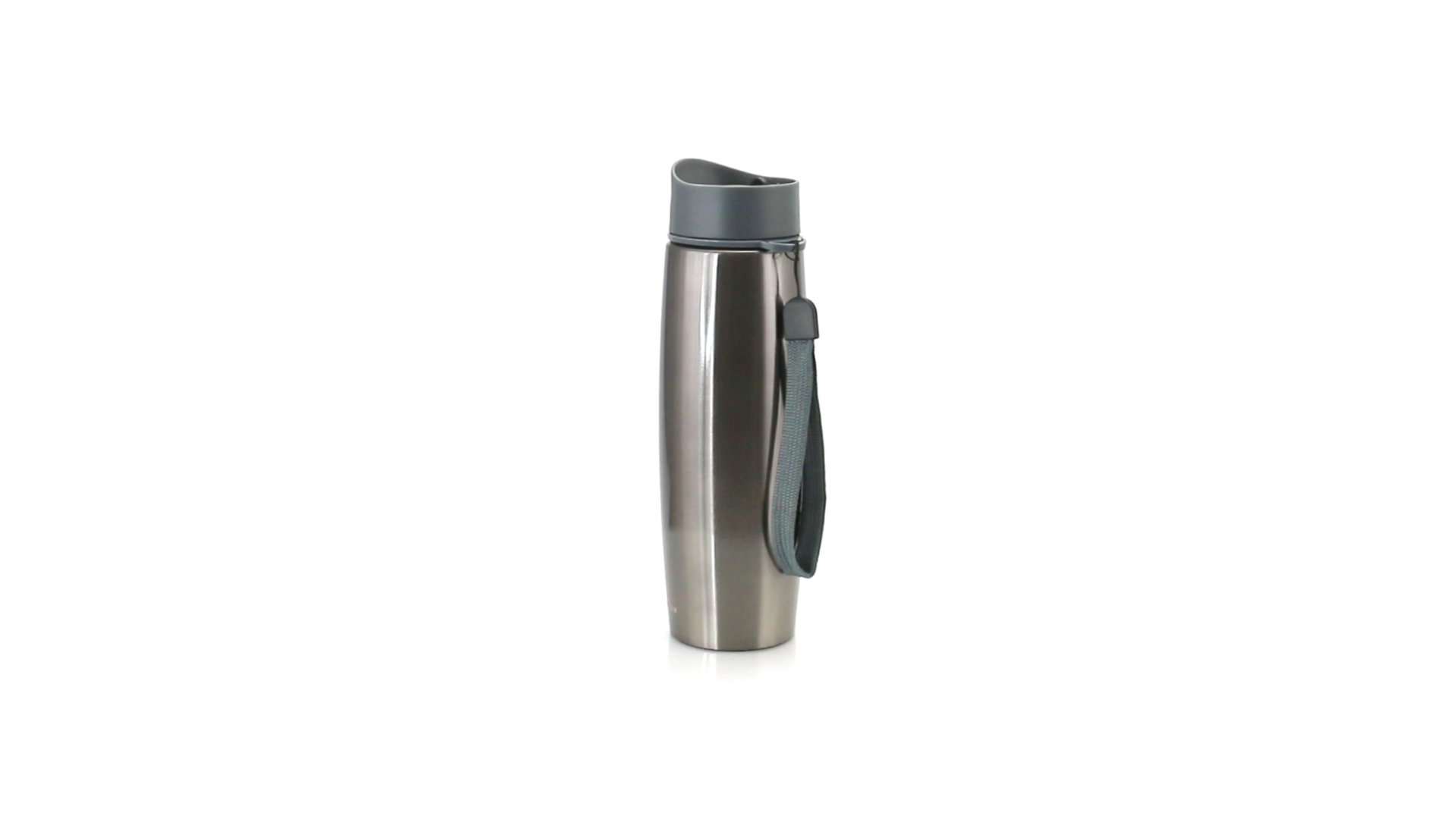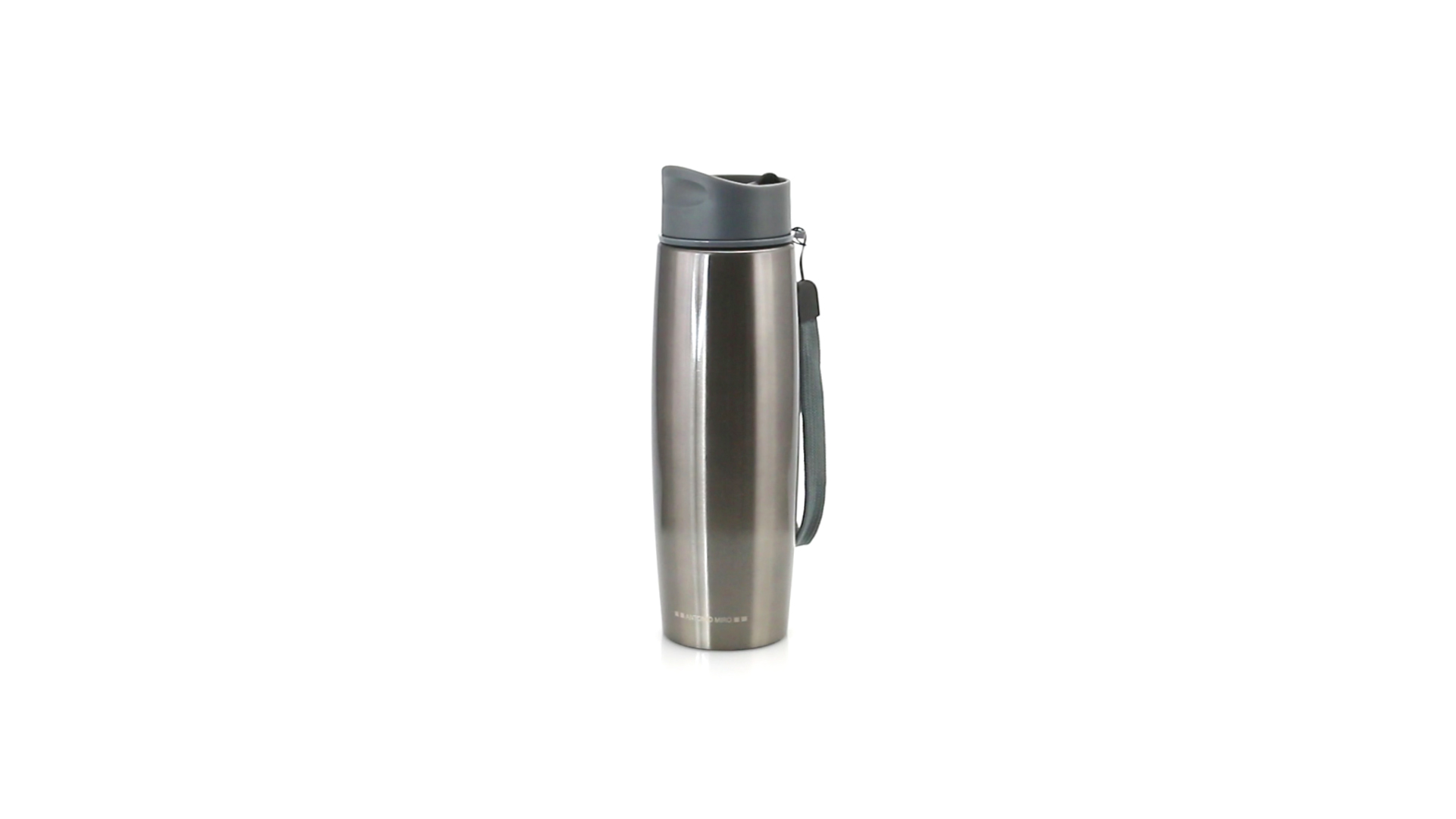 Thermosflasche Antonio Miró. Aus rostfreiem Stahl, 500 ml Fassungsvermögen, mit metallischem Körper in Kombination mit Zubehör in schlichten Farben. Mit Sicherheitsspender-Deckel und präsentiert in individueller Schachtel mit Markenlogo. Gebrauchsanweisung in Spanisch und Englisch erhältlich.