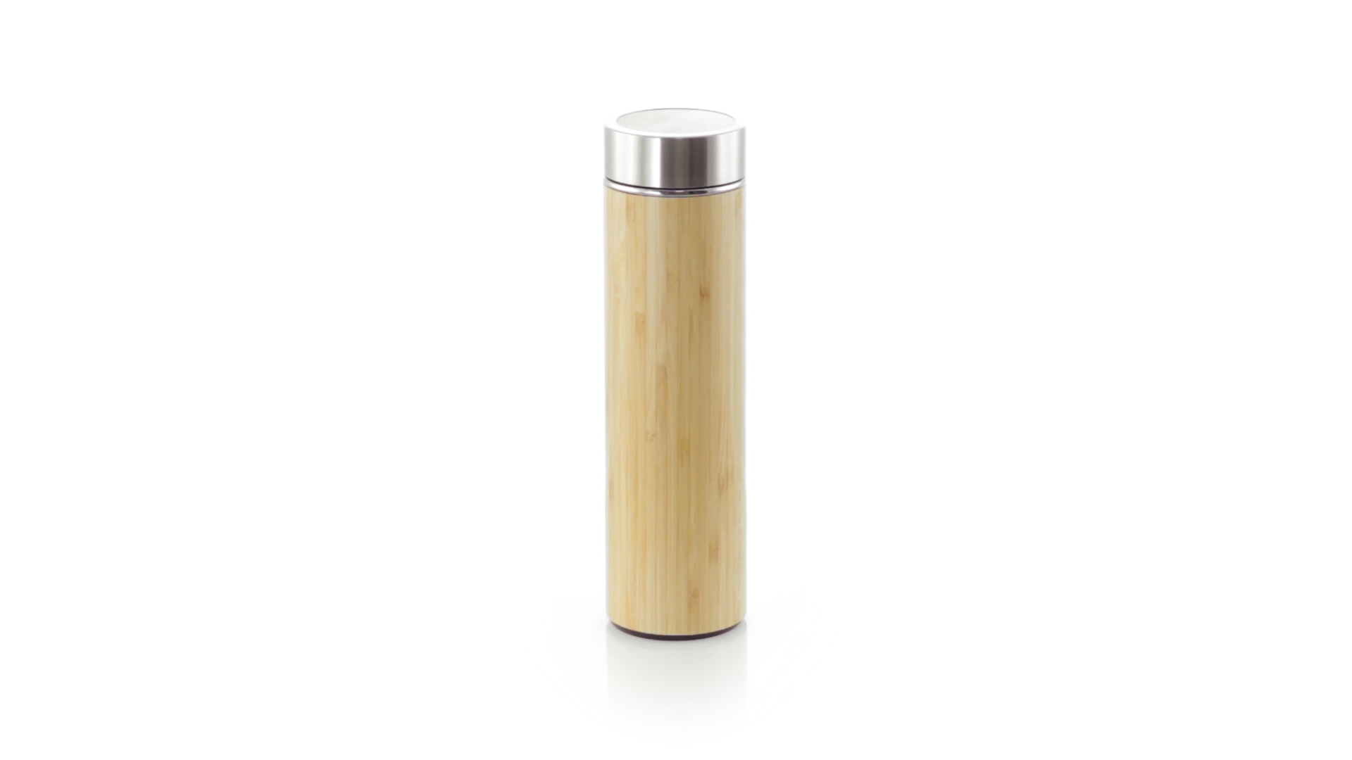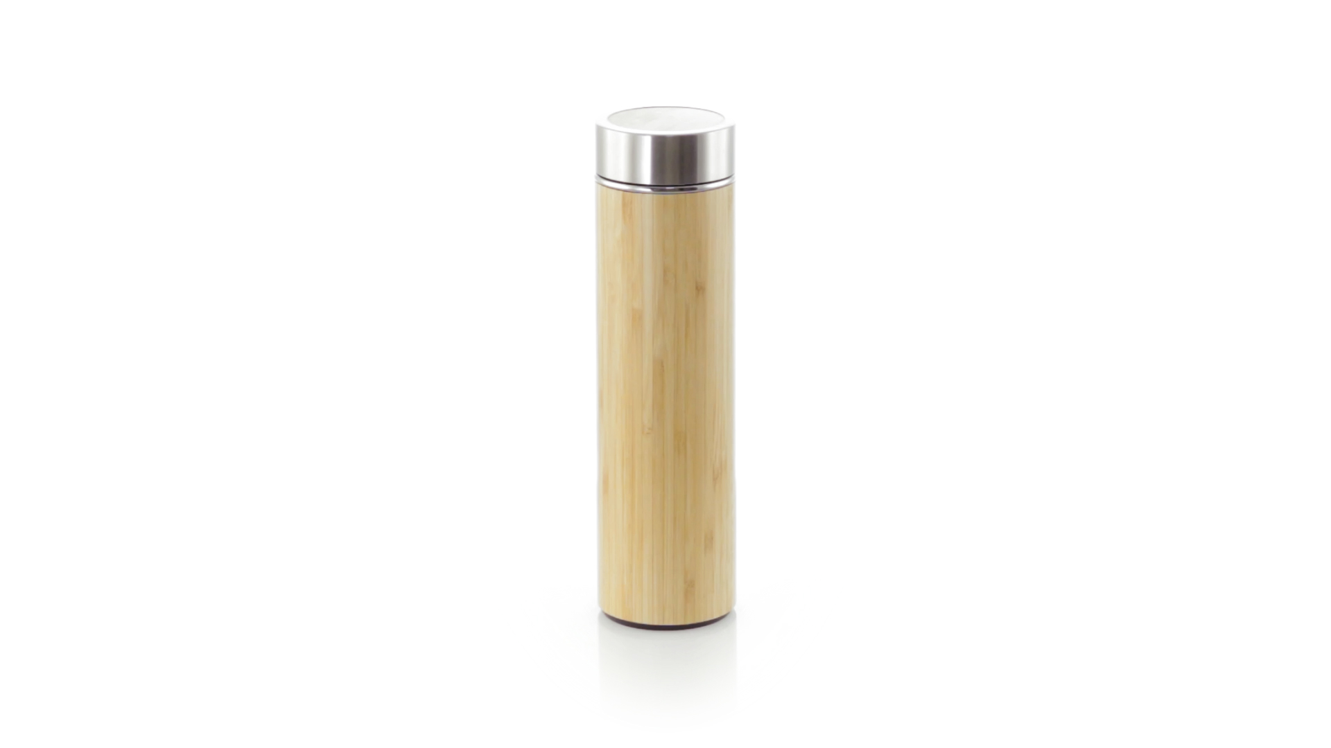 Thermosflasche Trinkflasche mit 500 ml Fassungsvermögen. Aussen aus Bambus und innen aus Edelstahl. Sicherheitsschraubverschluss aus Edelstahl mit Oberseite aus Bambus. Präsentiert in einer individuellen, attraktiven Designbox.
