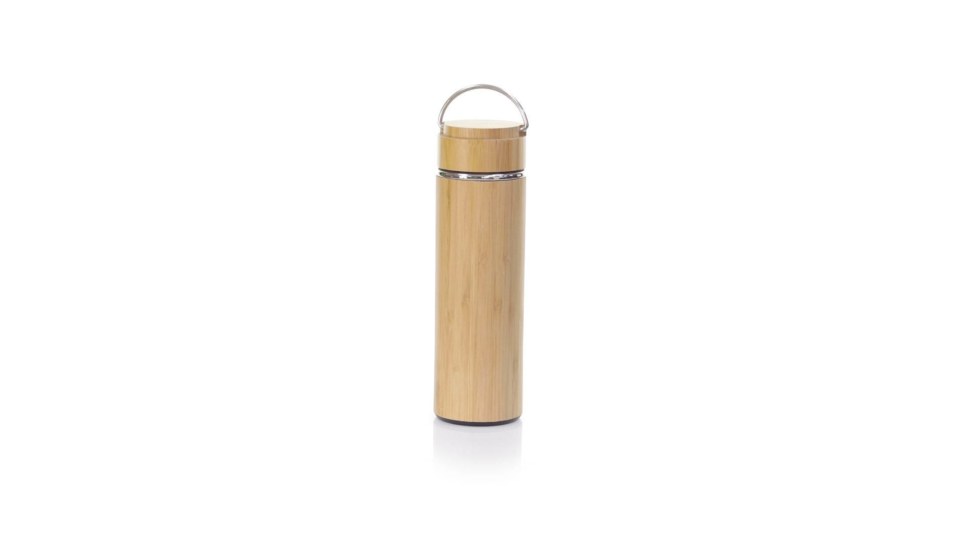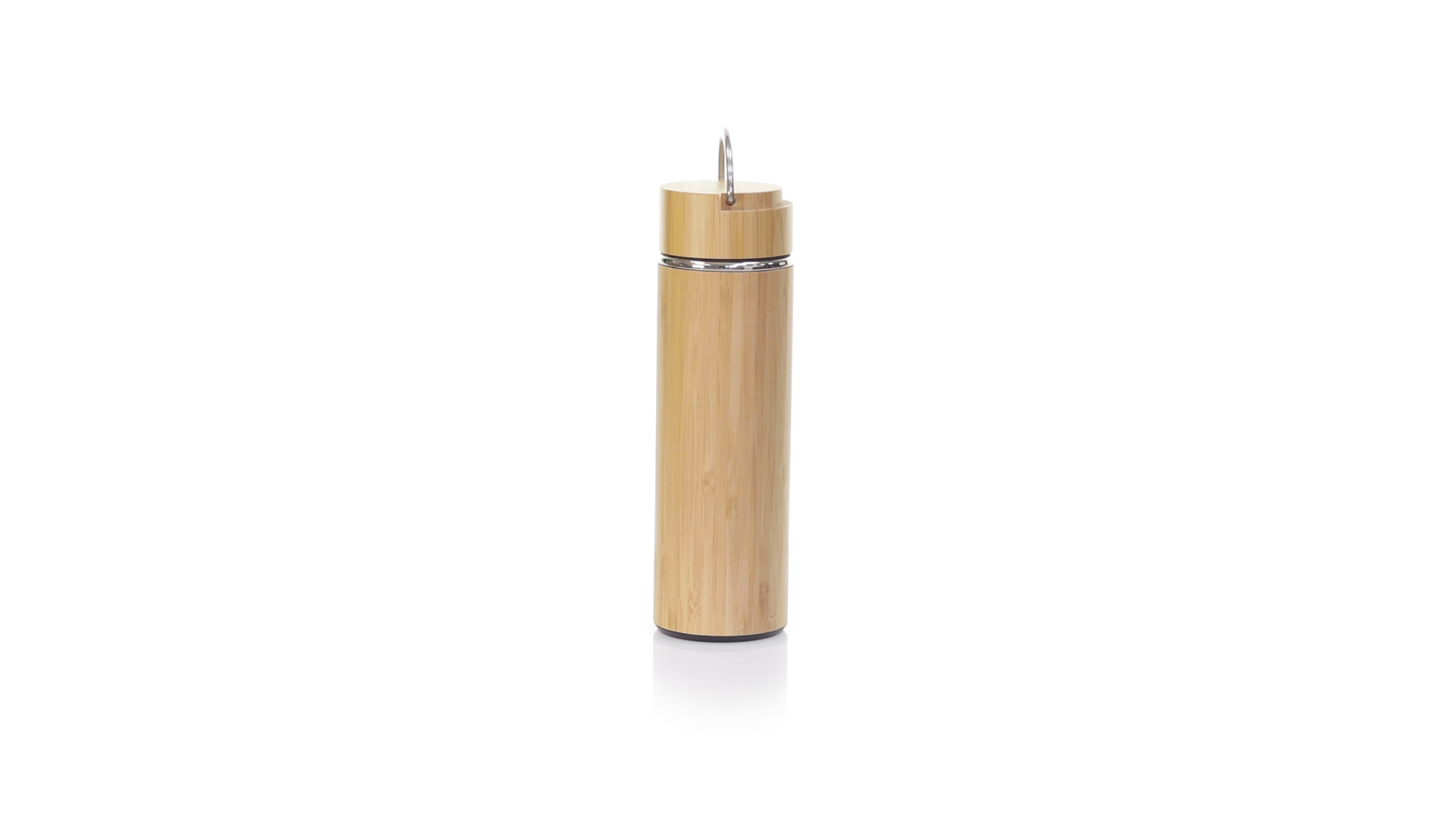 Hochwertige Thermoskanne mit Bambus-Finish, doppelagig. 400 ml Fassungsvermögen, mit BPA-freier Sicherheitskappe und integriertem Infuser. Präsentiert in einer attraktiven Öko-Designbox.